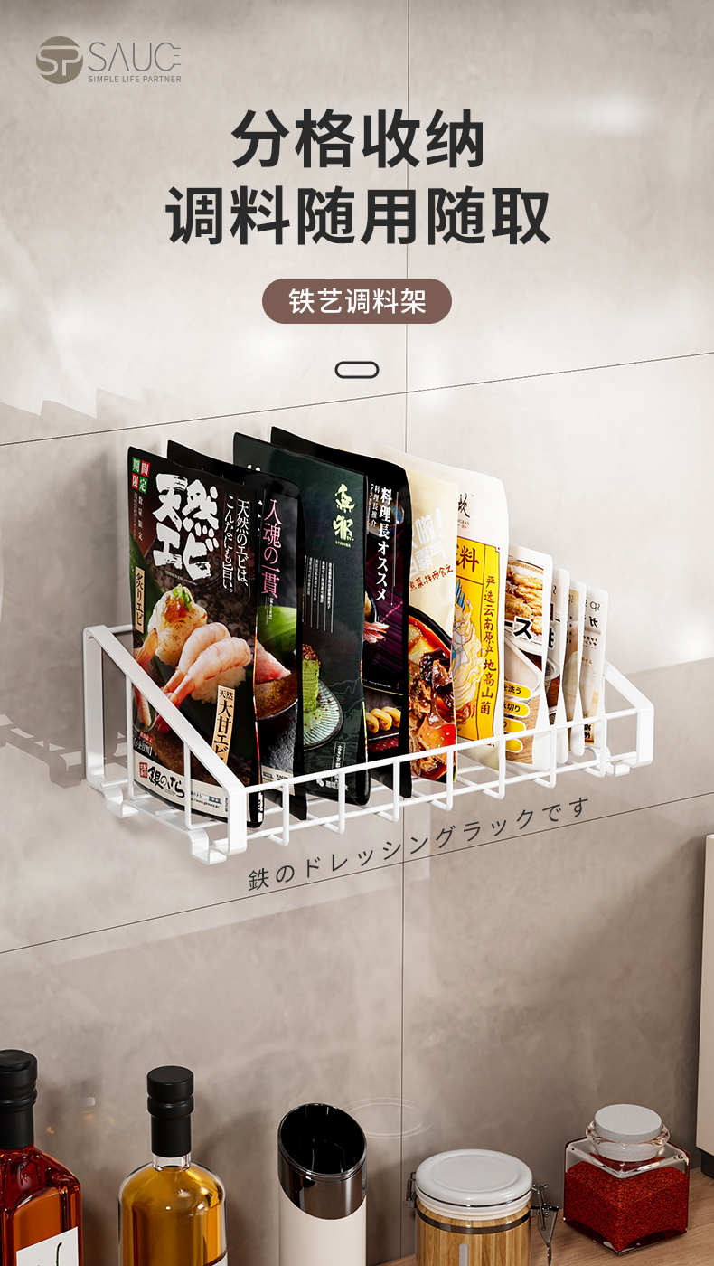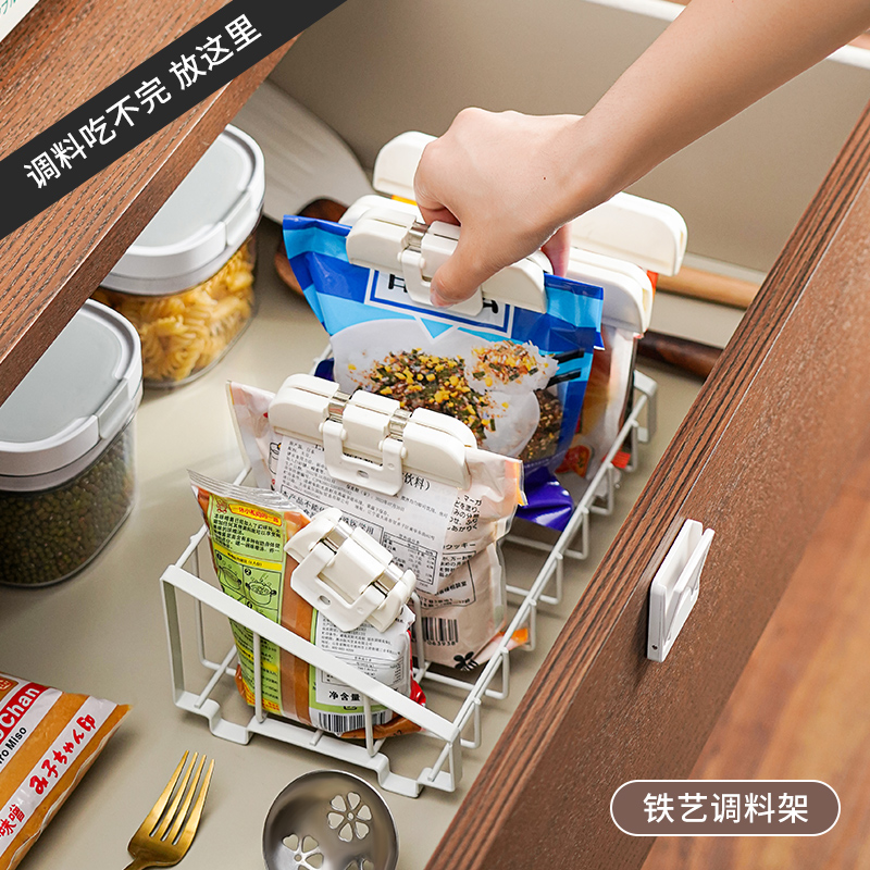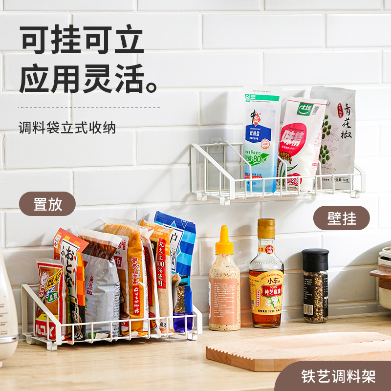 铁艺调料架 调料袋收纳盒置袋装佐料置物架盐鸡精收纳香料收纳篮
