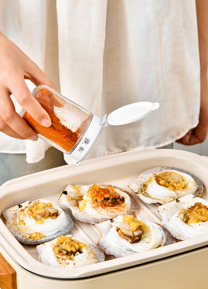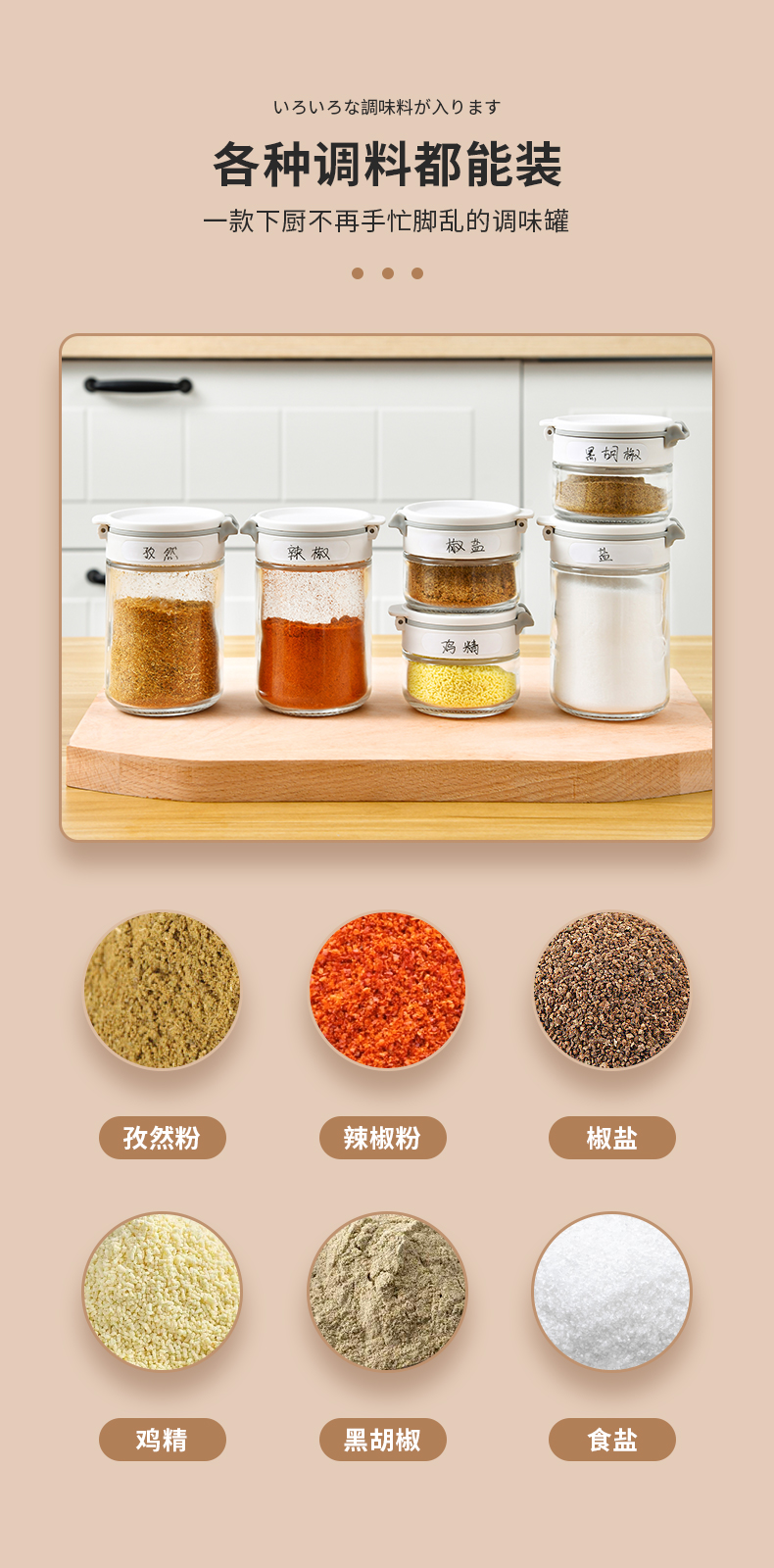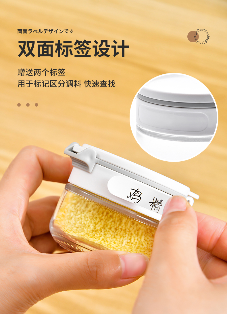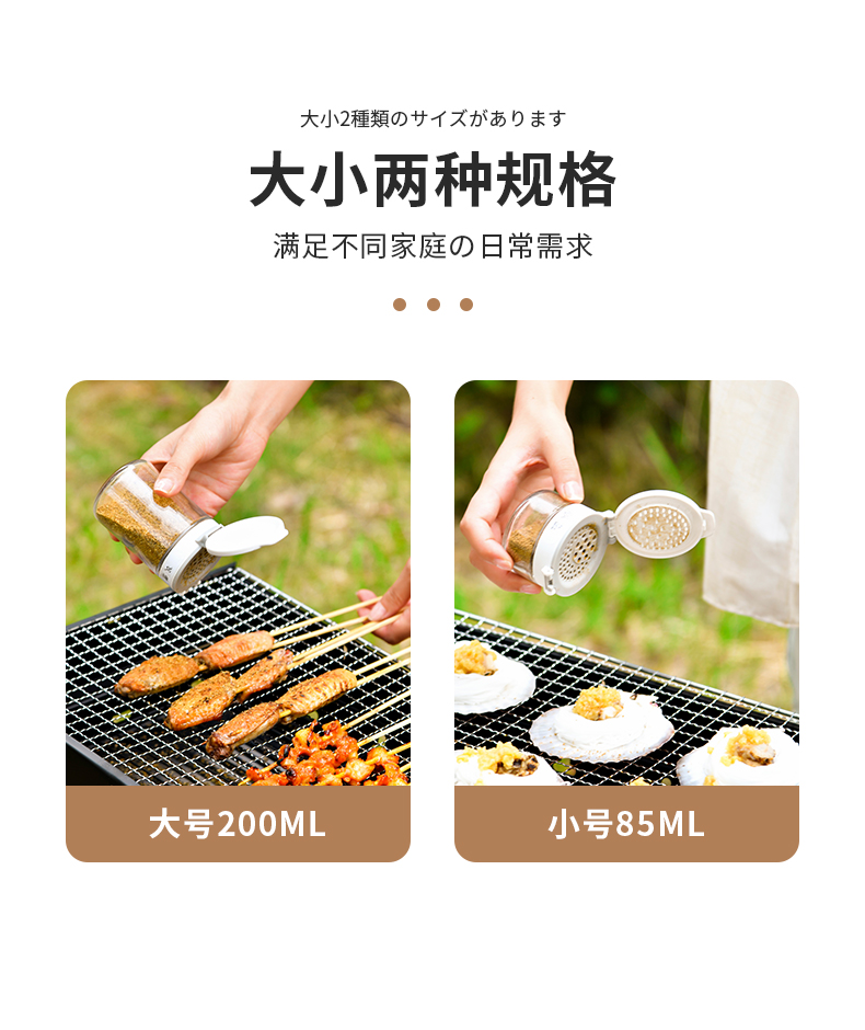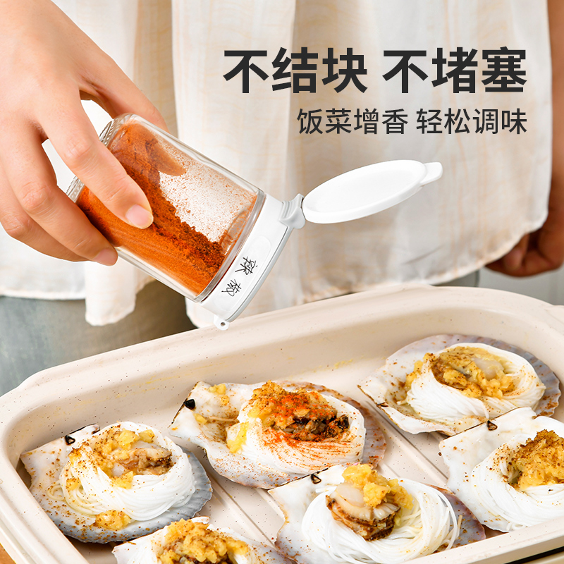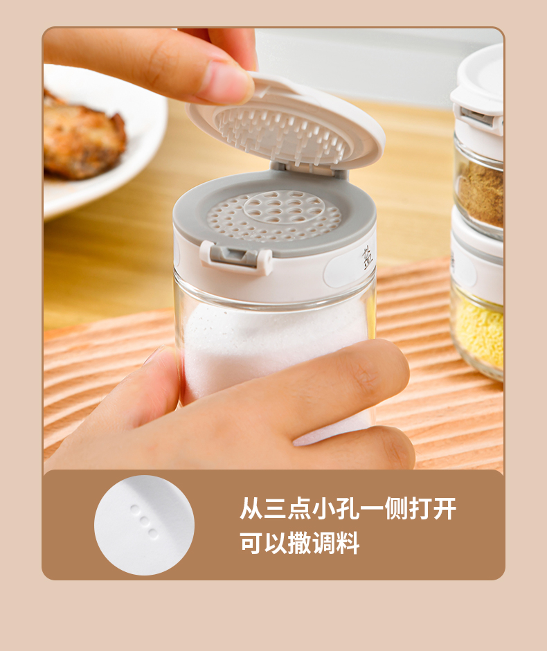 双盖圆形调料罐 小号 双盖分区大开口设计调料罐户外烧烤厨房家用调味罐盐罐调味瓶玻璃调料罐