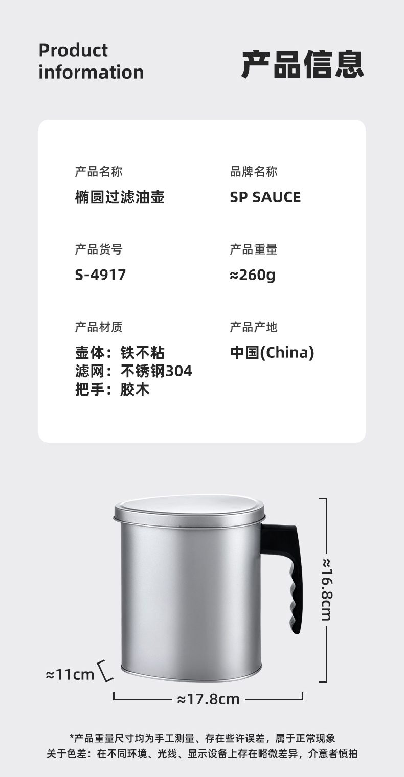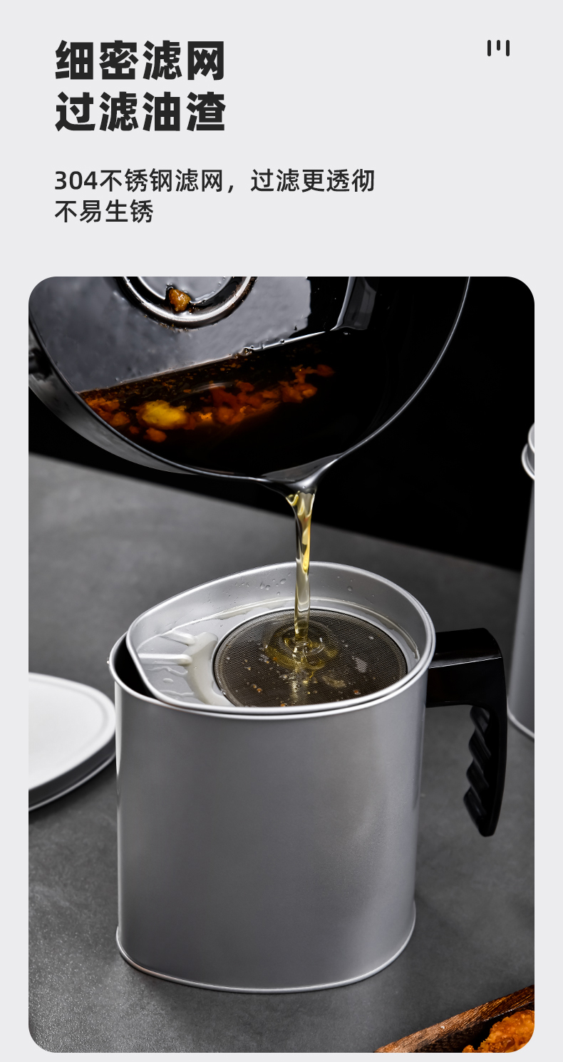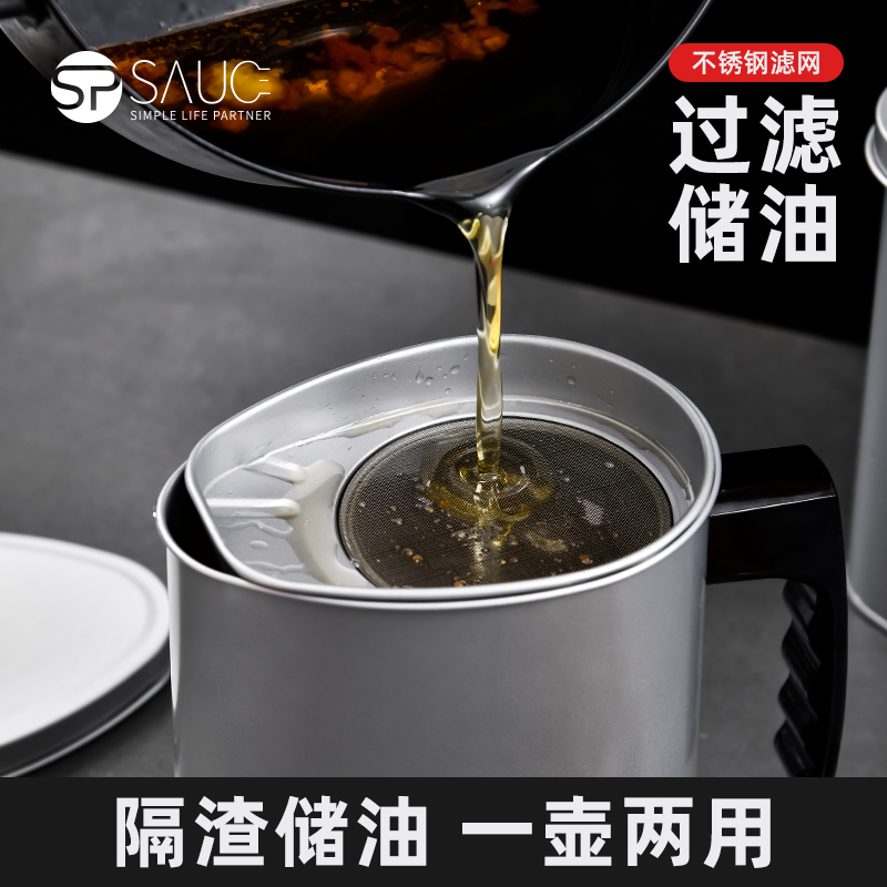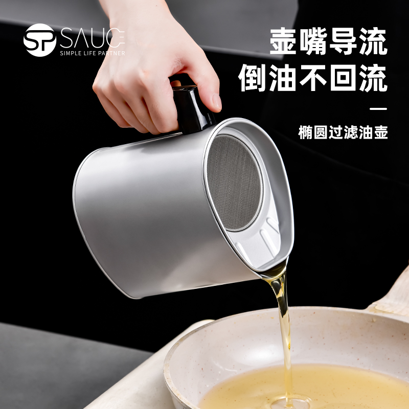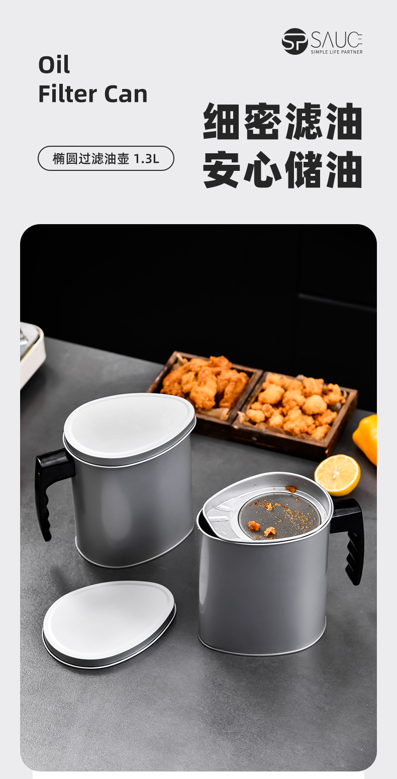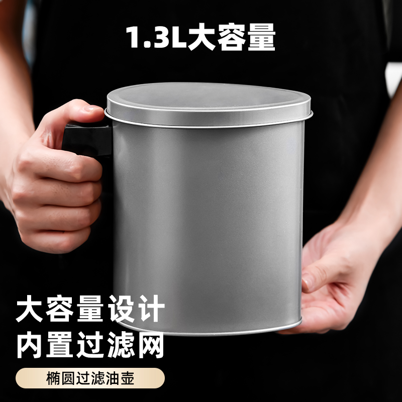 D 椭圆过滤油壶 1.3L 过滤油壶滤油神器过滤油渣壶漏油网油罐厨房家用沥油瓶