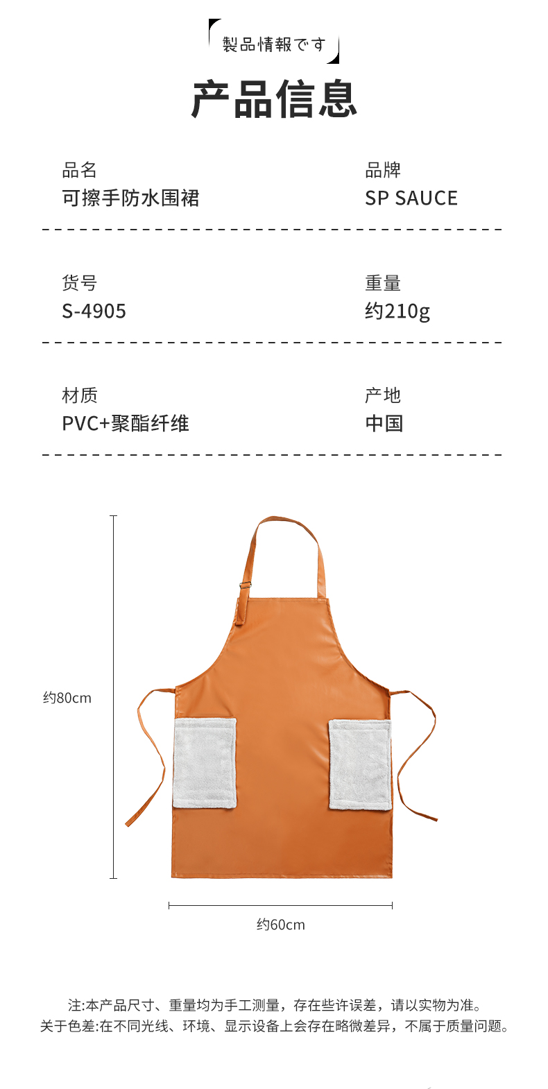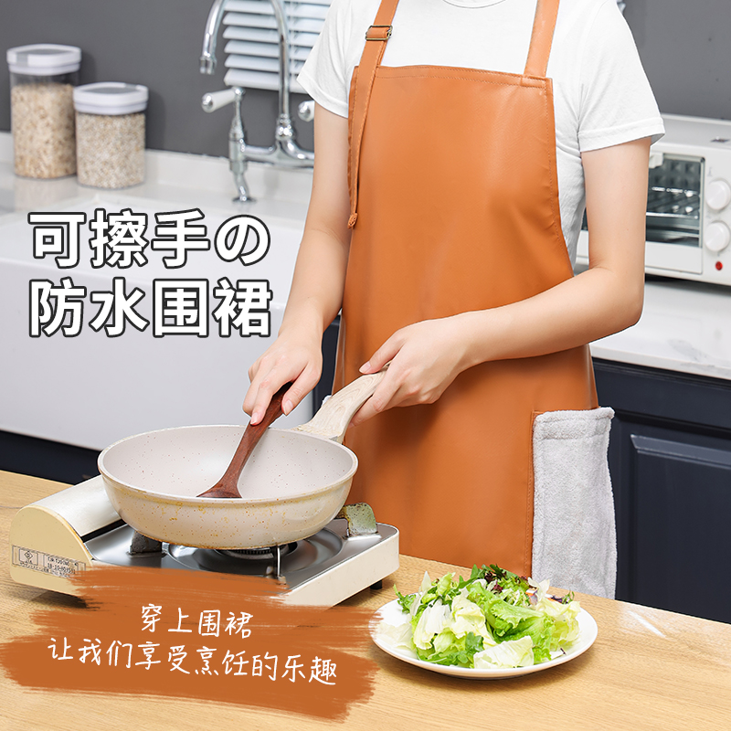 D可擦手防水围裙 可擦手围裙防水防油做饭专用罩衣围裙