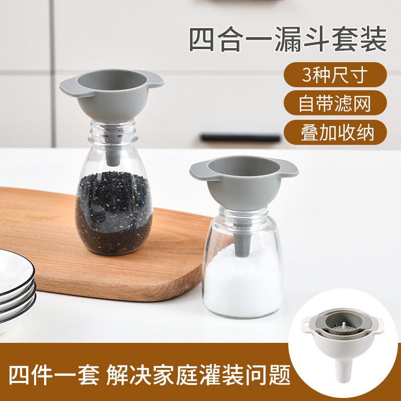 D 四合一多功能漏斗套装 家用四合一漏斗厨房大小号口径倒油器酱油醋分装油斗带过滤网