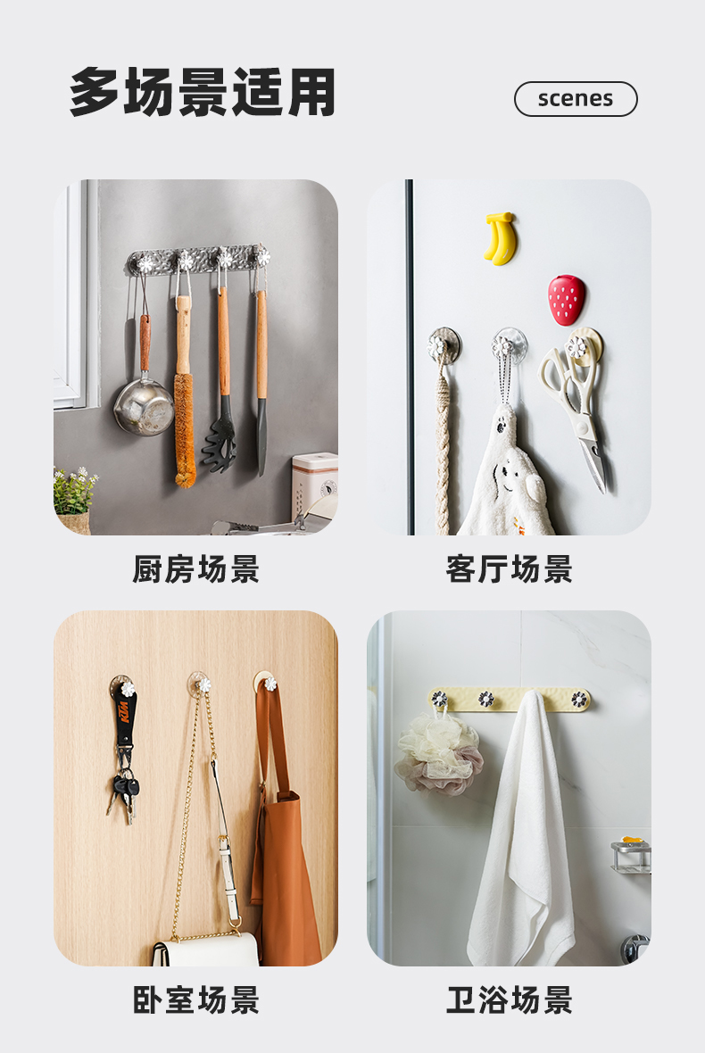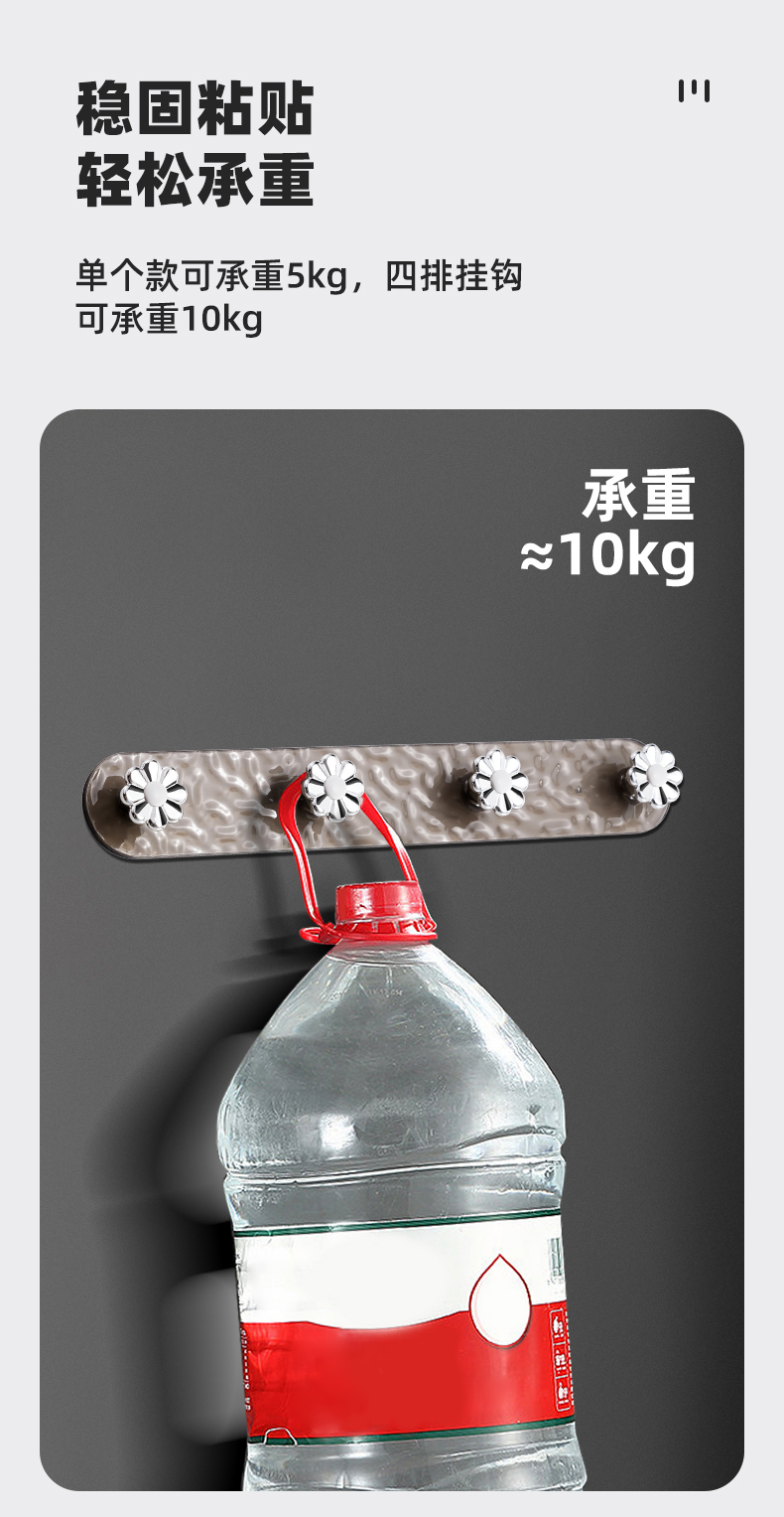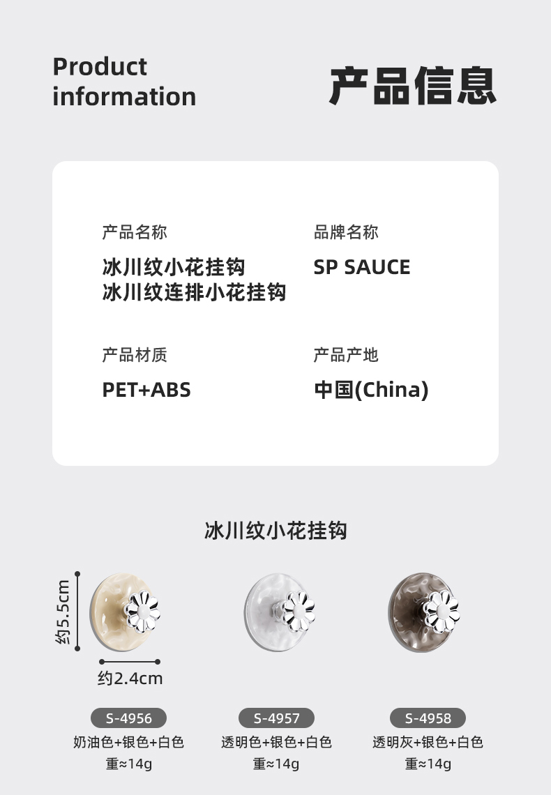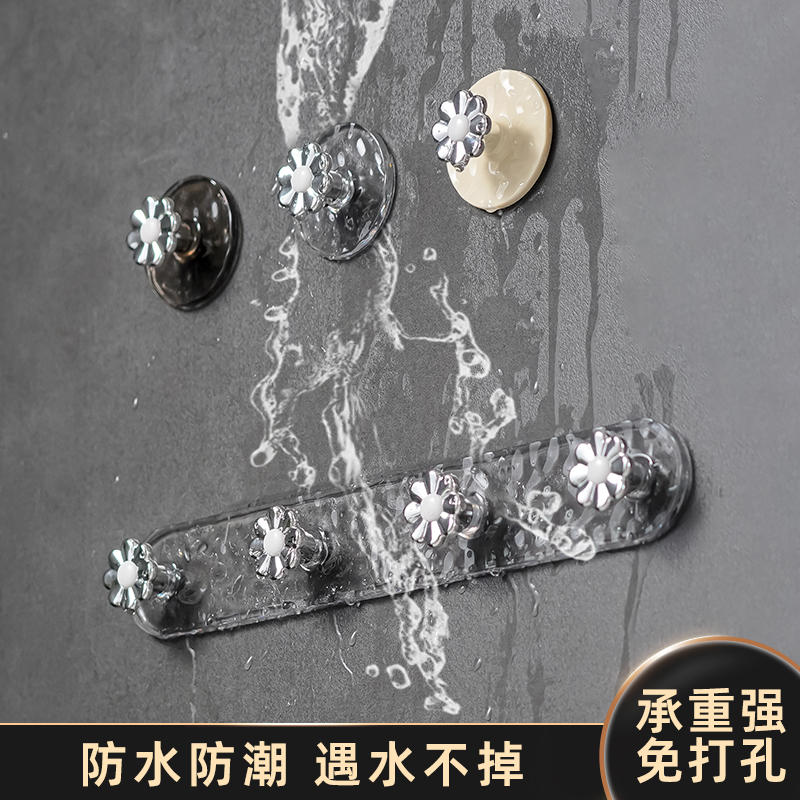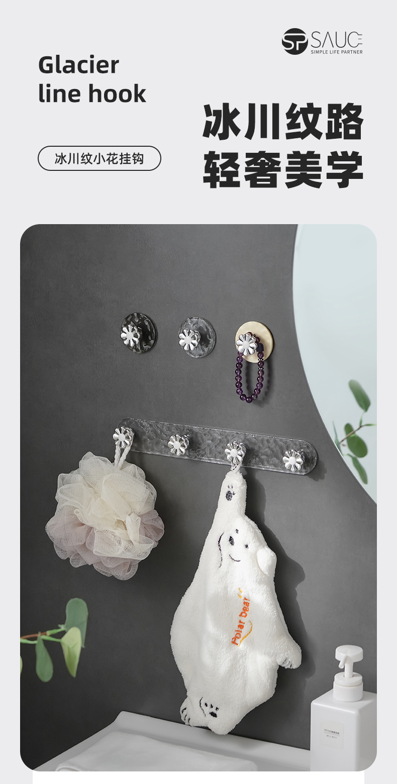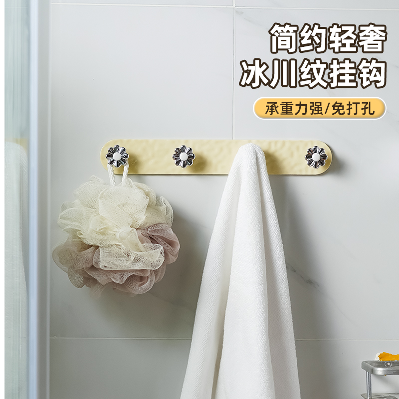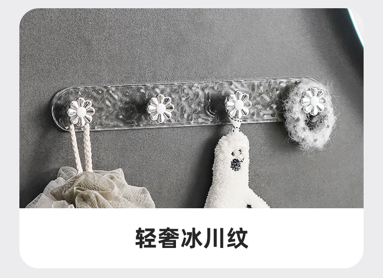 D 冰川纹连排小花挂钩 轻奢挂钩免打孔浴室卫生间粘钩墙壁门后无痕毛巾挂钩