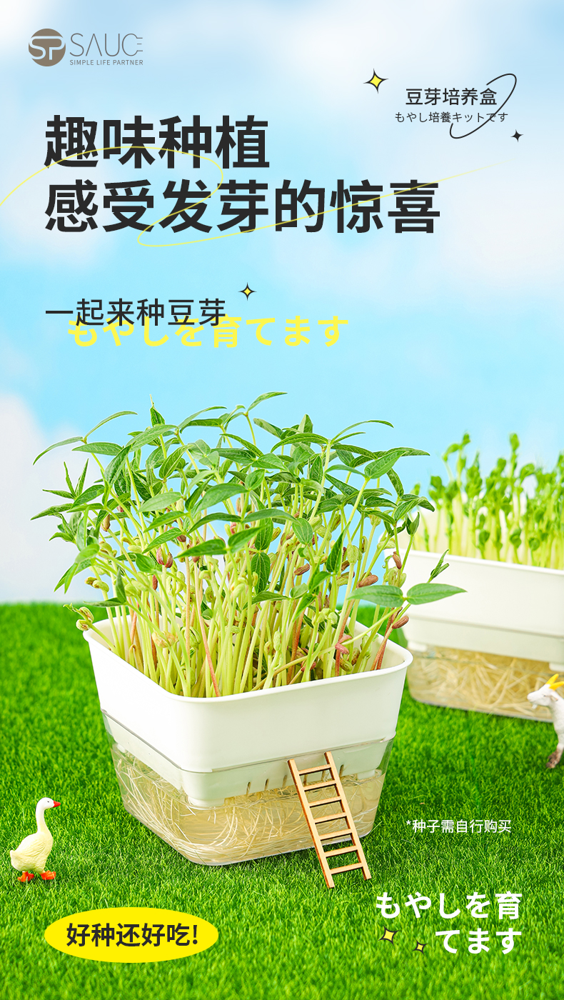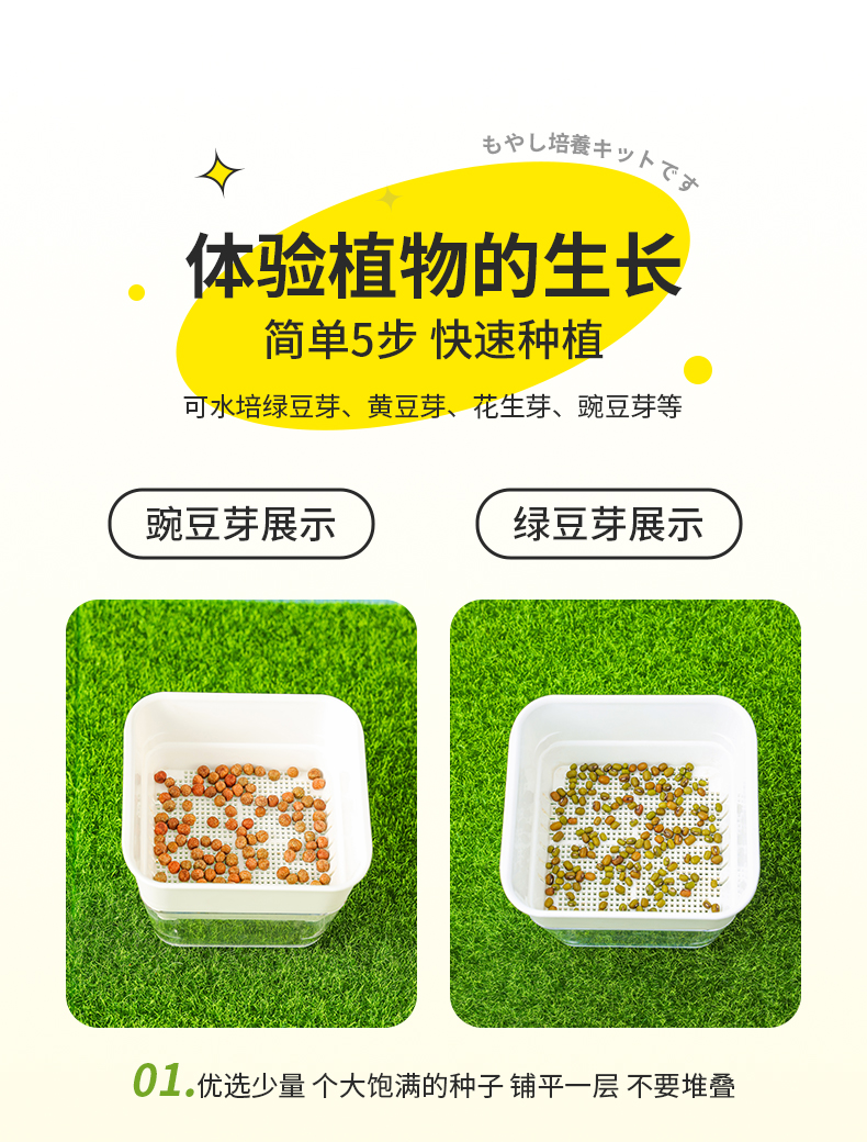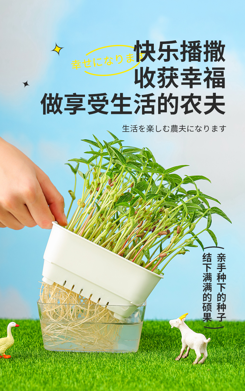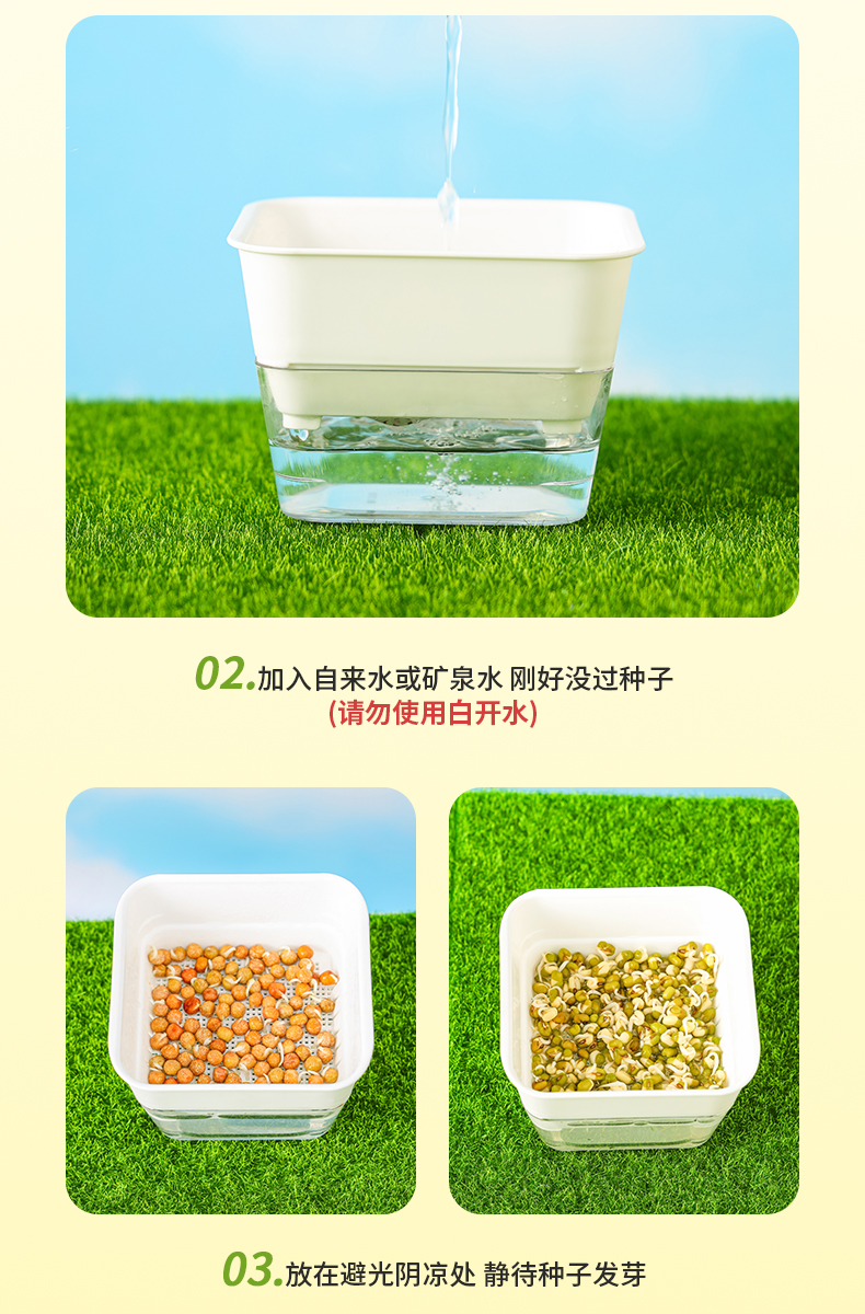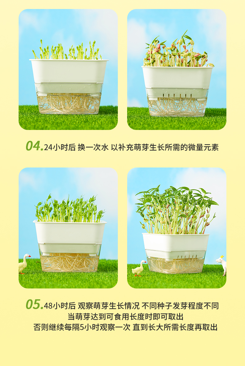 D 豆芽培养盒 豆芽豆苗猫草种植盒盆栽盒多功能沥水盒