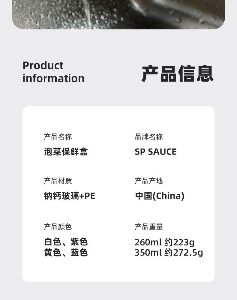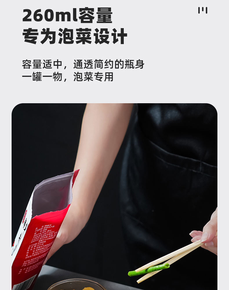 泡菜保鲜盒(260ml) 玻璃保鲜密封罐带盖食品级咸菜收纳盒冰箱冷藏腌菜小菜储物罐子