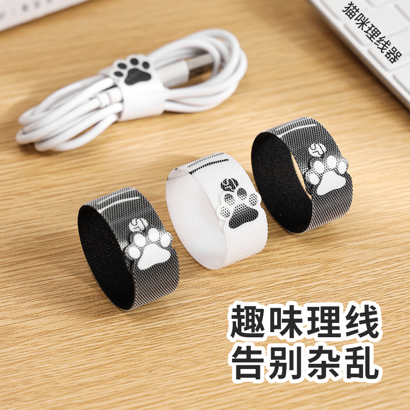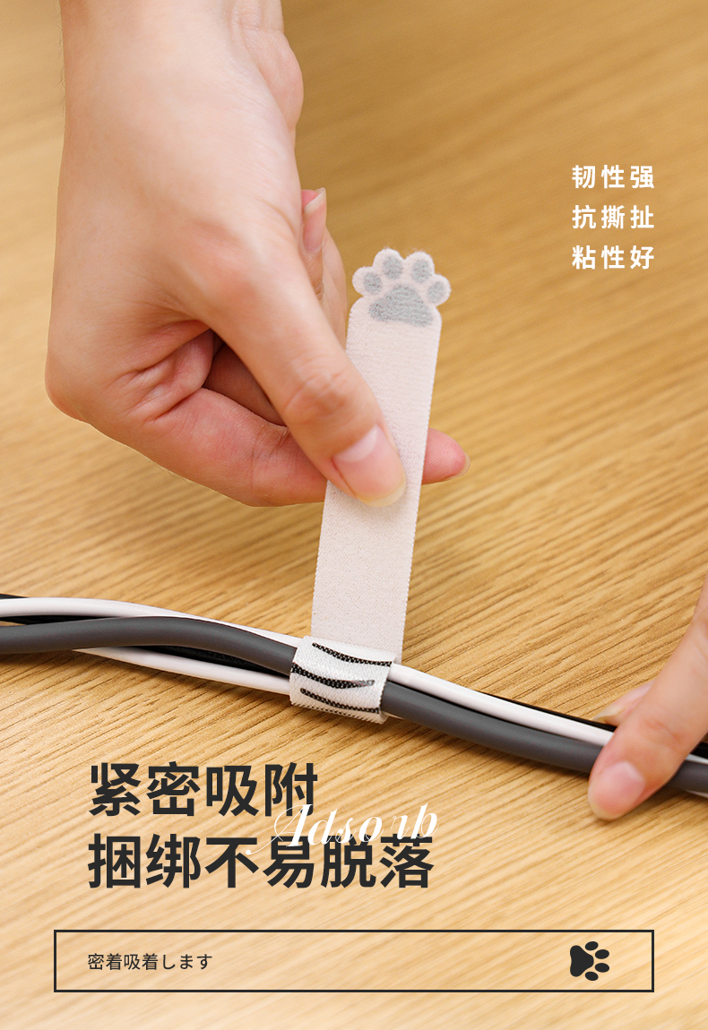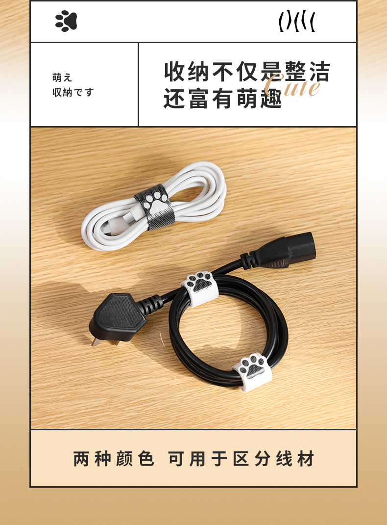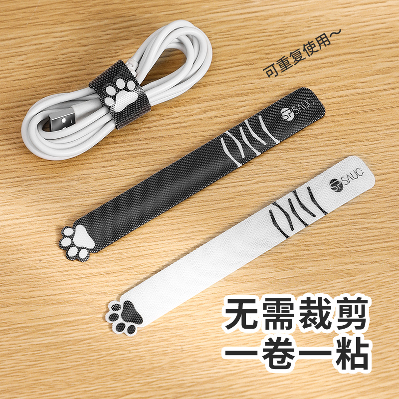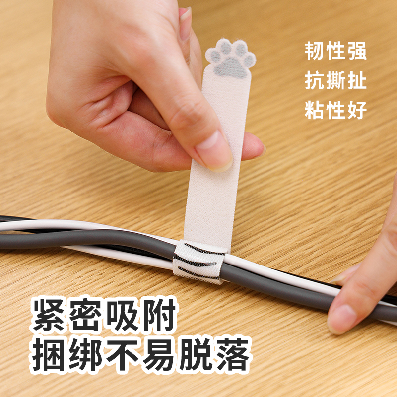 D 猫咪理线器(10枚) 魔术贴数据线充电线卡通扎带双面自粘收纳束线捆绑带整理固定神器