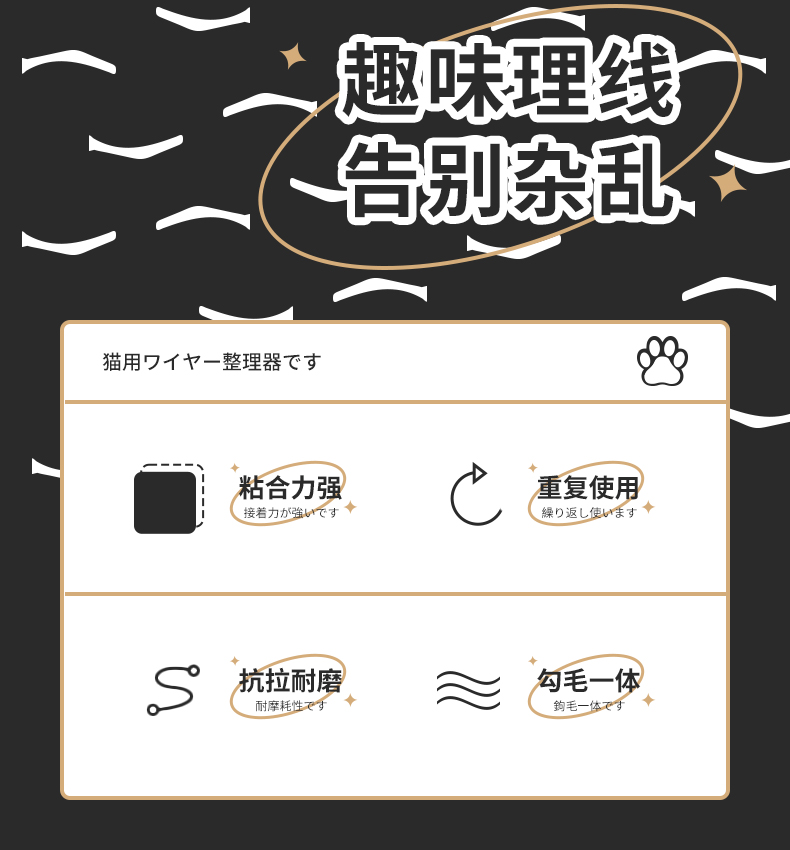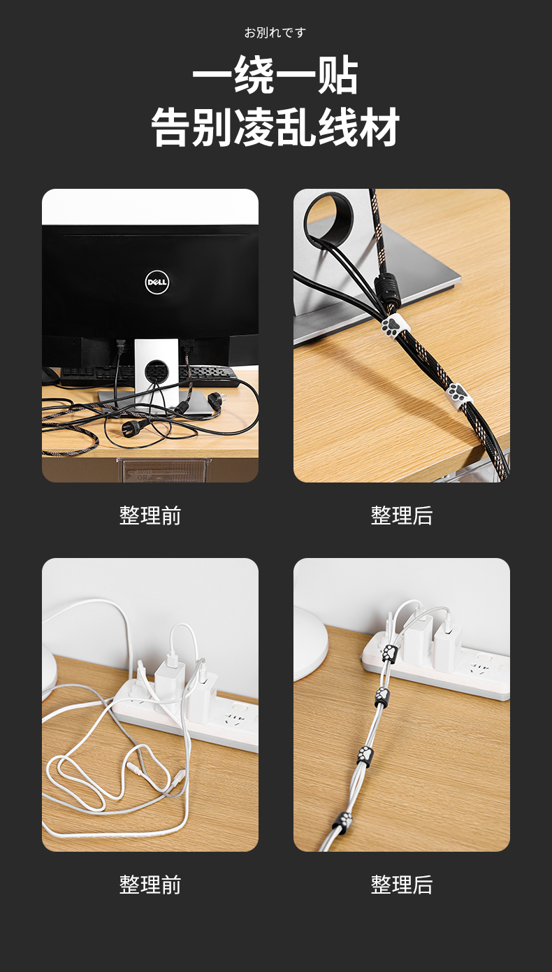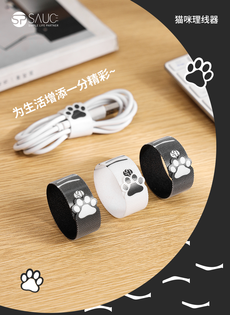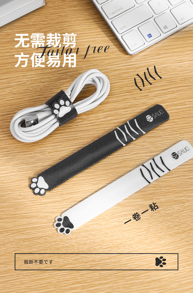 D 猫咪理线器(10枚) 魔术贴数据线充电线卡通扎带双面自粘收纳束线捆绑带整理固定神器