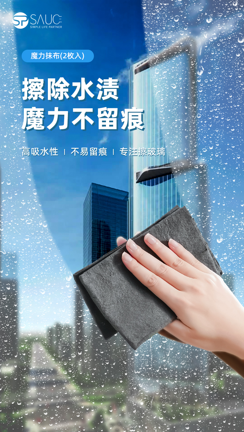 魔力抹布(2枚入) 魔力抹布玻璃镜子专用抹布不留痕不掉絮擦灰神器