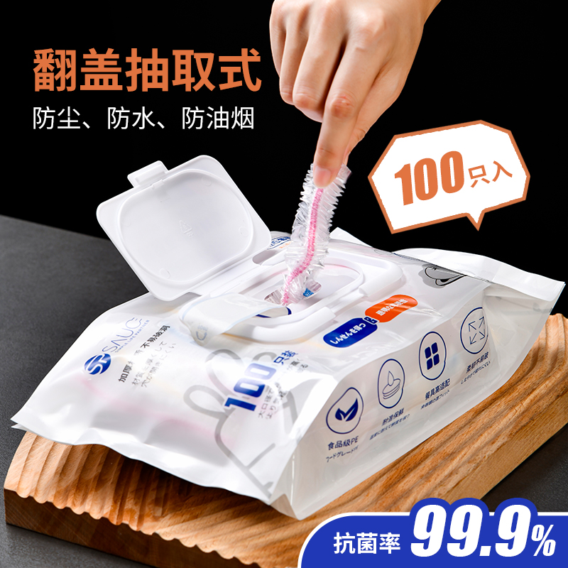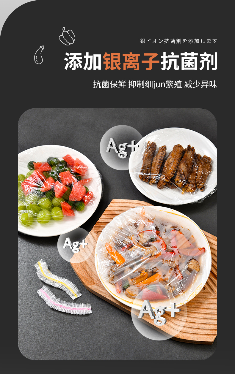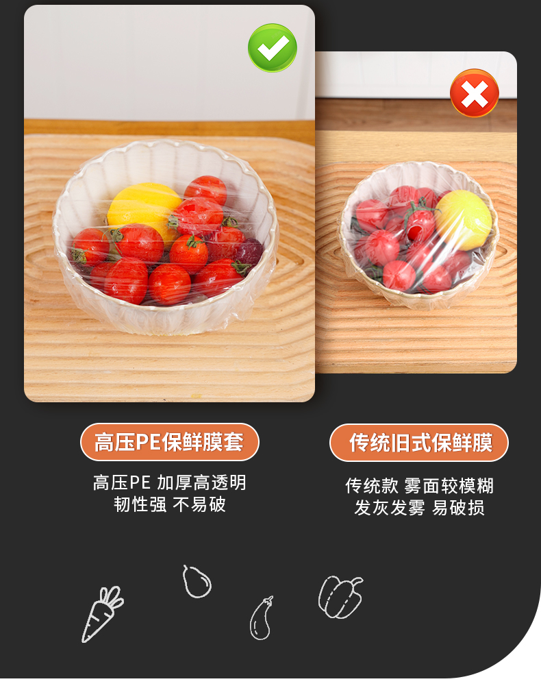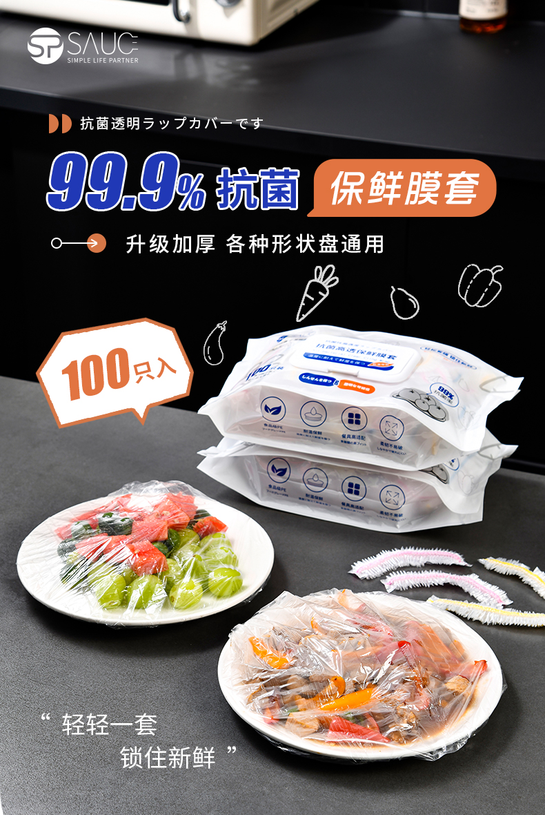 抗菌高透保鲜膜套(100只入) 抗菌食品级家用保鲜膜套罩冰箱罩碗菜套碗盖保鲜袋松紧抗菌保鲜膜
