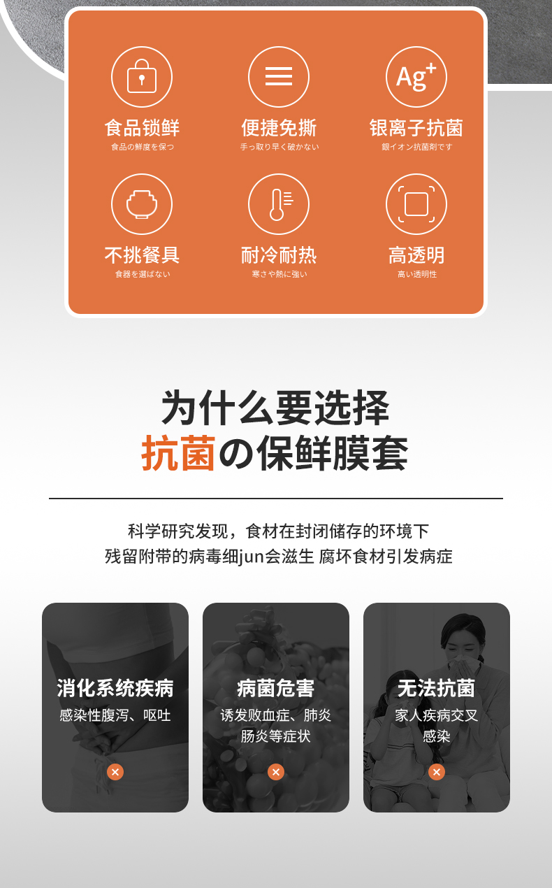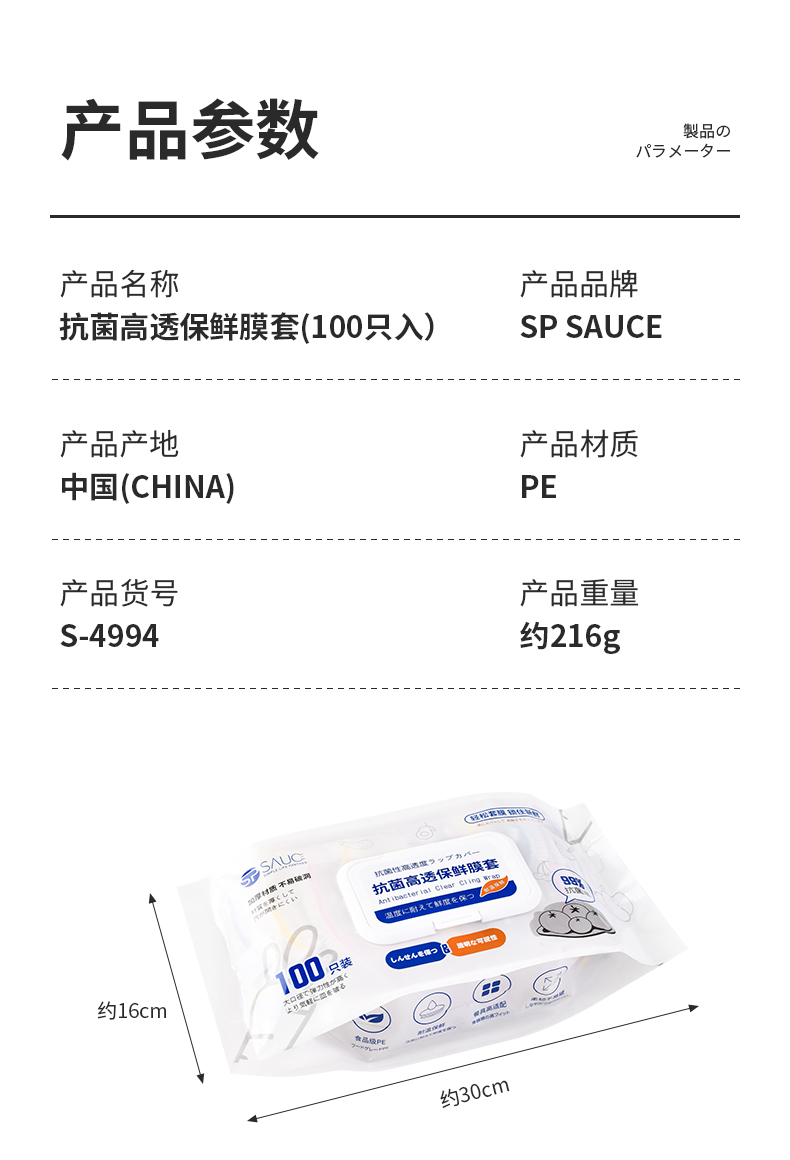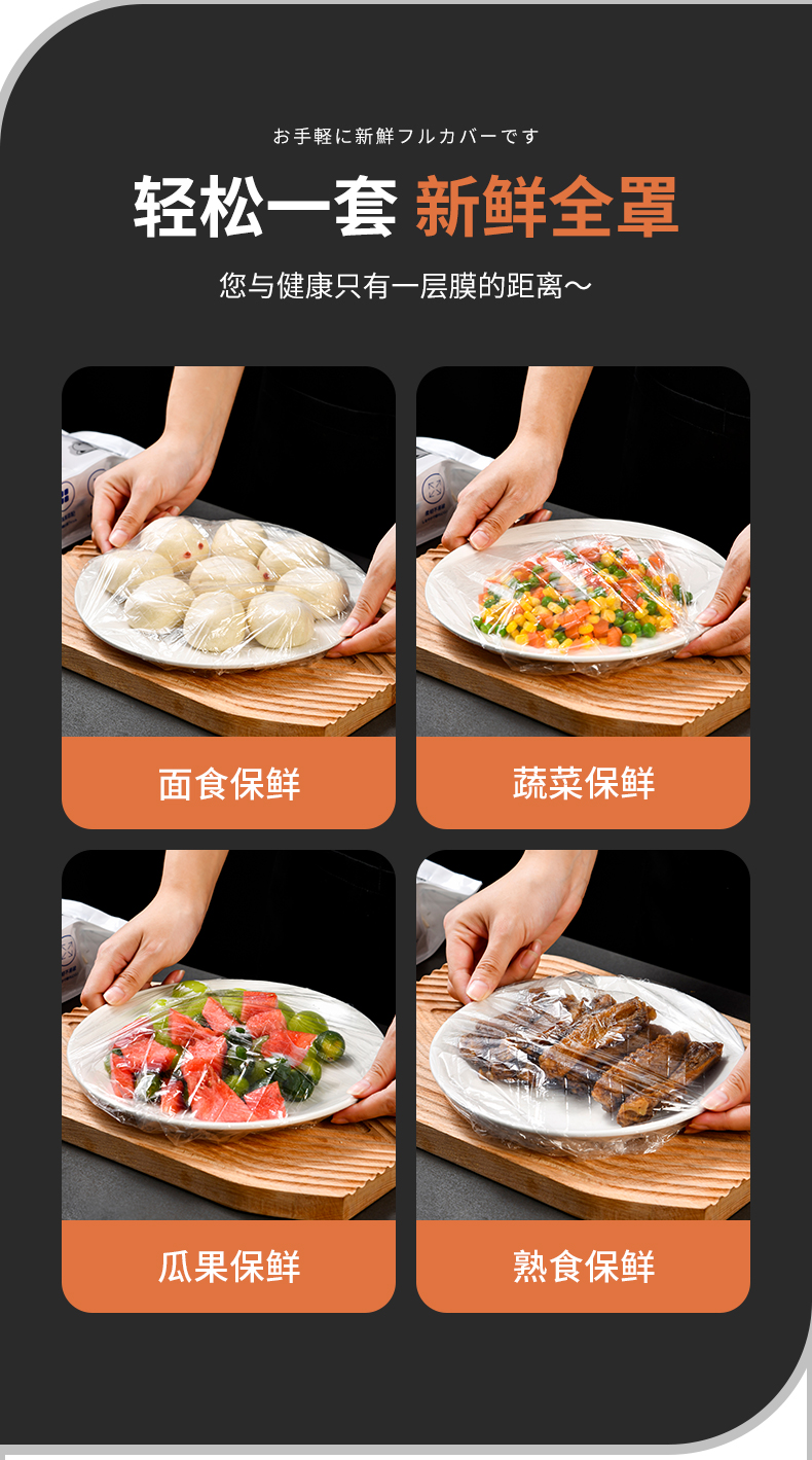 抗菌高透保鲜膜套(100只入) 抗菌食品级家用保鲜膜套罩冰箱罩碗菜套碗盖保鲜袋松紧抗菌保鲜膜