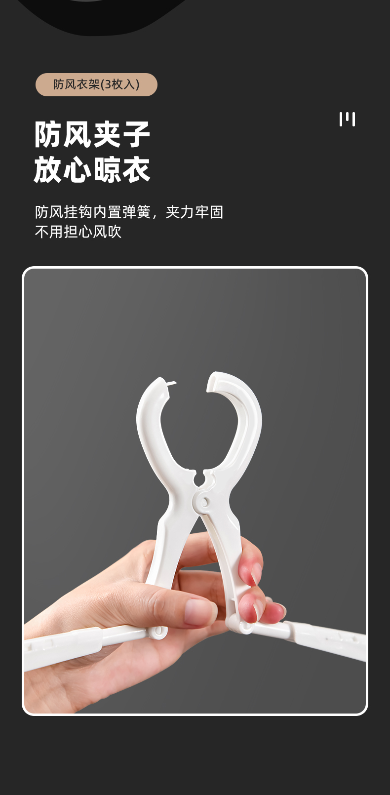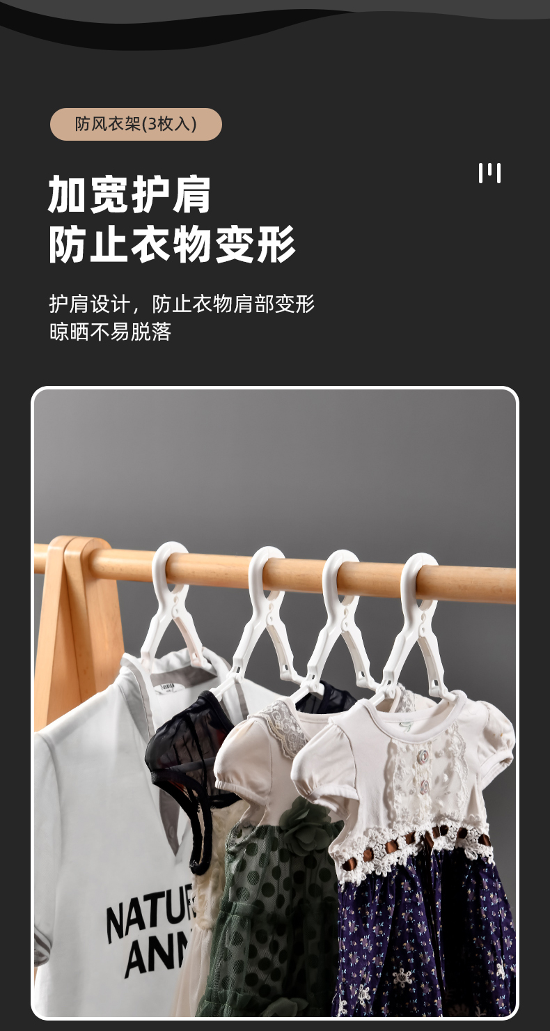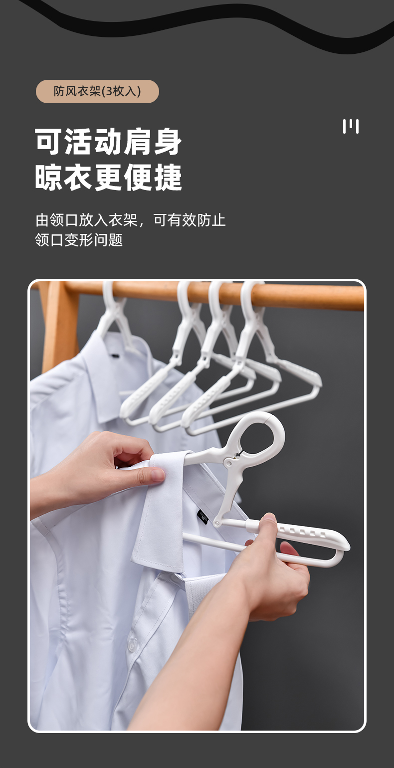 D可伸缩防风衣架(3枚入) 防风可伸缩多功能衣架厚肩保护多档调节可变晾晒架
