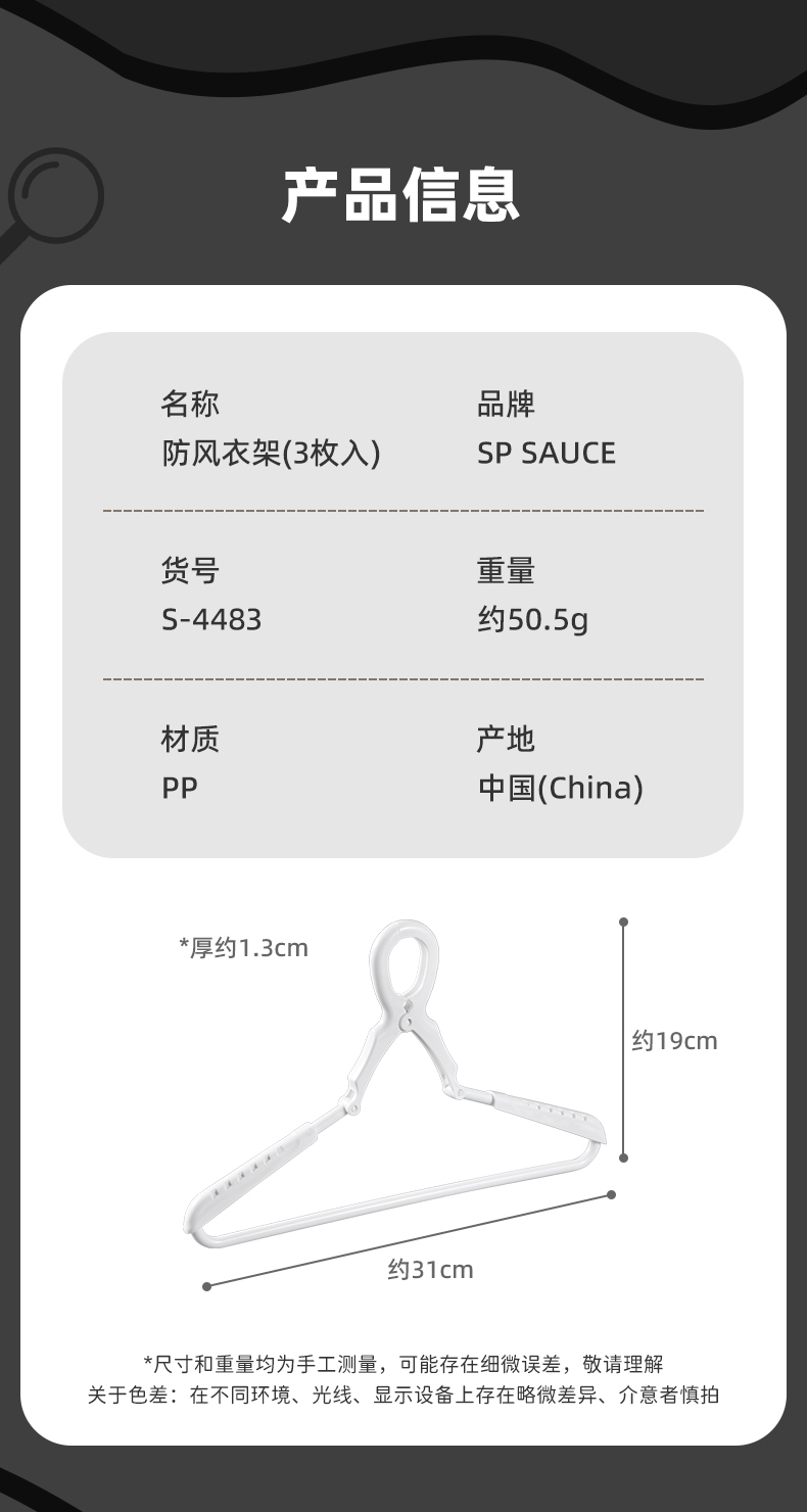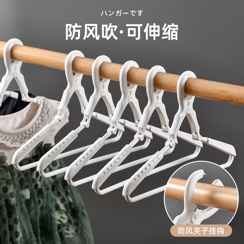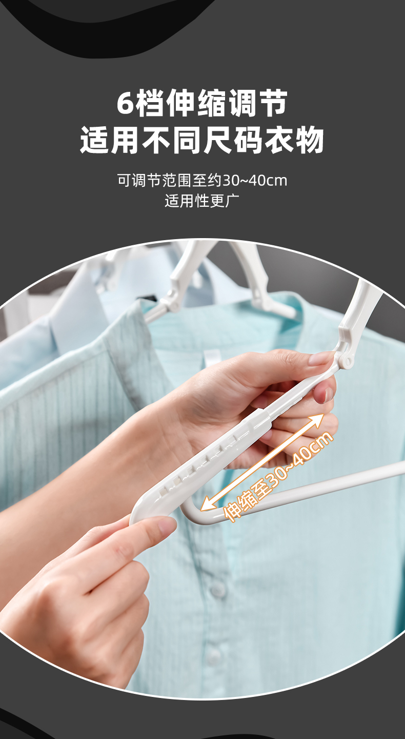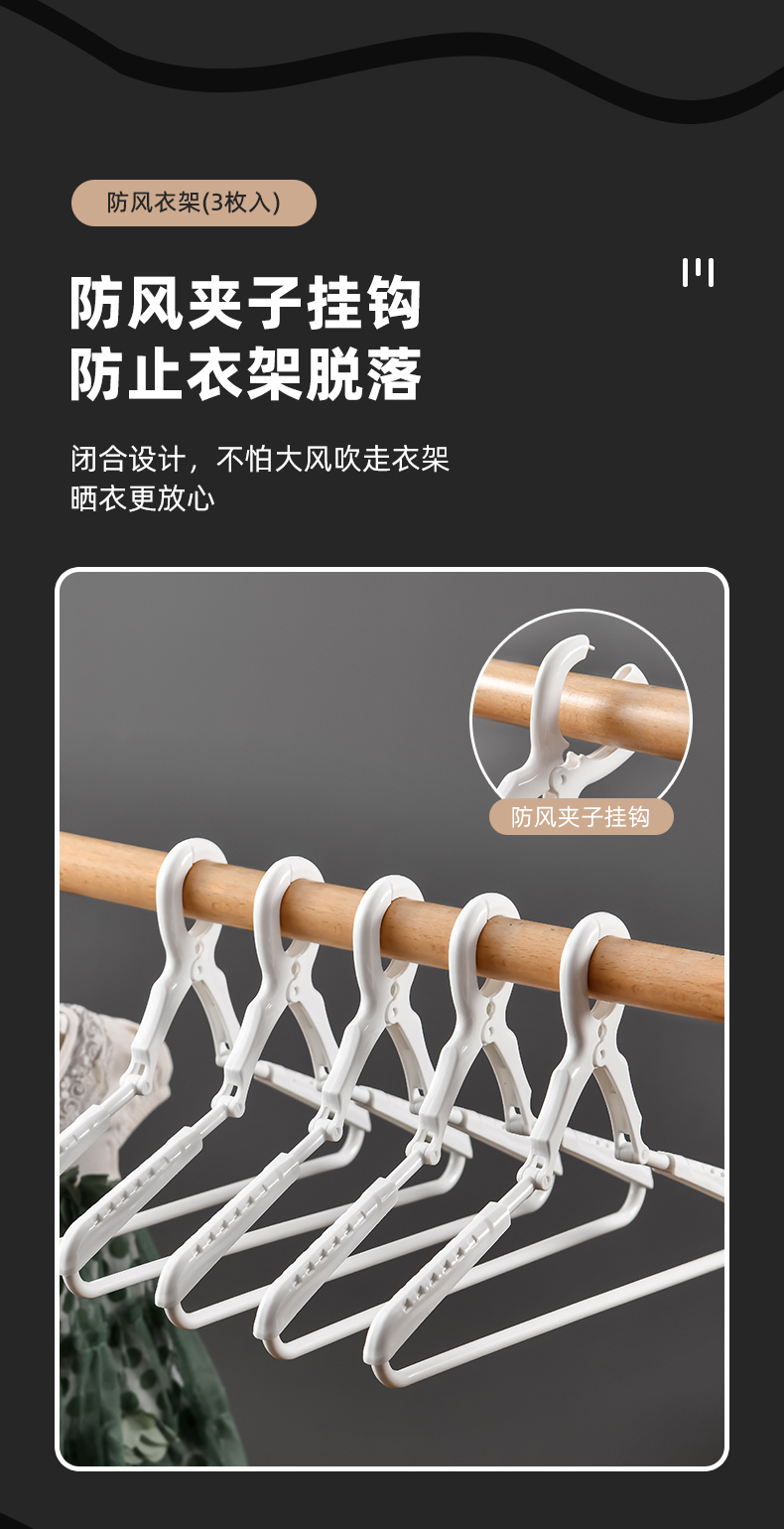 D可伸缩防风衣架(3枚入) 防风可伸缩多功能衣架厚肩保护多档调节可变晾晒架