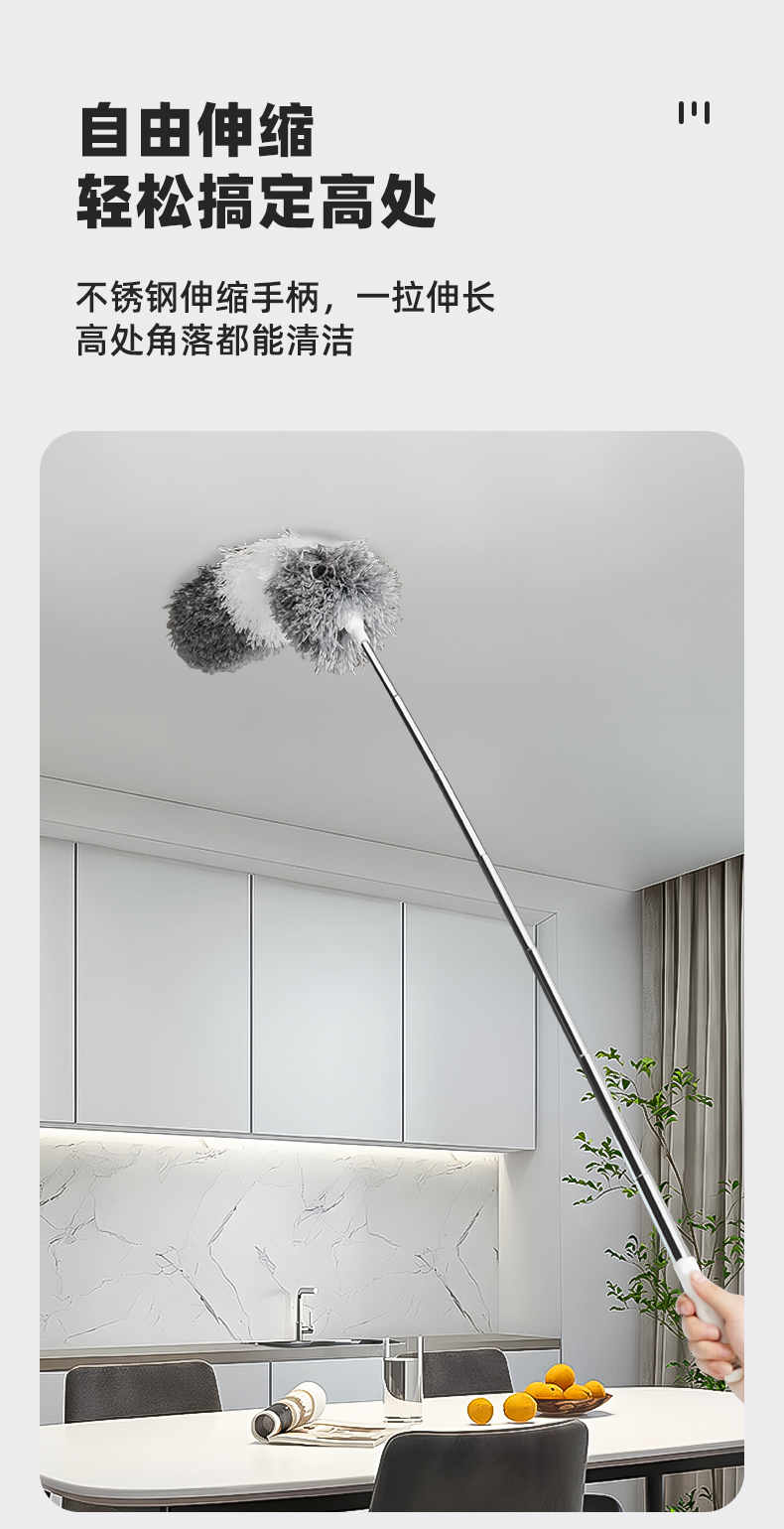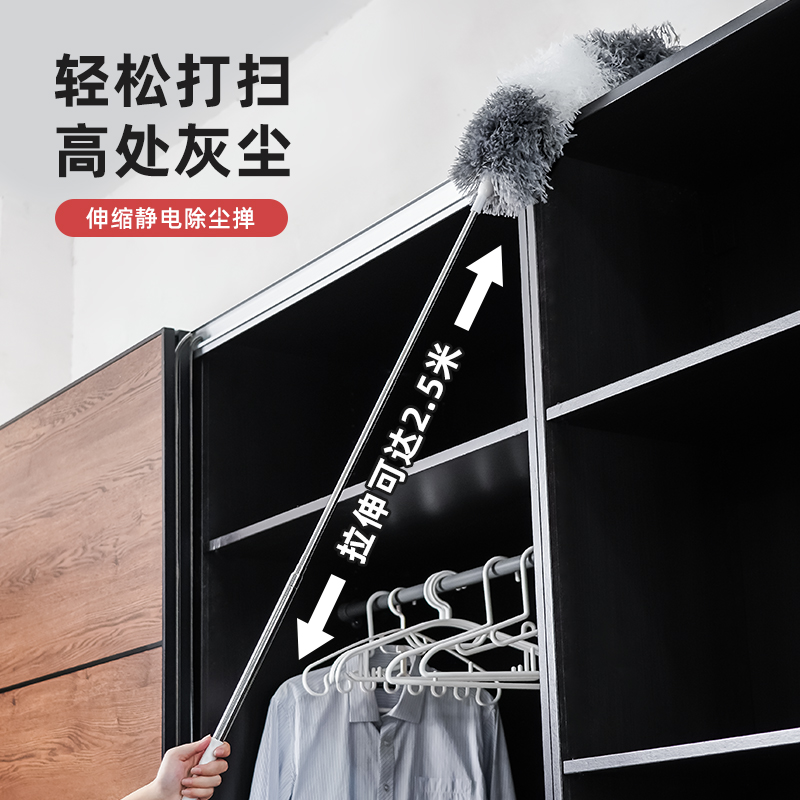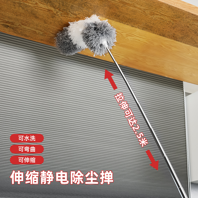 D 伸缩静电除尘掸 (1.4米) 静电除尘档伸缩毛掸天花板吊顶墙顶高层缝隙清洁扫灰神器