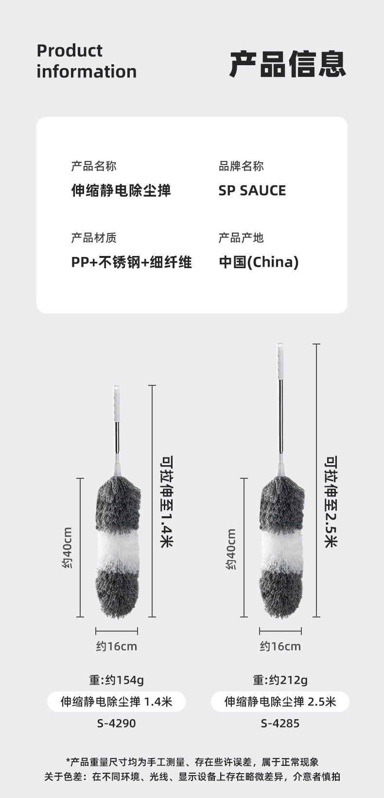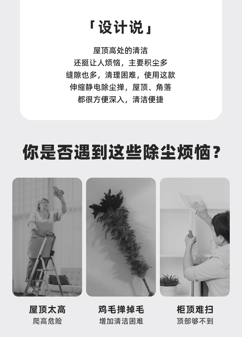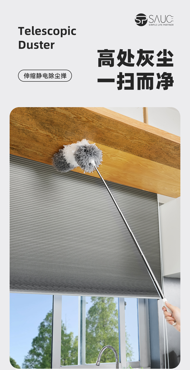 伸缩静电除尘掸 (2.5米) 静电除尘档伸缩毛掸天花板吊顶墙顶高层缝隙清洁扫灰神器