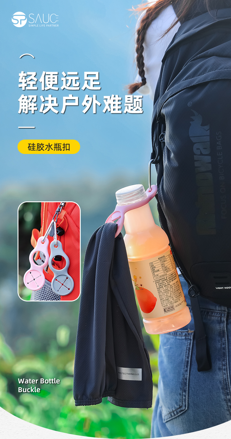 硅胶水瓶扣 旅行户外水瓶扣擦汗巾固定扣带饮料神器冰袖收纳扣
