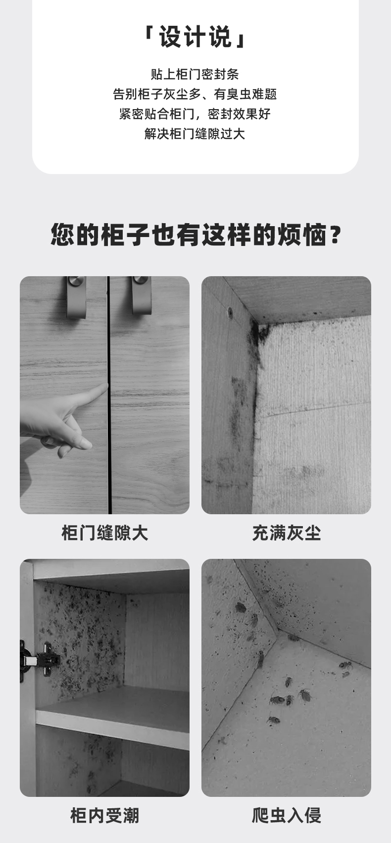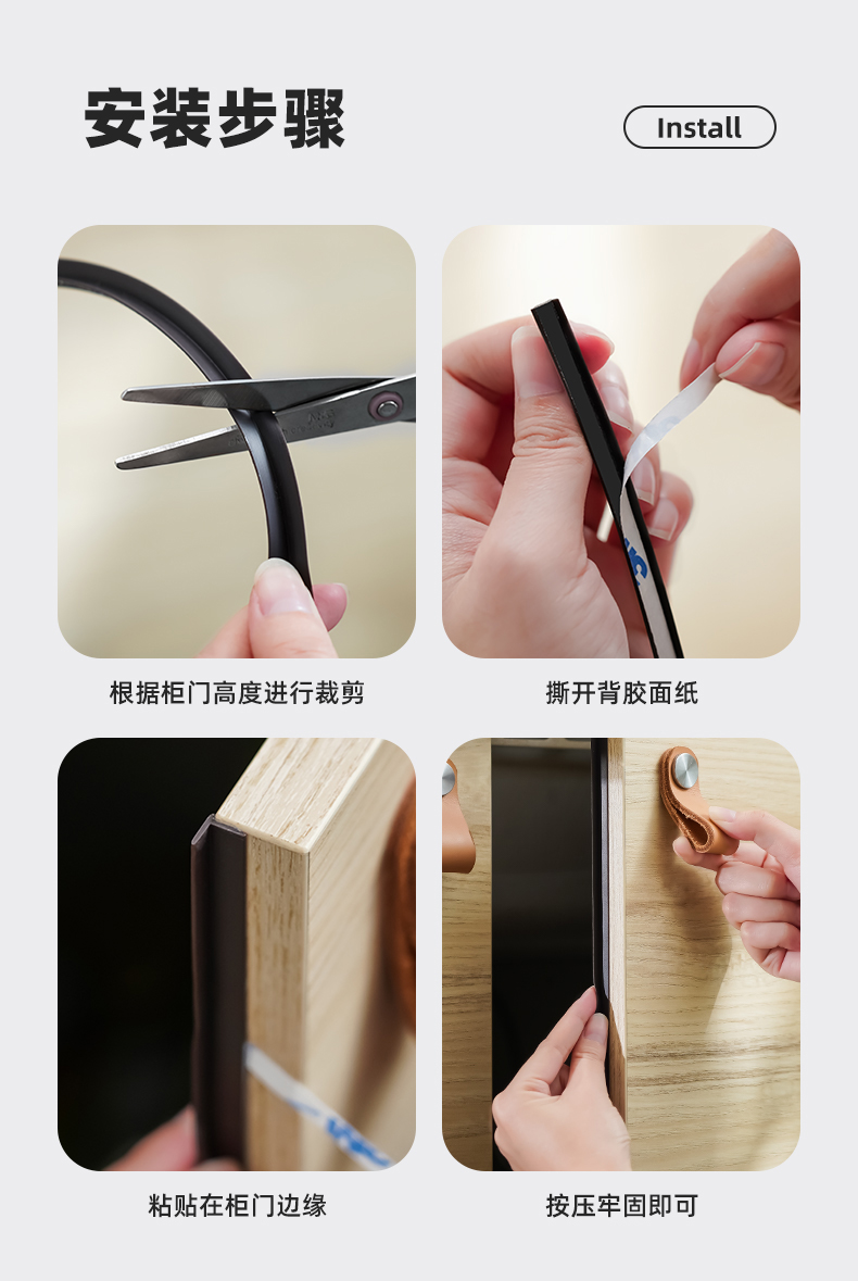 D 柜门密封条(2.8米) 橱柜衣柜浴室柜密封条防蟑螂防潮防灰缝隙填充条隔音垫