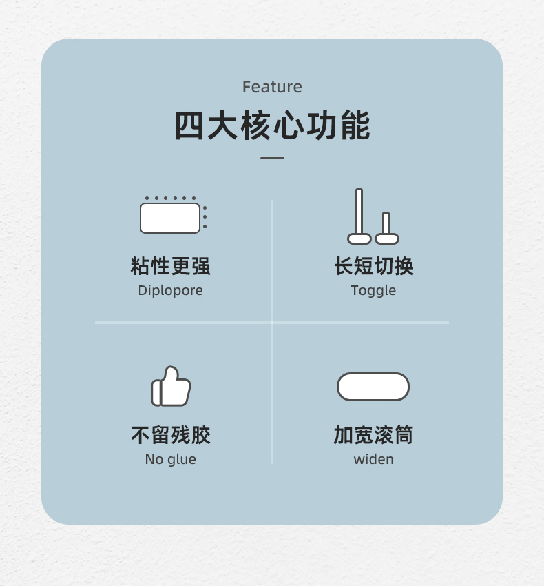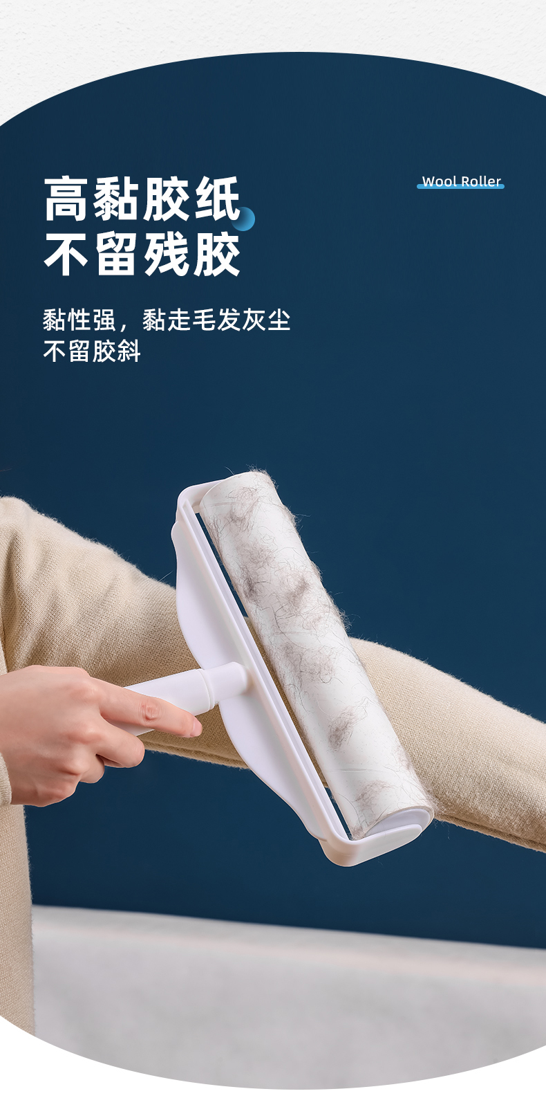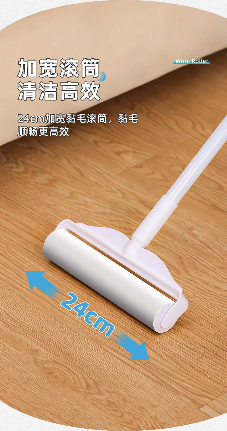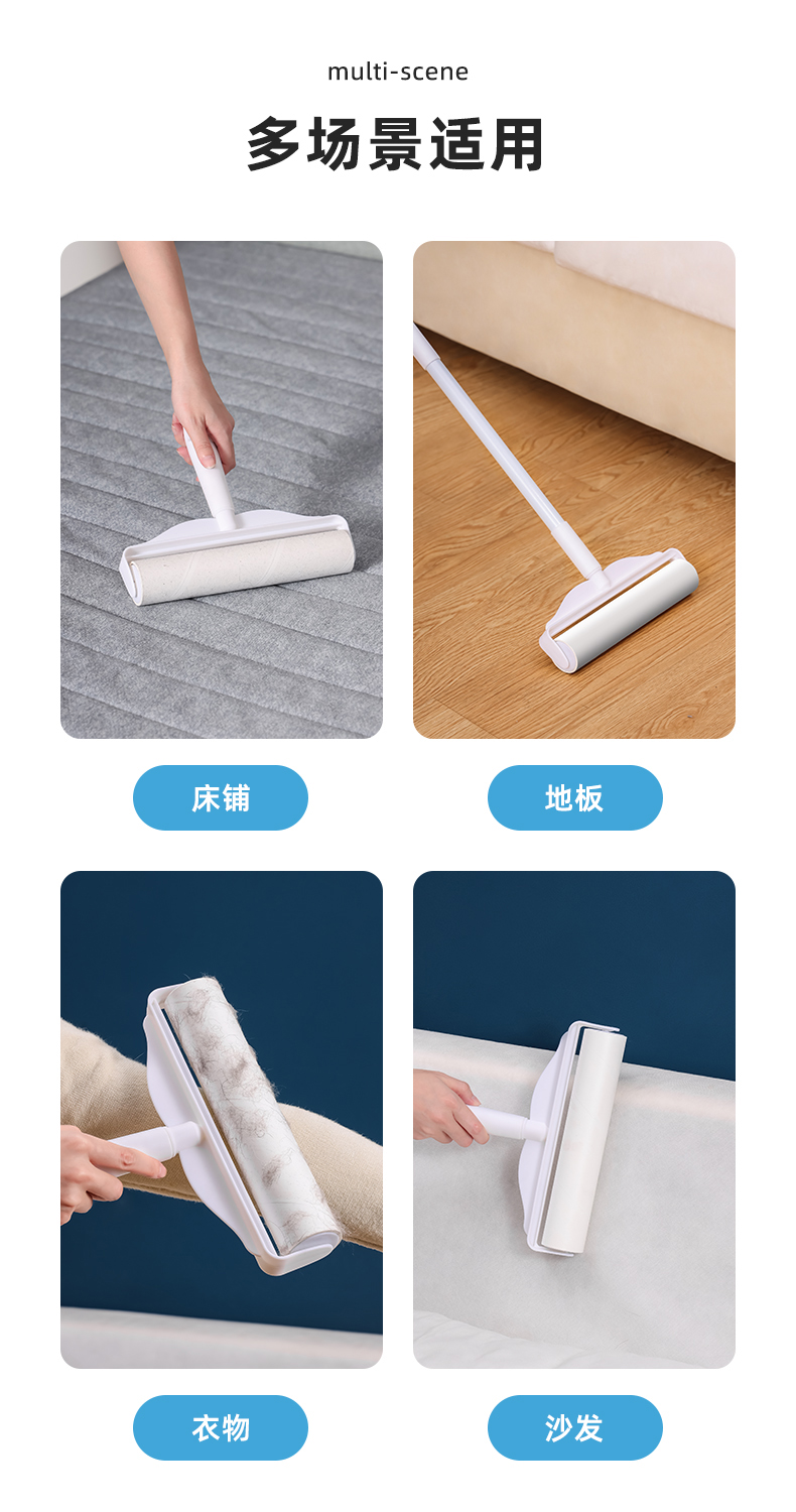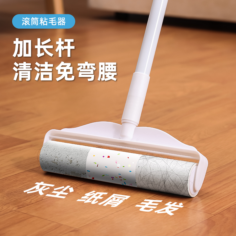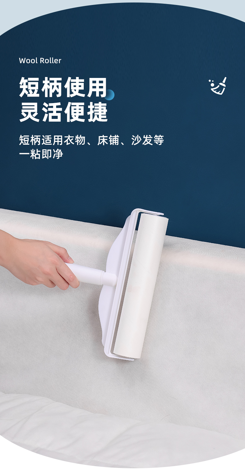 D 短柄滚筒粘毛器(55撕) 滚筒长杆短手柄粘毛器衣物床单被褥地毯多用可撕可替换纸卷强力粘毛神器