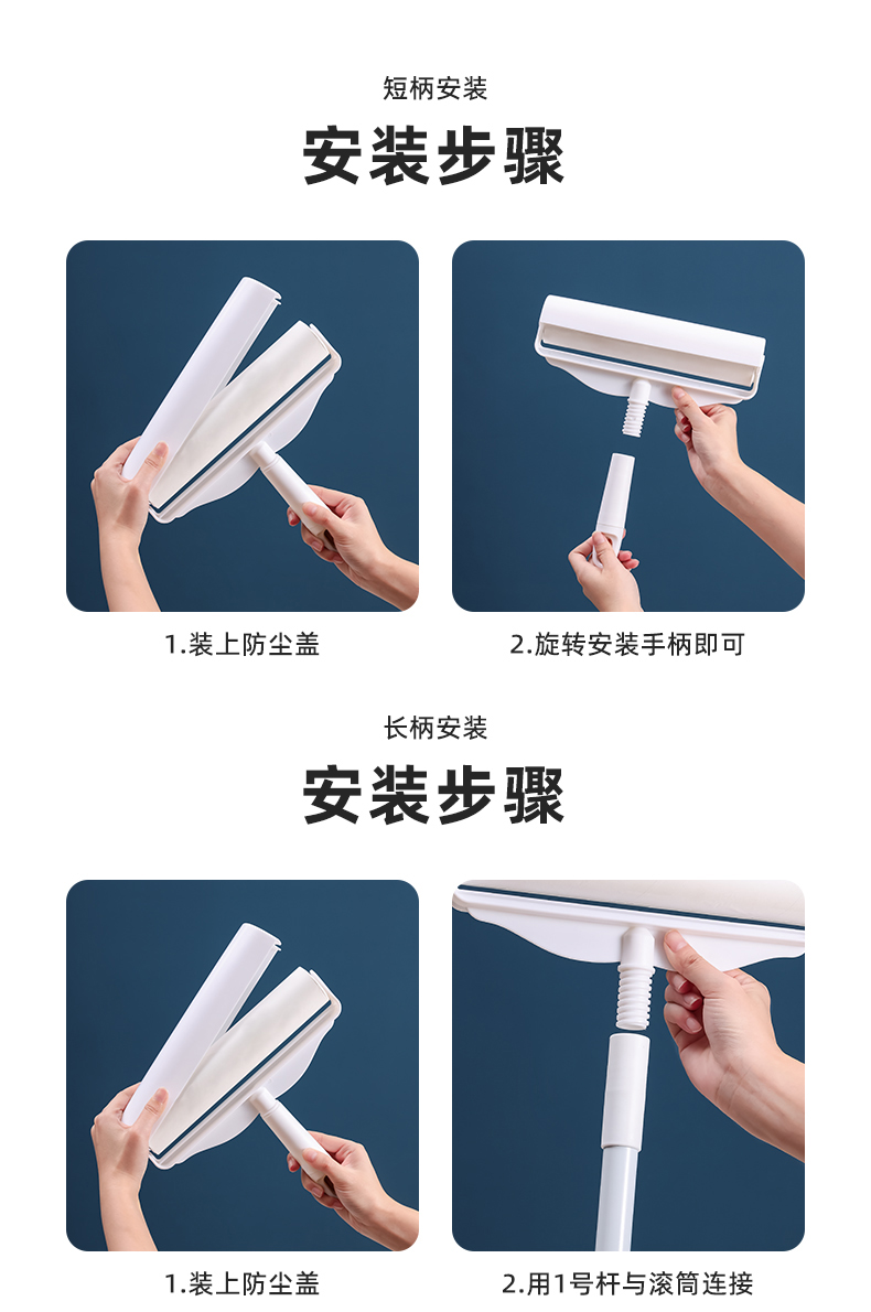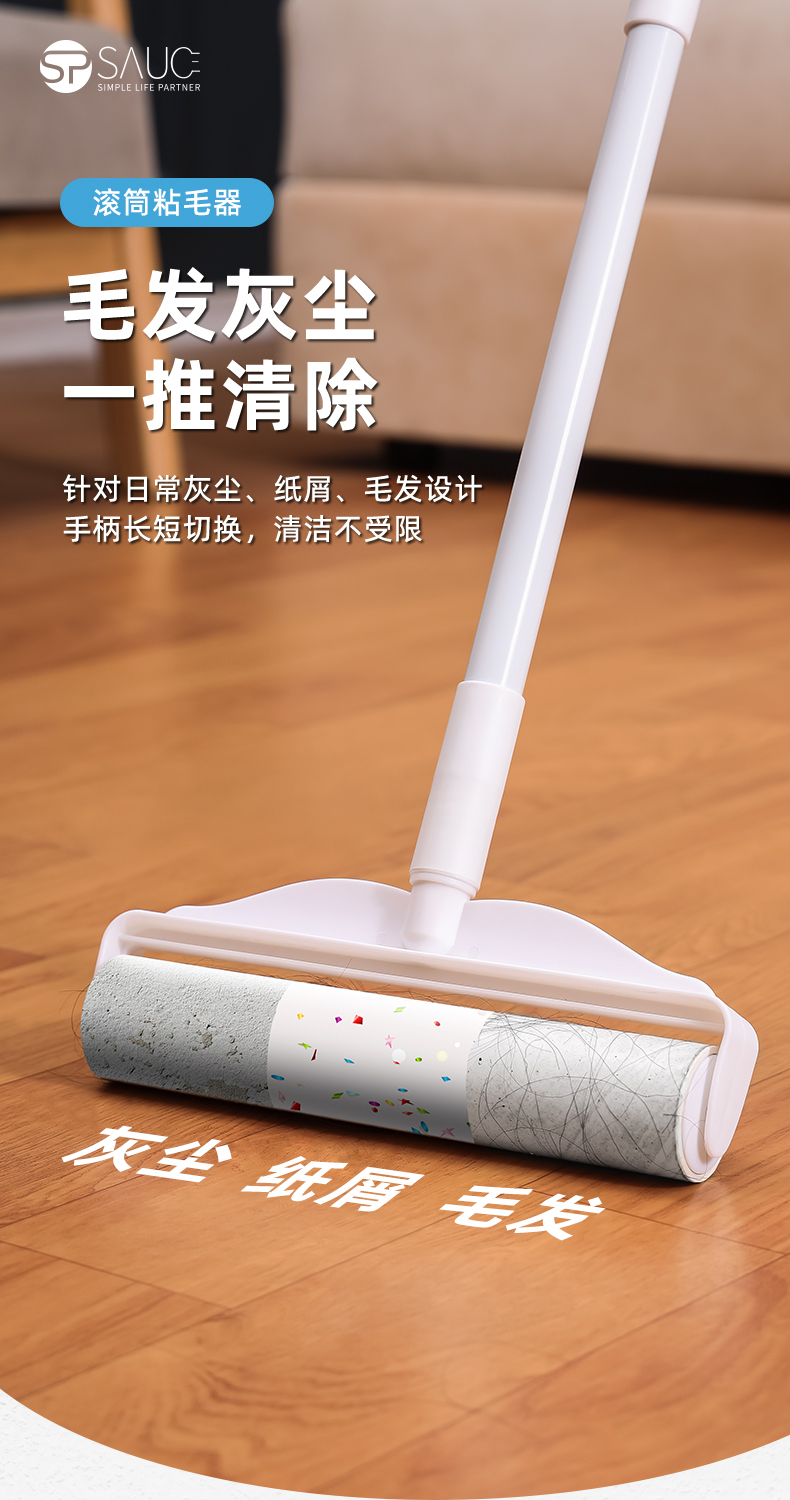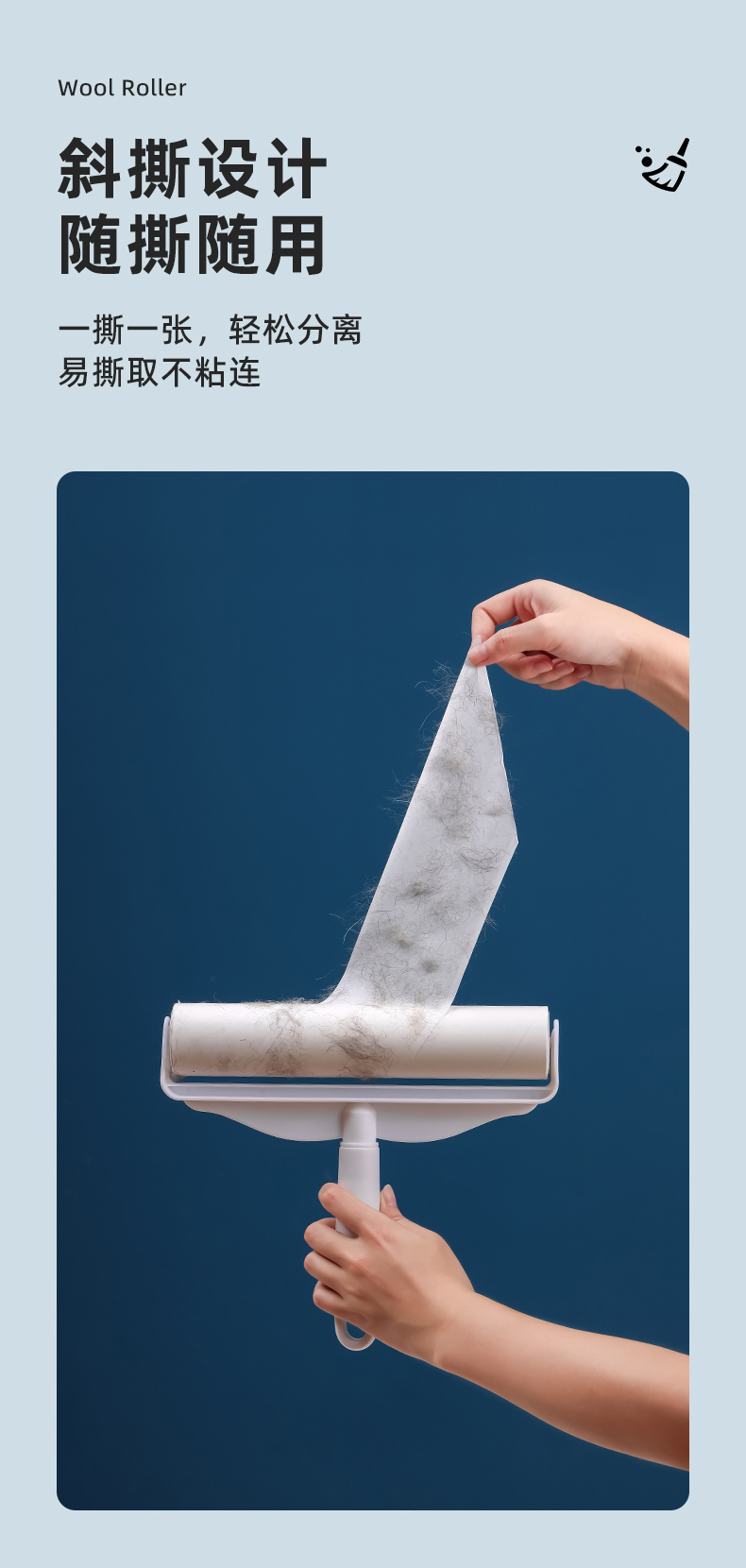 D 滚筒粘毛器替换纸卷 2枚入(55*2撕) 滚筒长杆短手柄粘毛器衣物床单被褥地毯多用可撕可替换纸卷强力粘毛神器