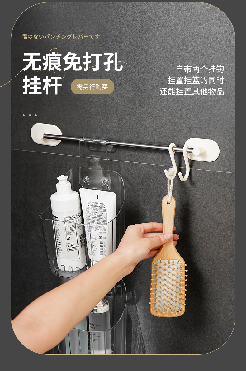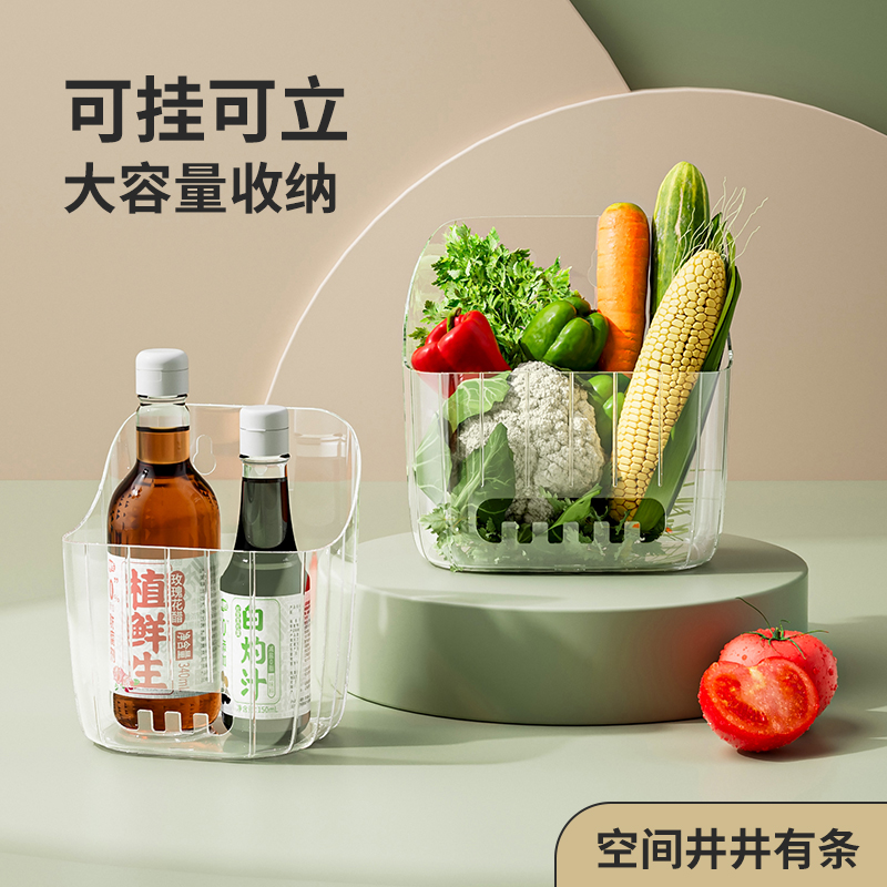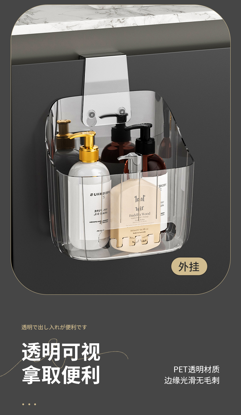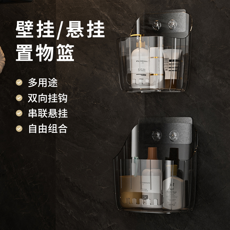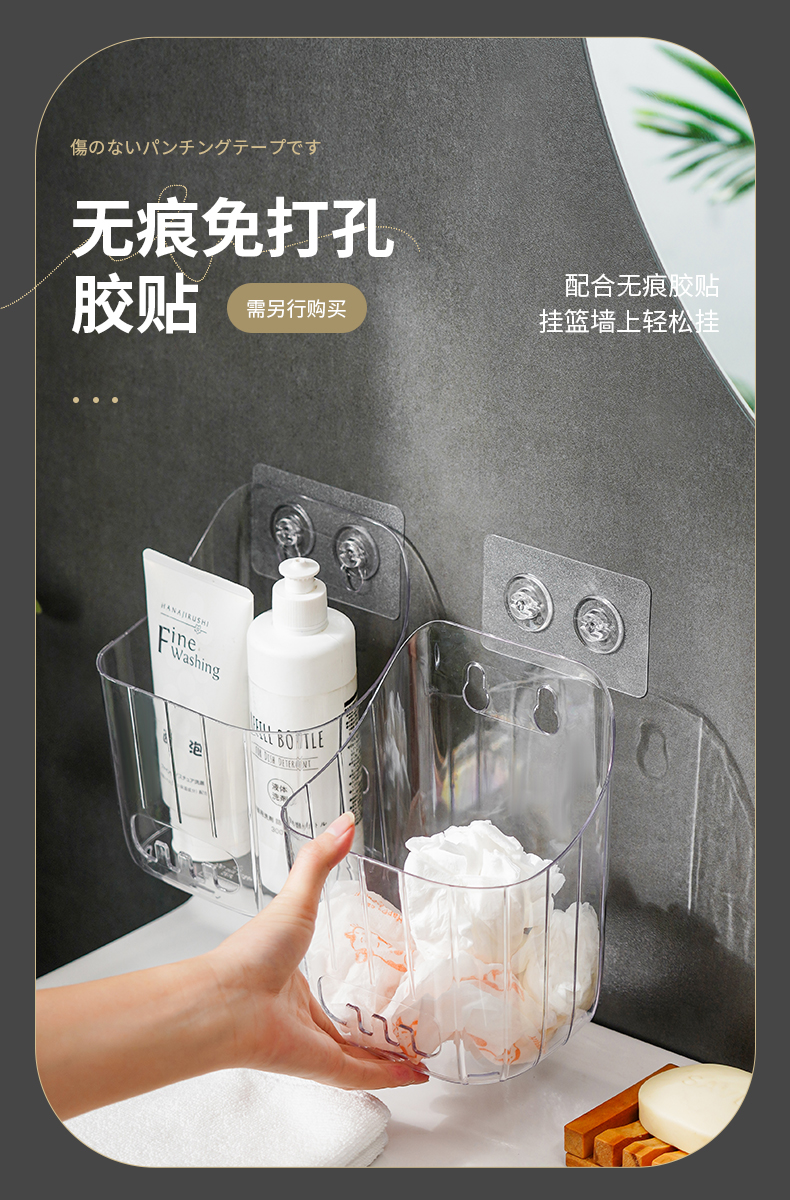 D厨卫挂篮 大号(含挂钩) 厨房浴室挂篮调料收纳洗漱筐家用篮子塑料杂物透明整理置物架
