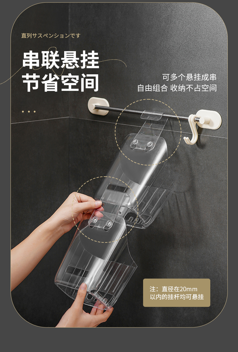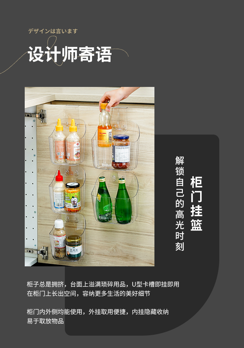 D厨卫挂篮专属背胶 20只装 厨房浴室挂篮调料收纳洗漱筐家用篮子塑料杂物透明整理置物架