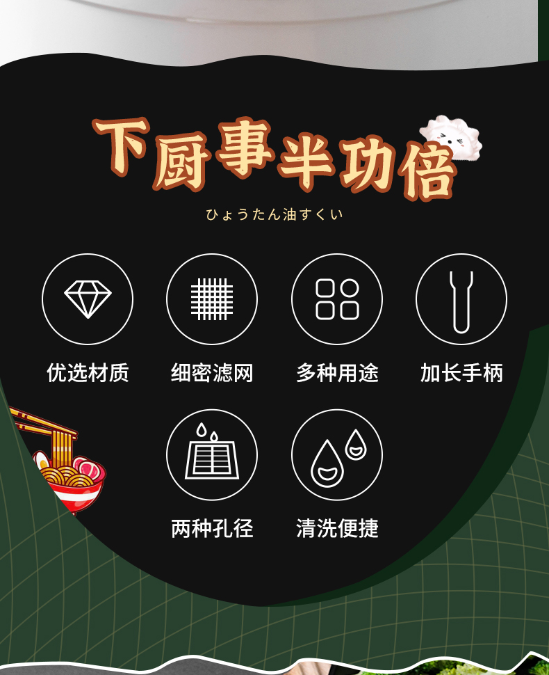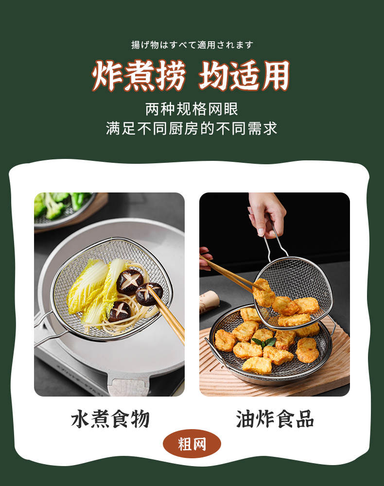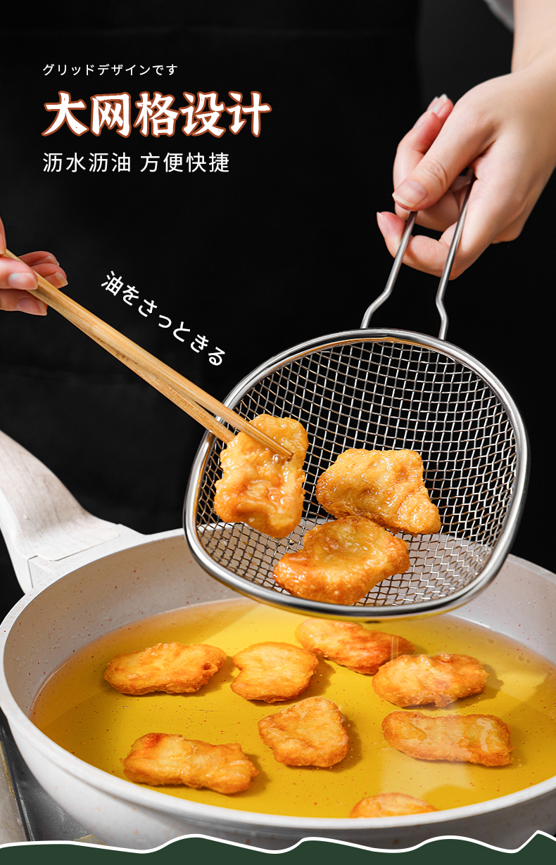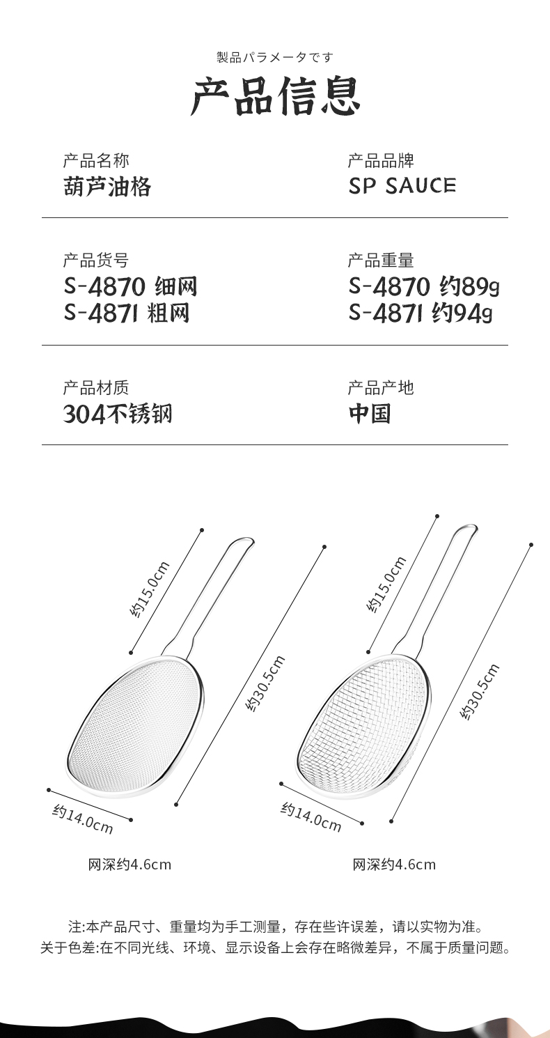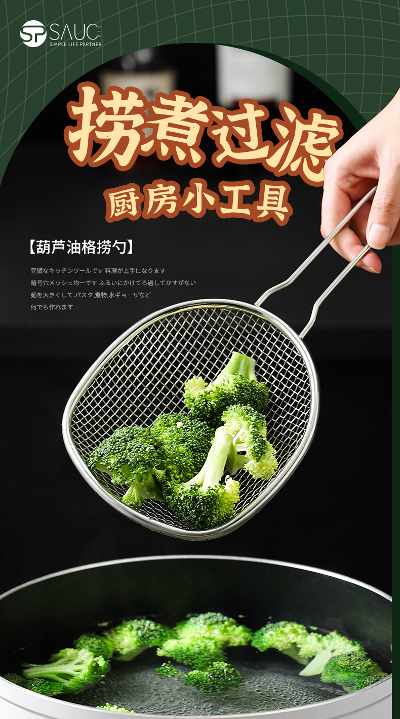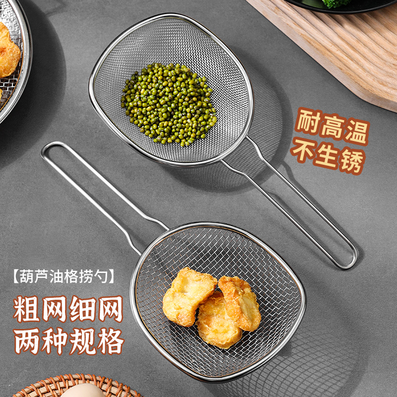 粗网葫芦油格 厨房304不锈钢漏网大笊篱家用漏勺沥水捞面勺捞勺滤勺