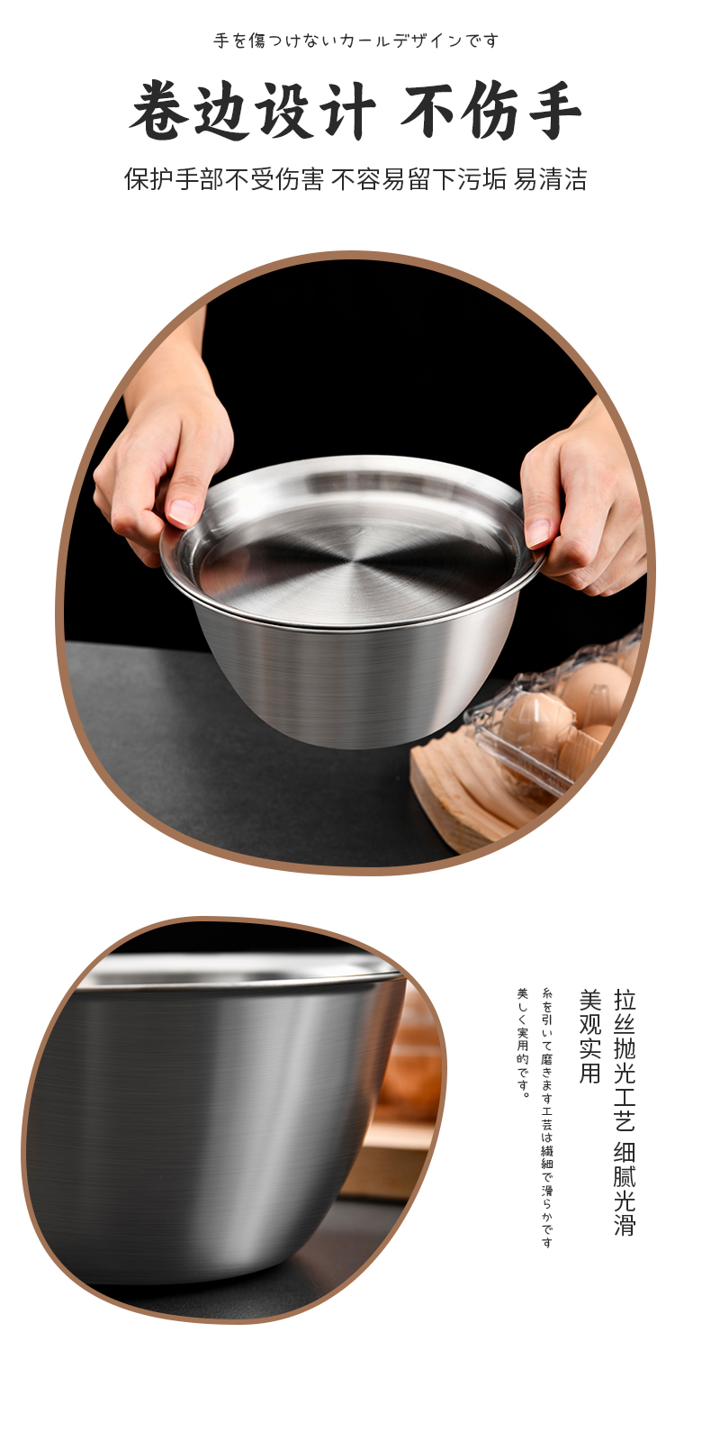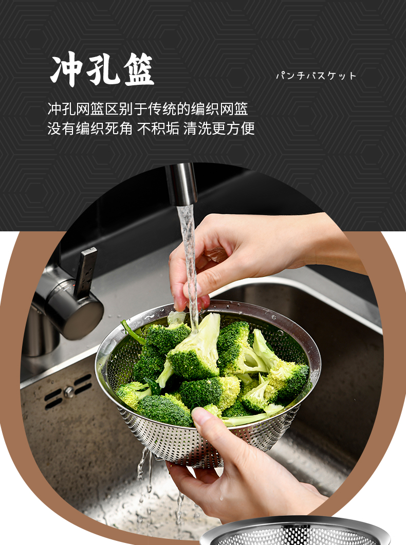 不锈钢加深打蛋盆18cm 厨房304不锈钢冲孔篮滤网洗菜洗水果保鲜不锈钢洗菜盆沥水篮家用多功能料理盆打蛋盆