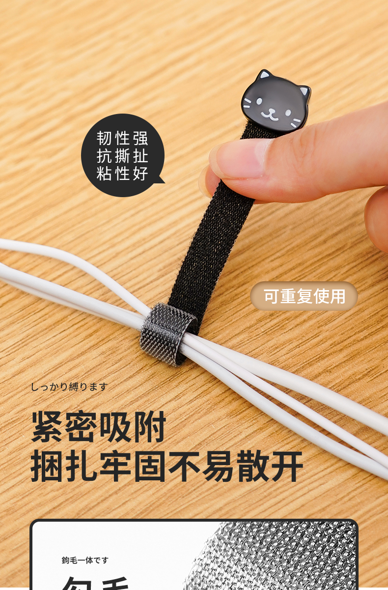 立体猫咪理线器(四枚入) 数据线收纳绑带魔术贴扎带理线器电脑束线带整理电线走线固定器