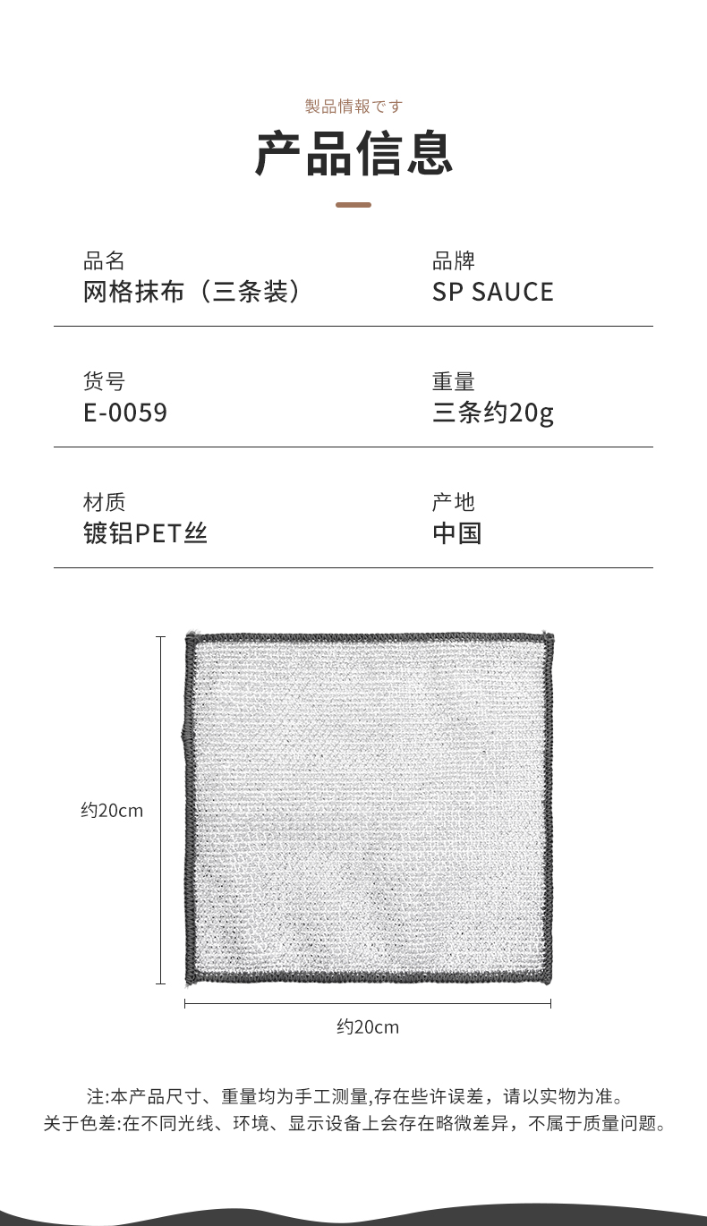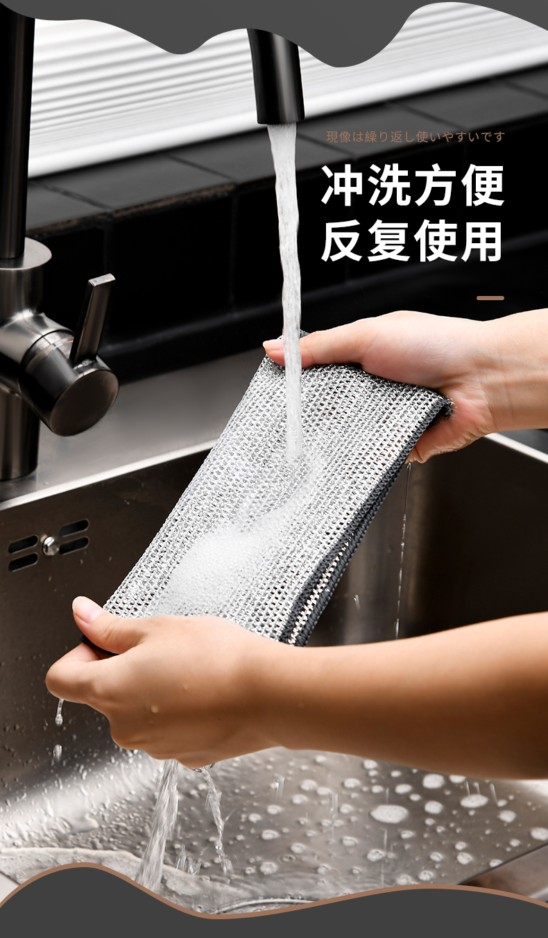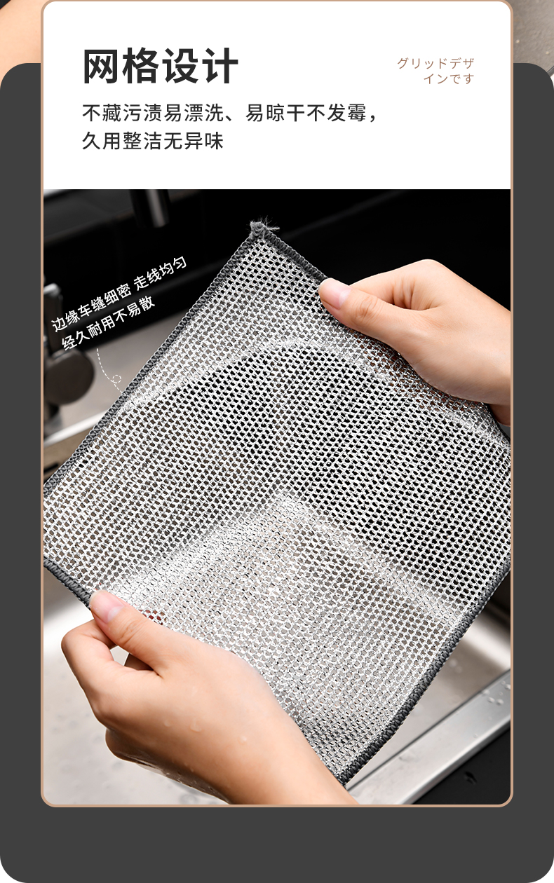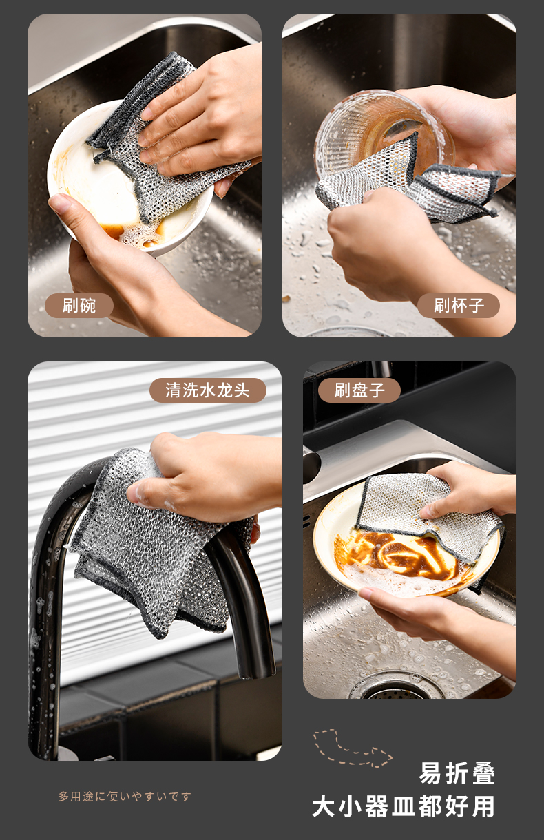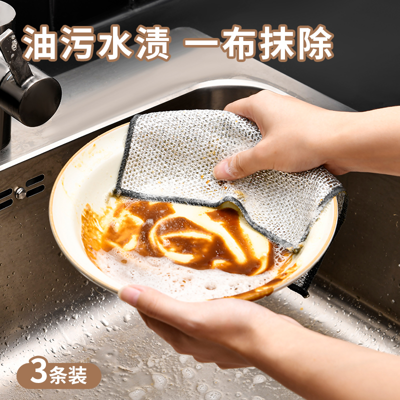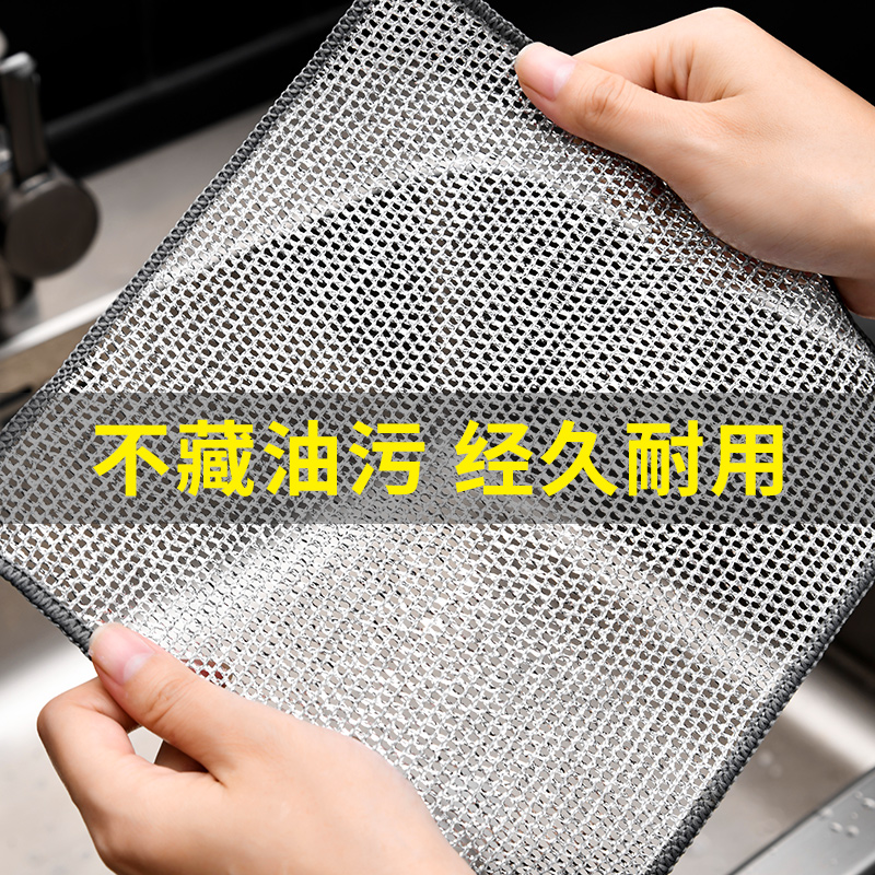 D网格抹布(三条装) 金属丝洗碗布日用清洁布网格不沾油抹布厨房灶台洗碗洗锅清洗布去污