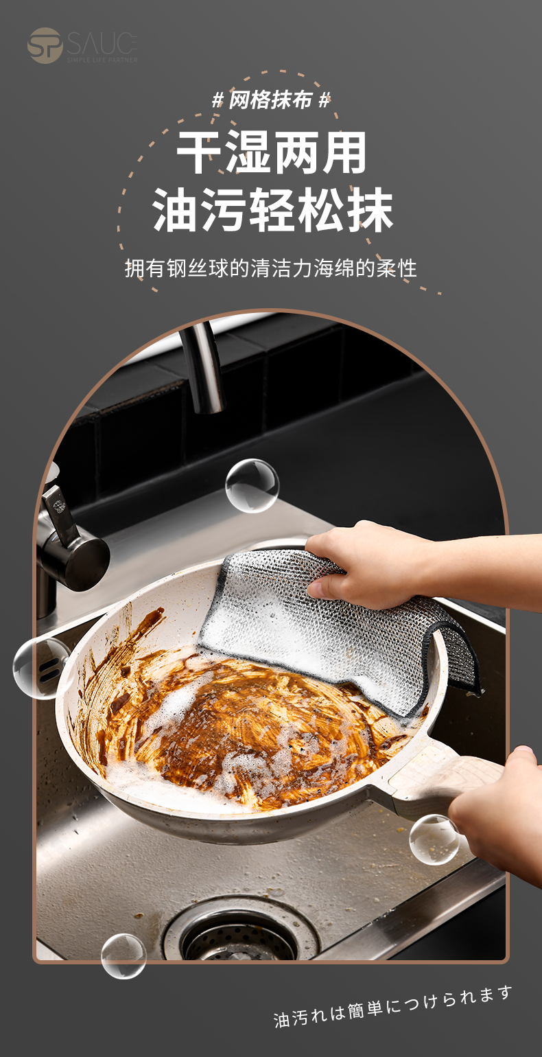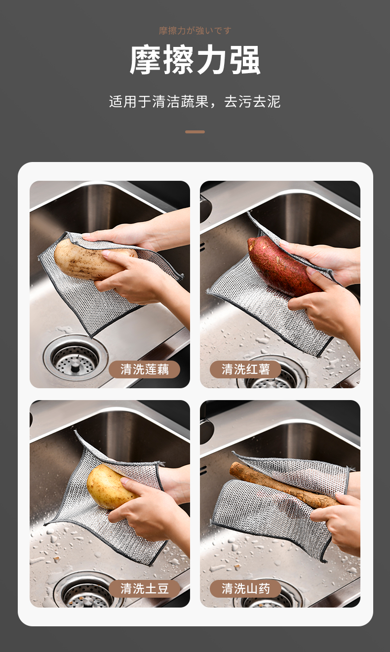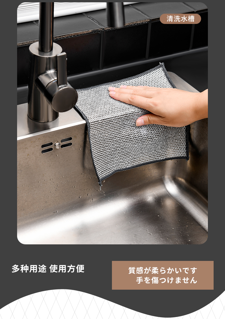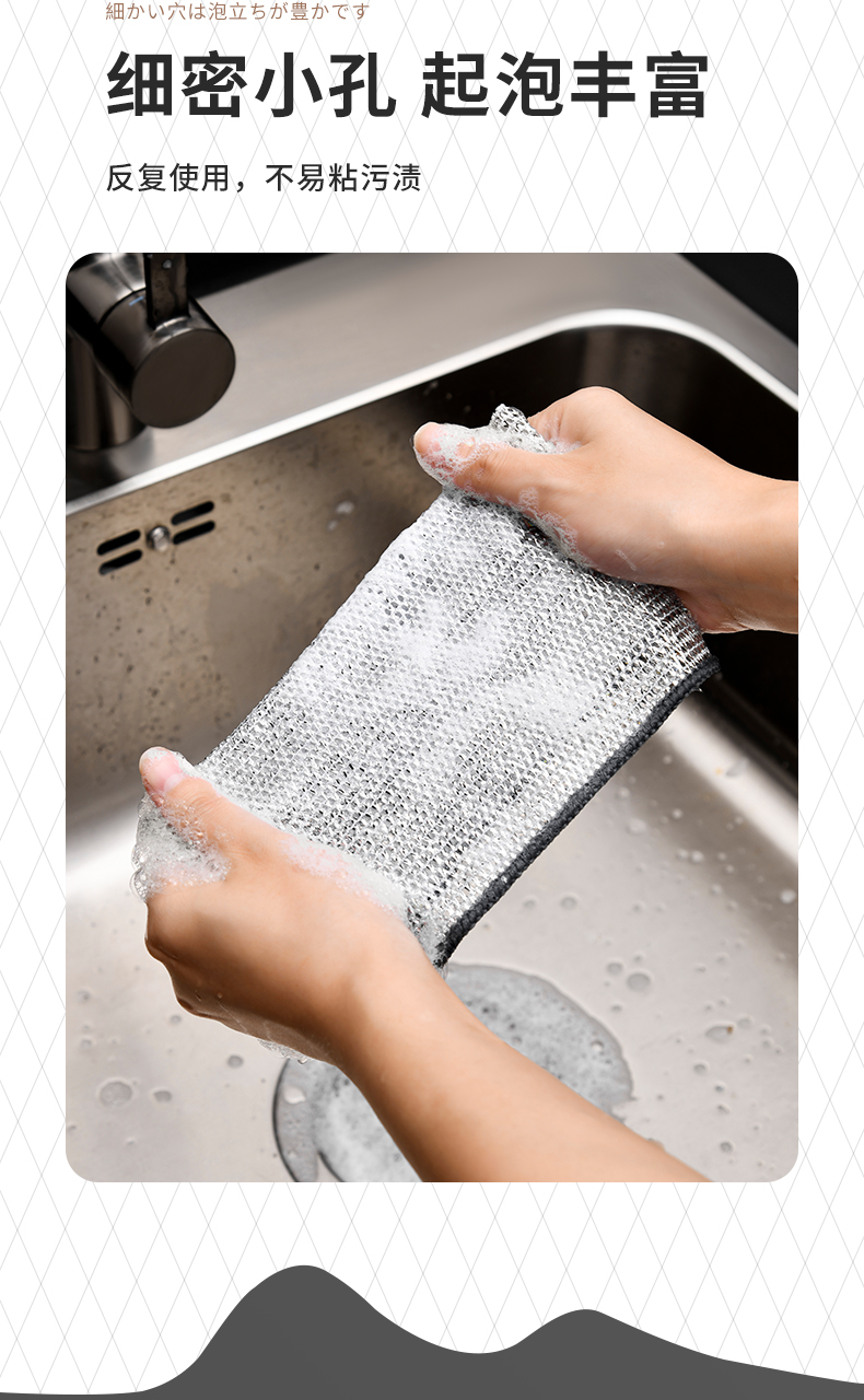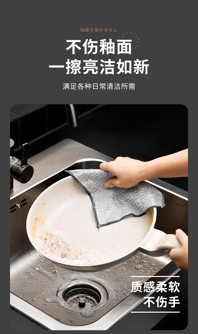 D网格抹布(三条装) 金属丝洗碗布日用清洁布网格不沾油抹布厨房灶台洗碗洗锅清洗布去污