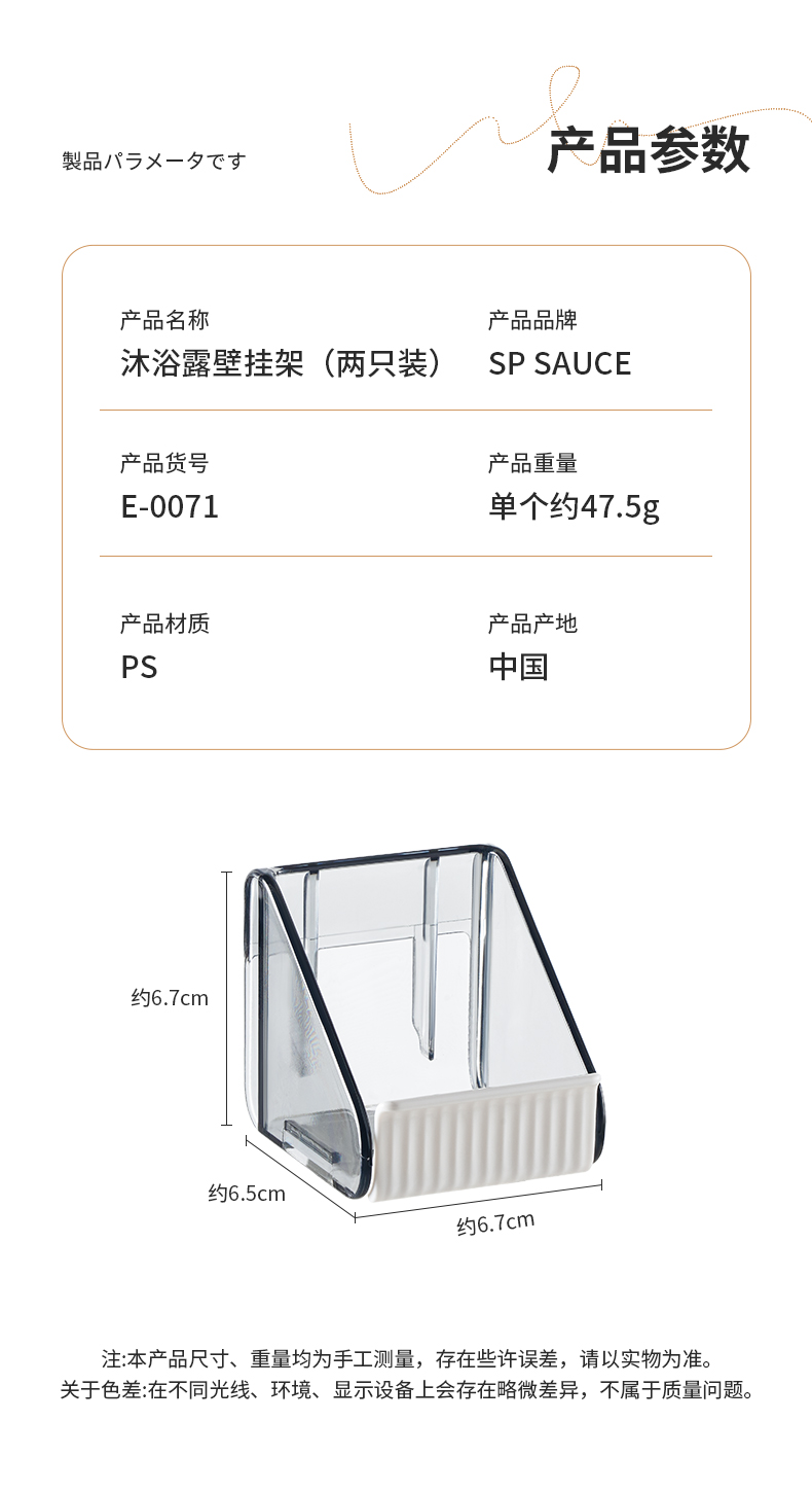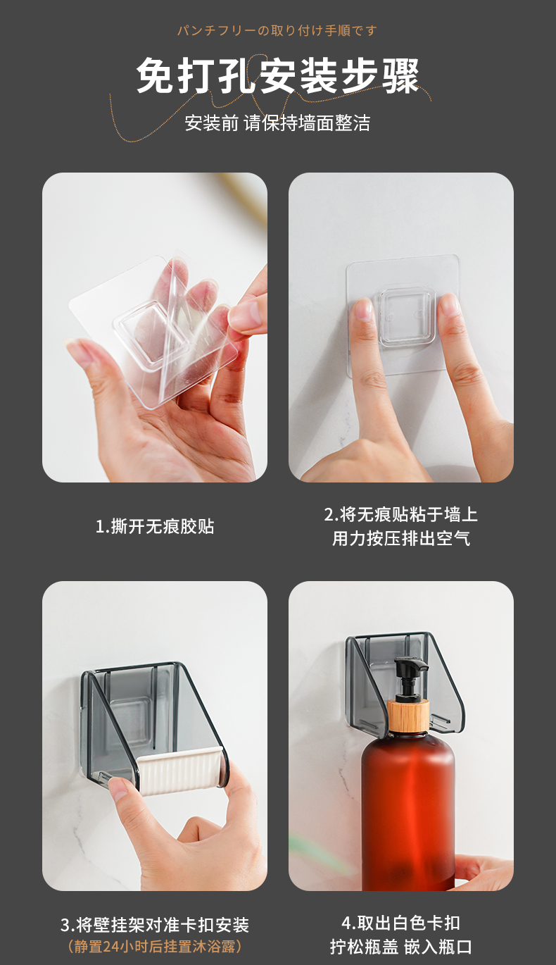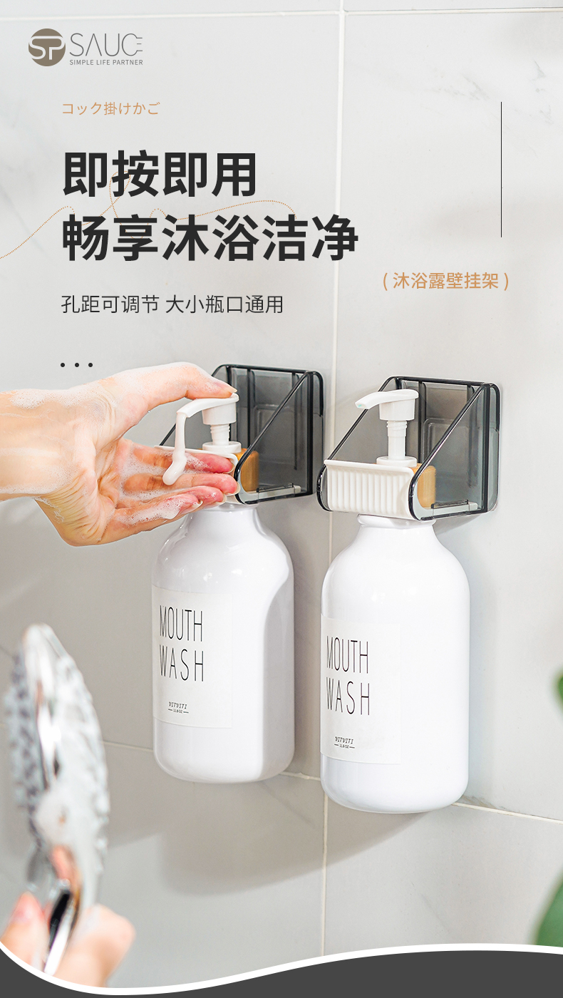 沐浴露壁挂架(两只装) 沐浴露置物架免打孔洗发水支架浴室洗洁精挂架卫生间洗手液挂壁器
