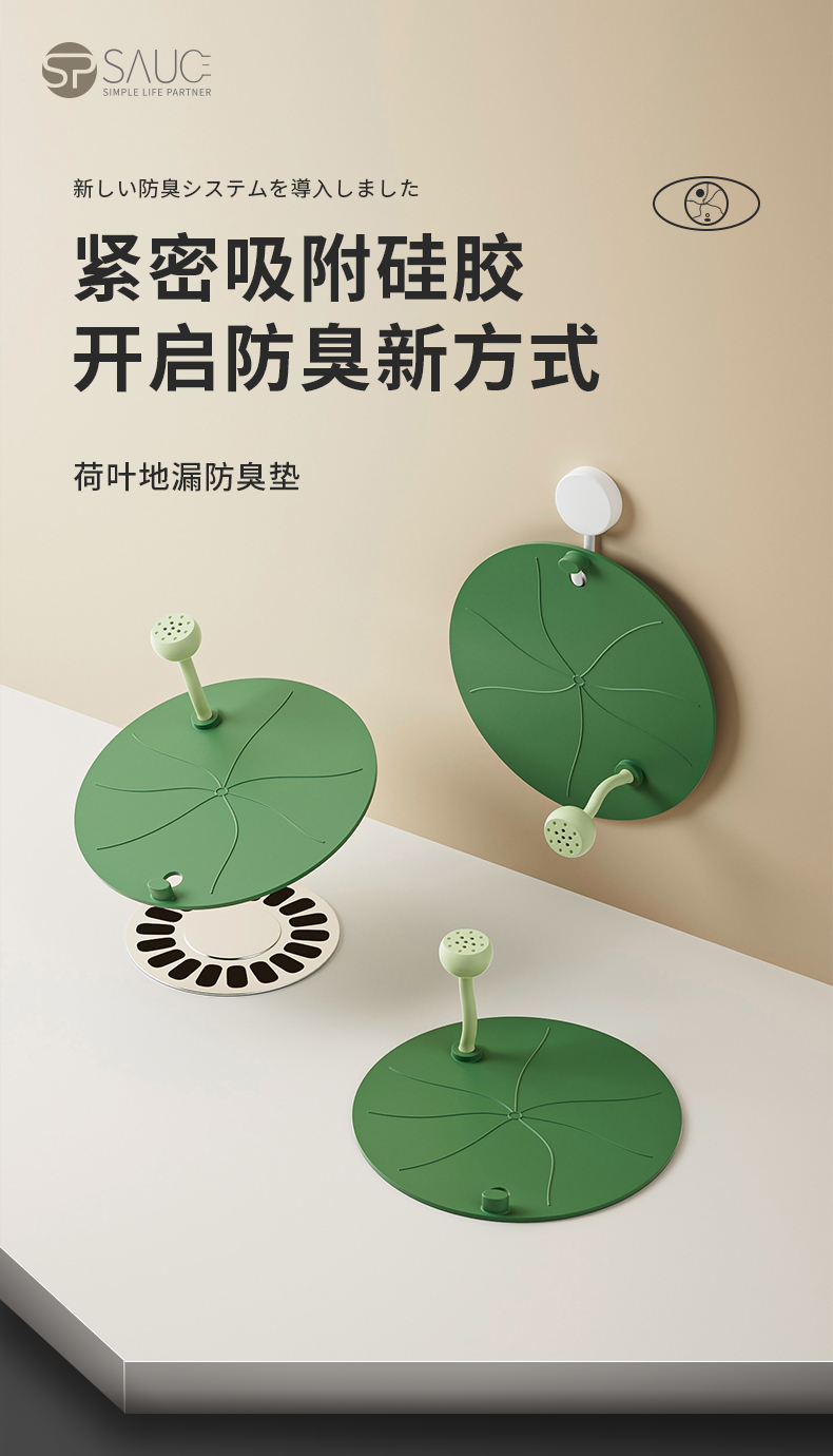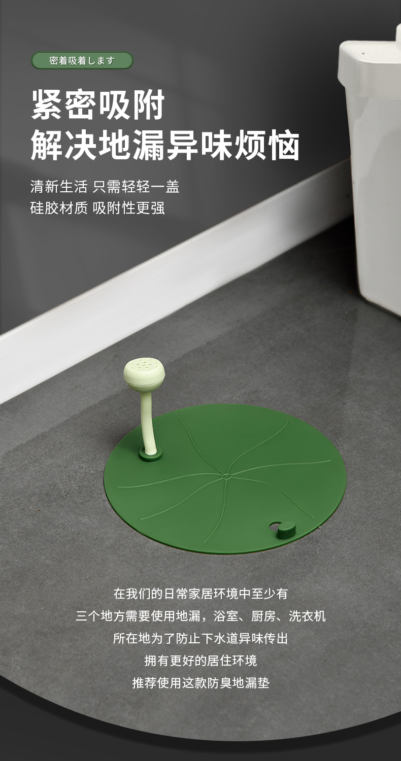 荷叶地漏防臭垫 地漏防臭器硅胶垫下水道堵口防返臭卫生间反味密封盖厕所防虫神器