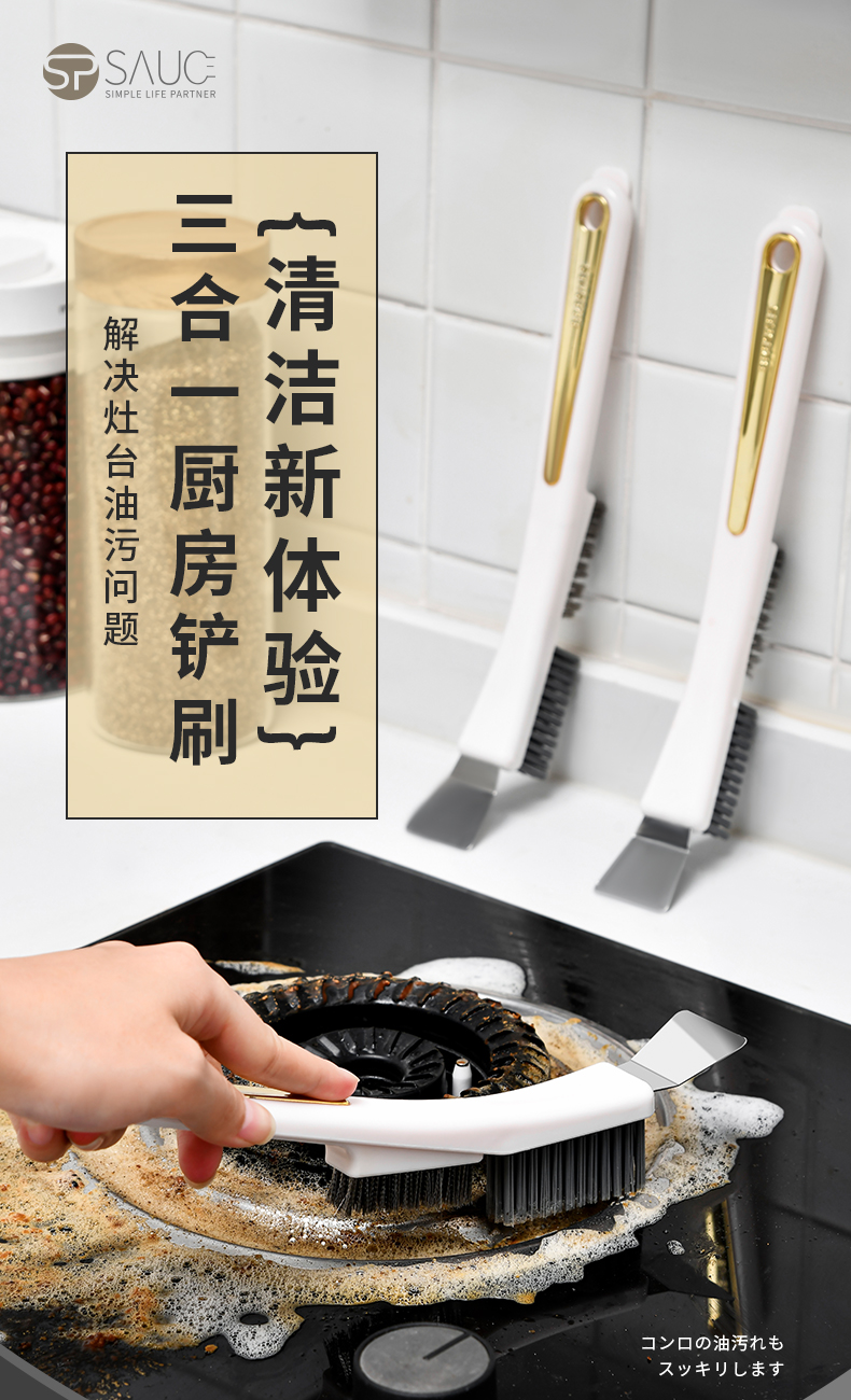 D 多功能灶台铲刷 钢丝刷厨房铲刷铜丝刷煤气灶清洁刷灶台刷浴室边角万能小钢刷子
