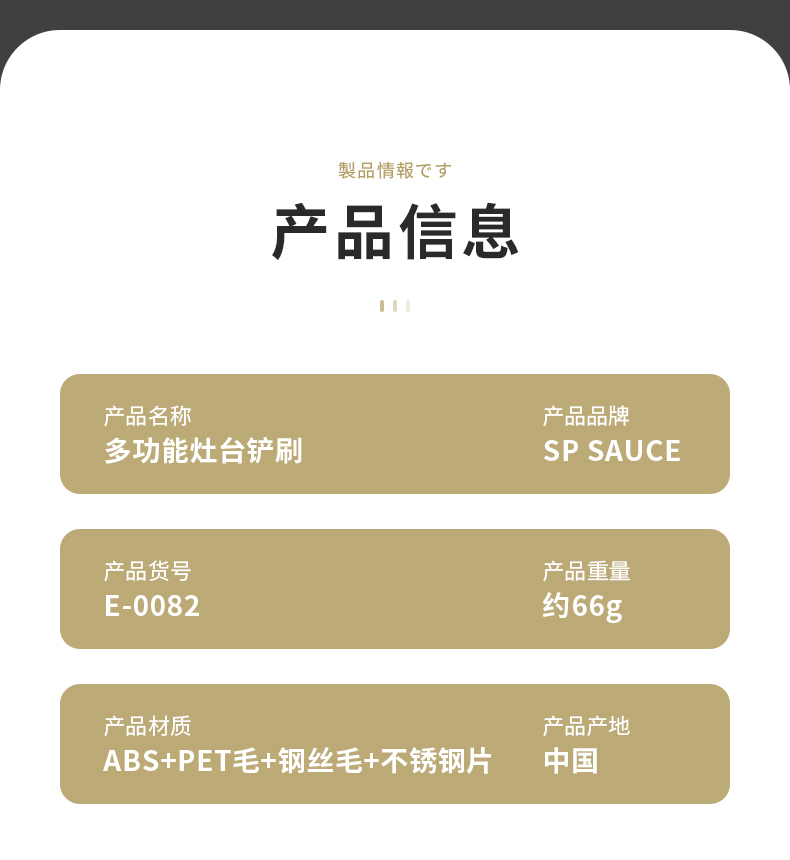 产品材质ABS+PET毛+钢丝毛+不锈钢片