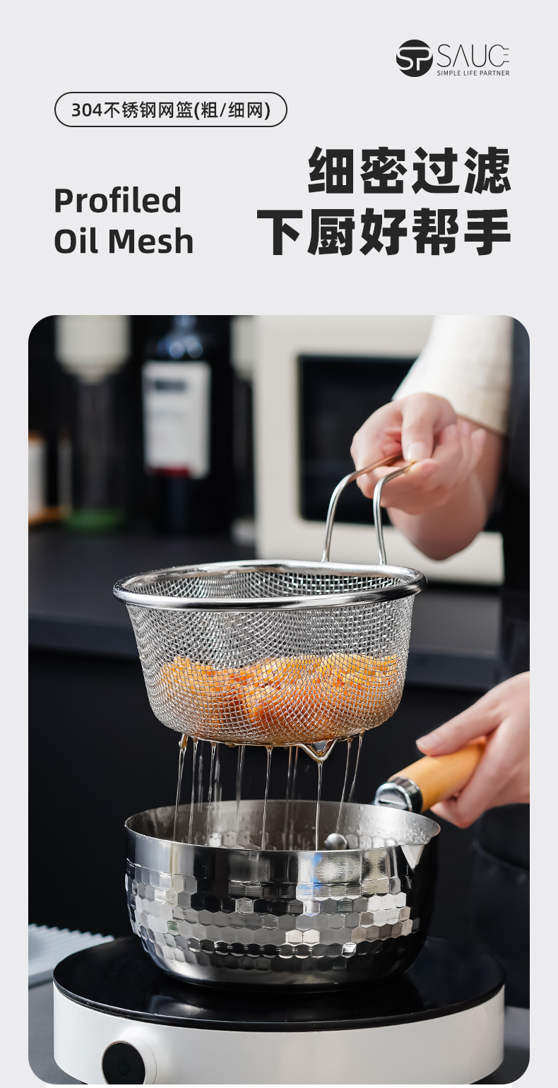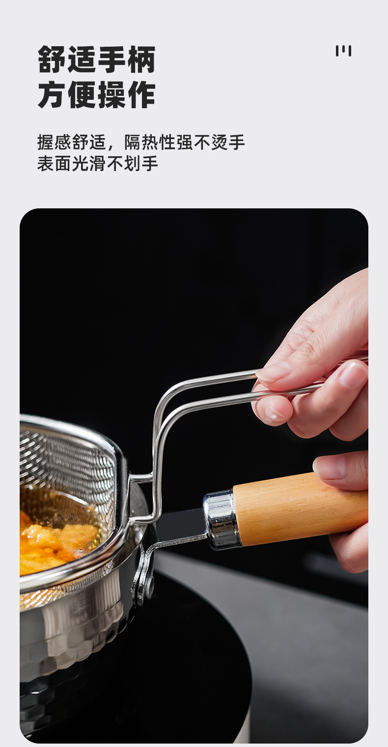 不锈钢网篮21cm 不锈钢油格家用火锅漏勺厨房漏网过滤网多功能捞面条勺油炸漏筛