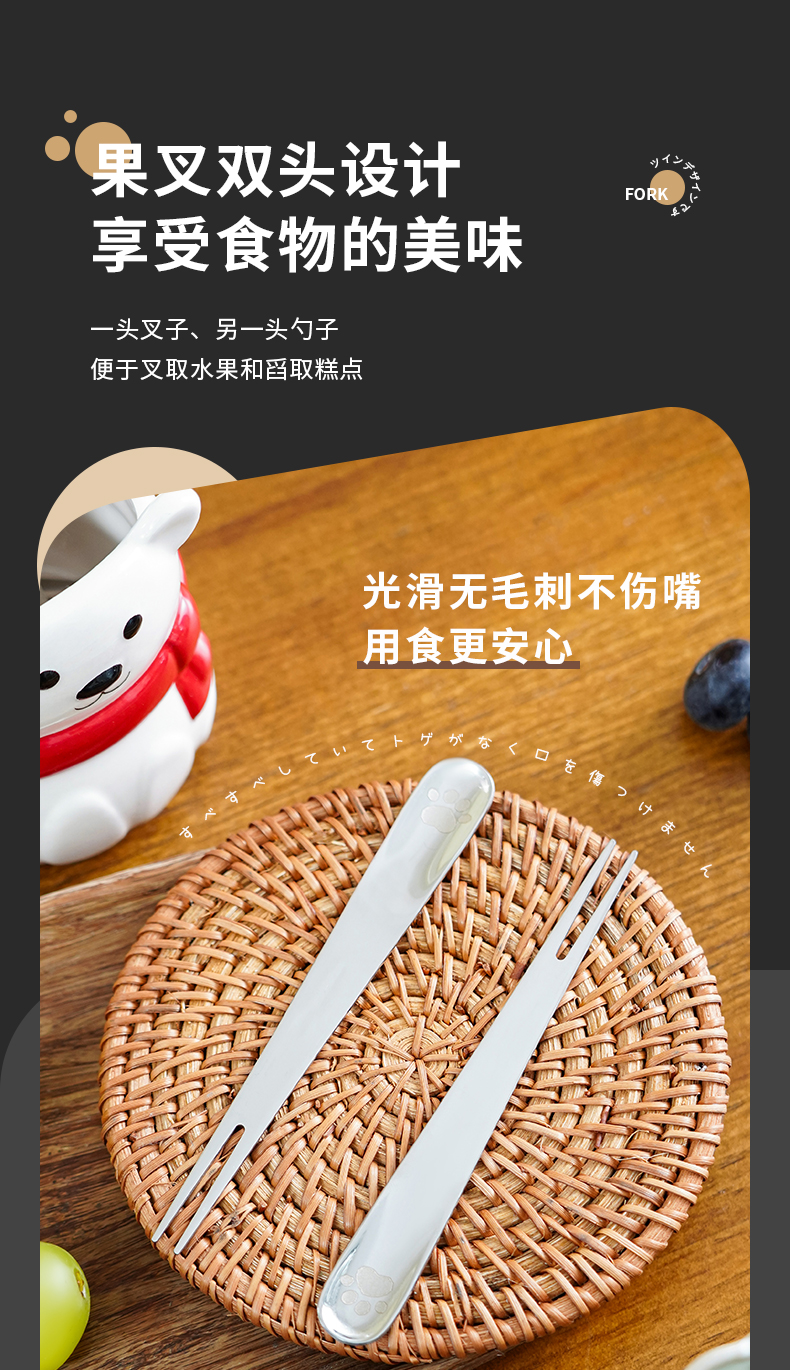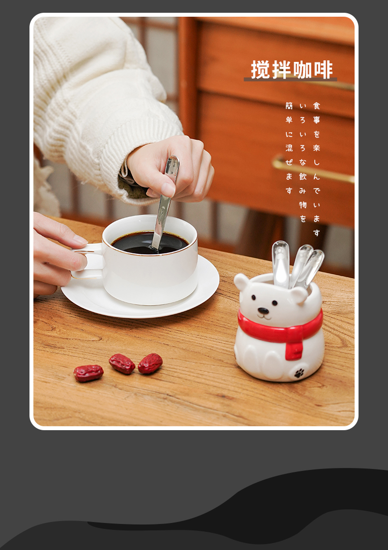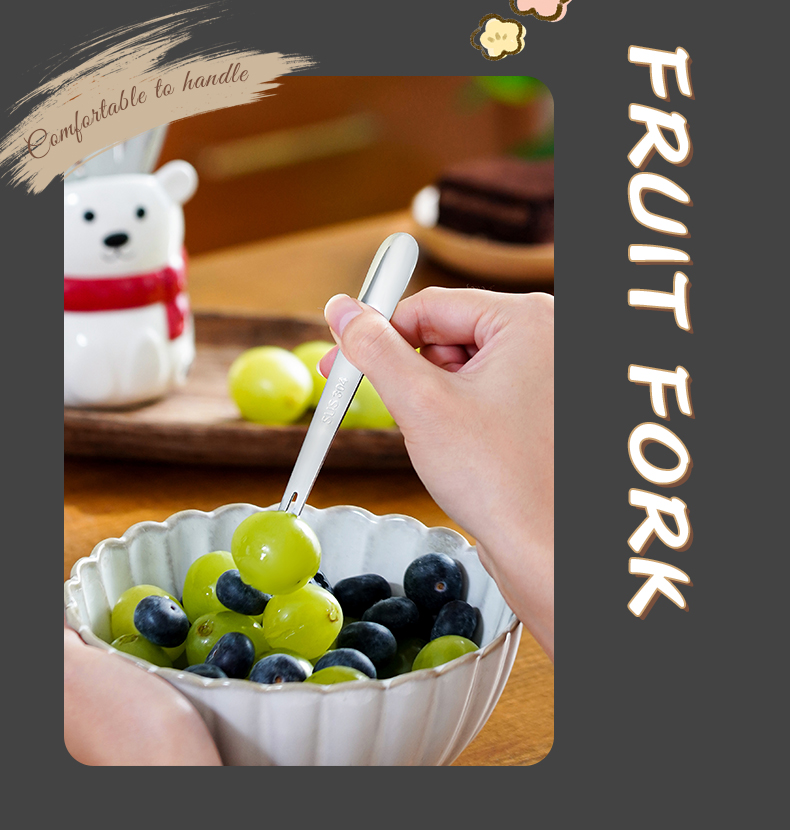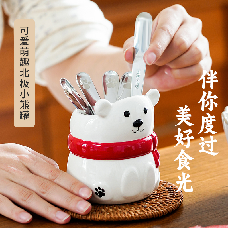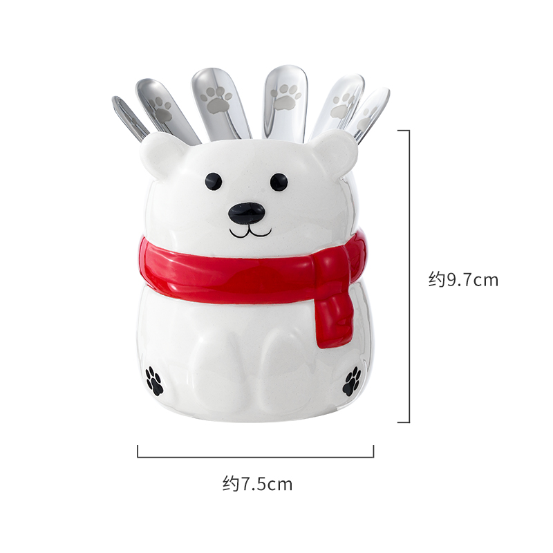 304小熊水果叉套装(6支装) 304水果叉子套装甜品糕点下午茶勺子聚会聚餐水果签小熊陶瓷罐子