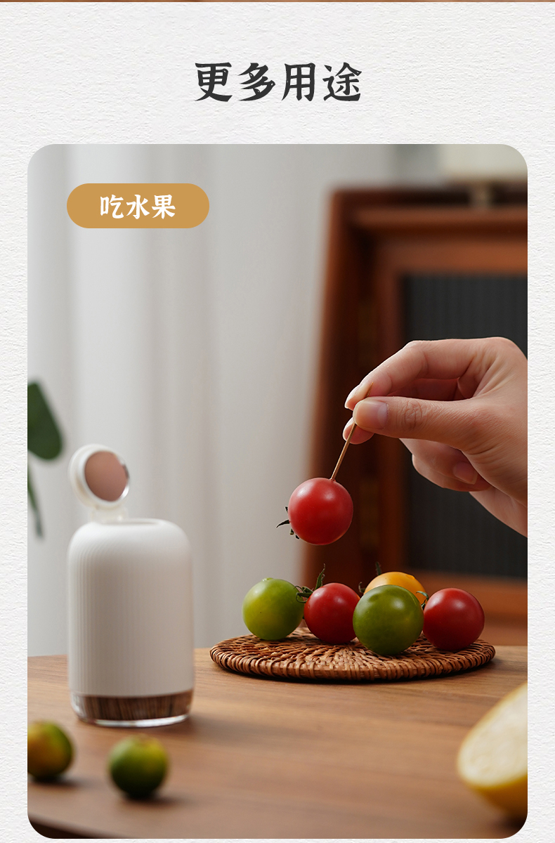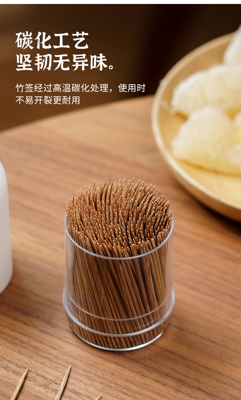 小圆镜碳化牙签(400支装) 创意牙签罐碳化竹牙签客厅家用水果签可爱带镜子牙签盒牙签收纳盒