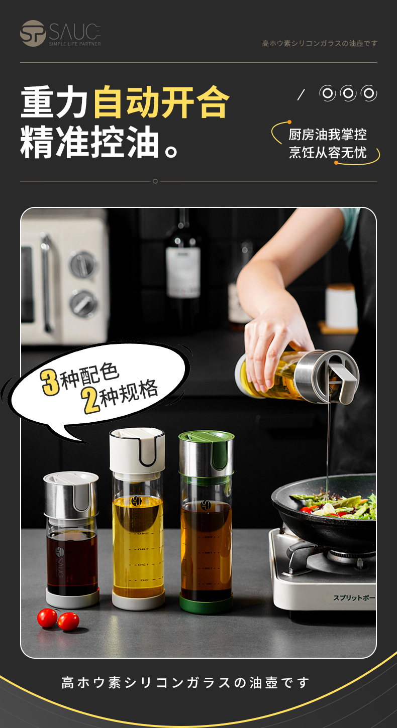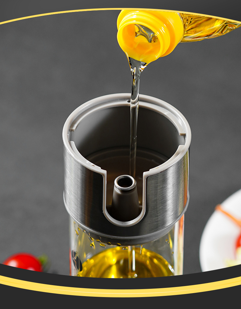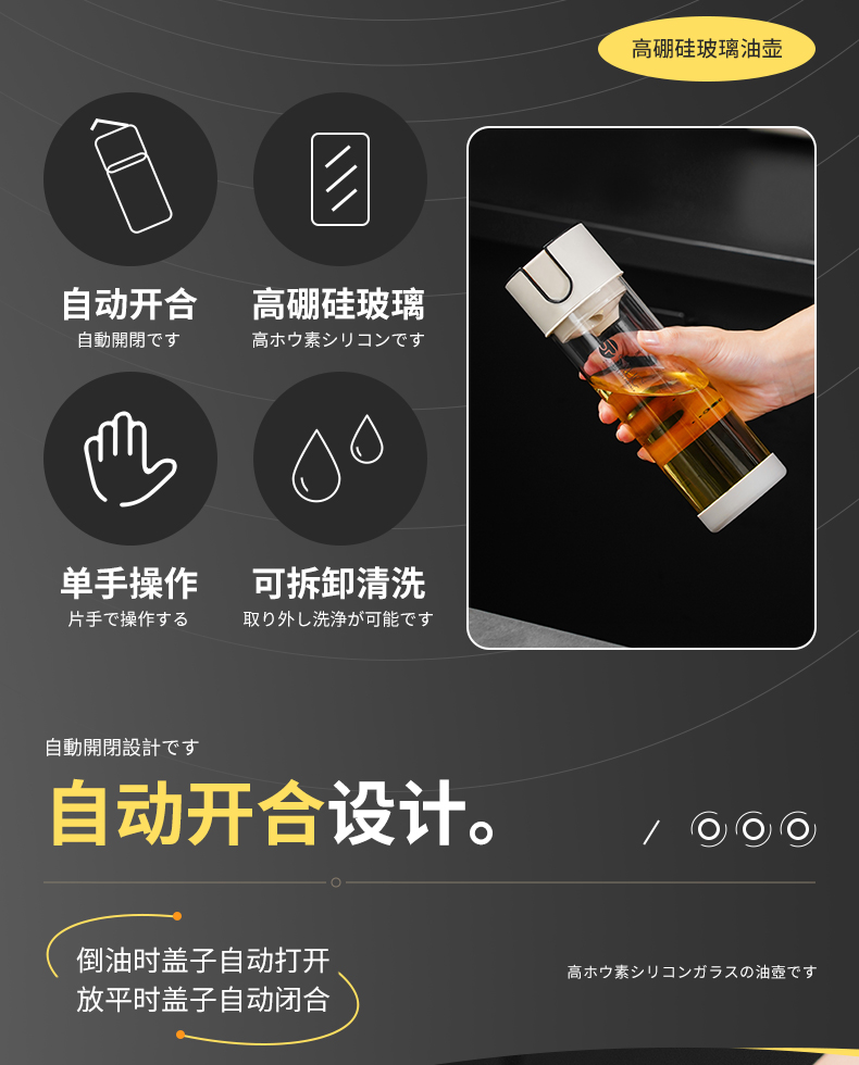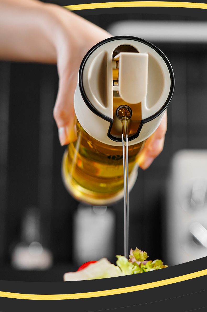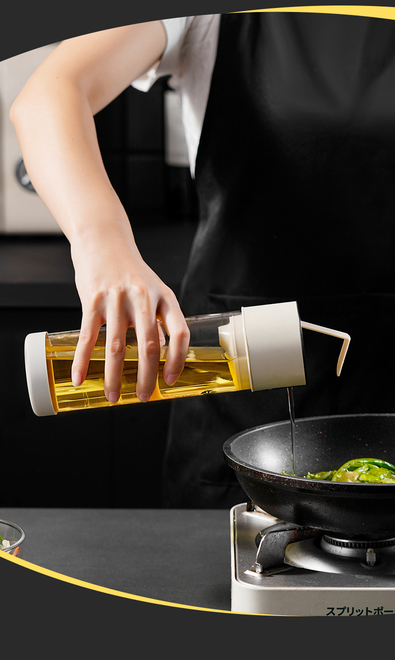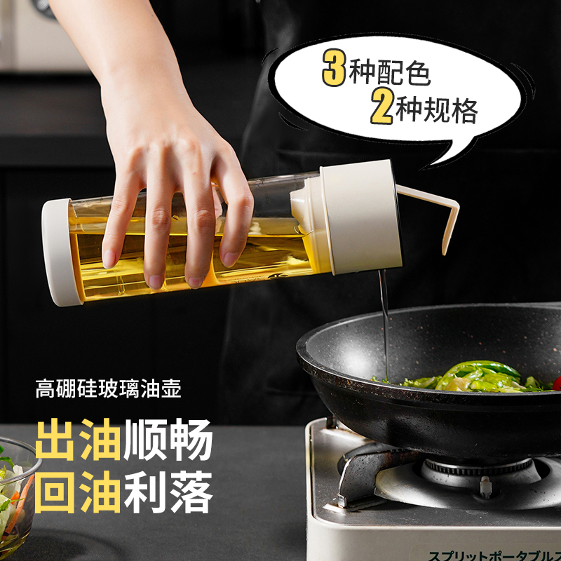 高硼硅玻璃油壶 270ml(米色) 高硼硅玻璃自动开盖闭盖油壶耐高温大容量防漏防溢出食用油壶料酒醋酱油瓶