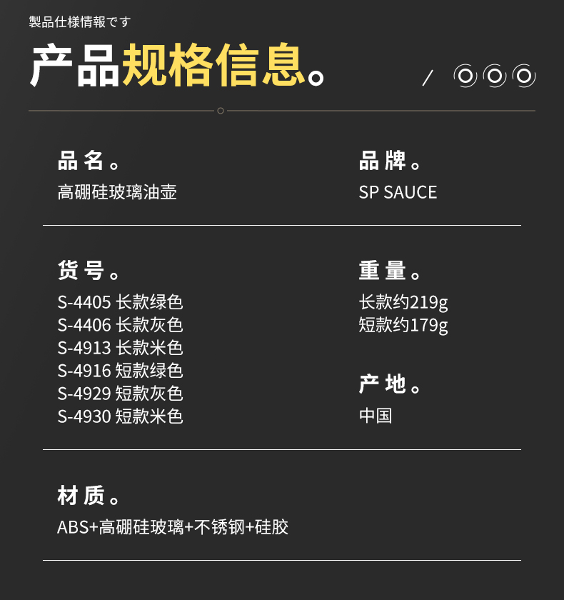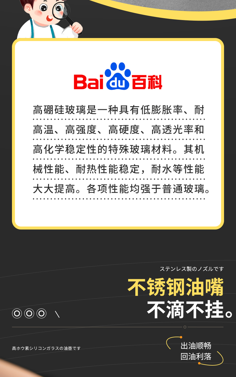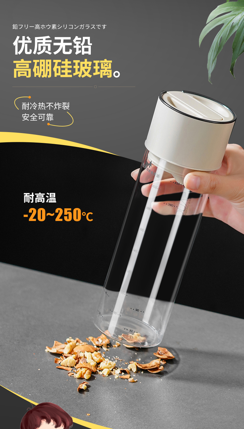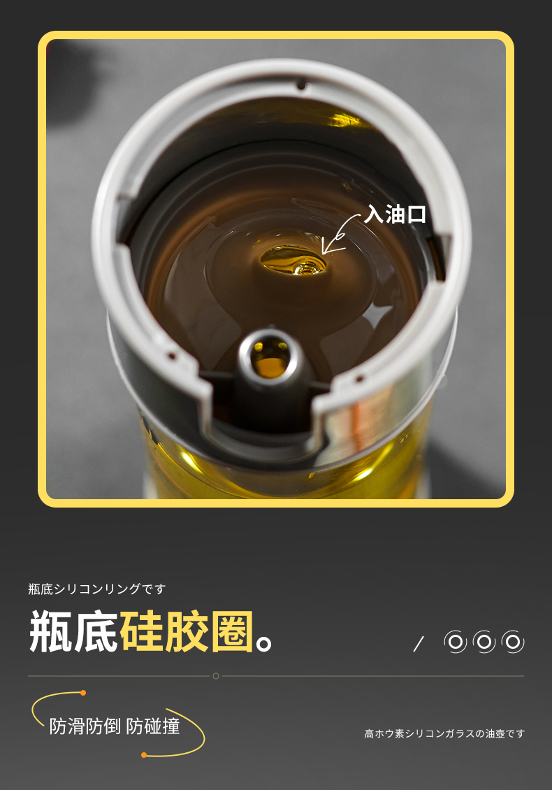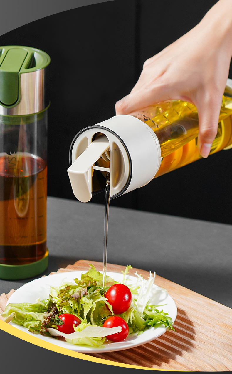 高硼硅玻璃油壶 270ml(米色) 高硼硅玻璃自动开盖闭盖油壶耐高温大容量防漏防溢出食用油壶料酒醋酱油瓶