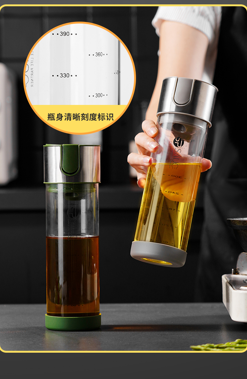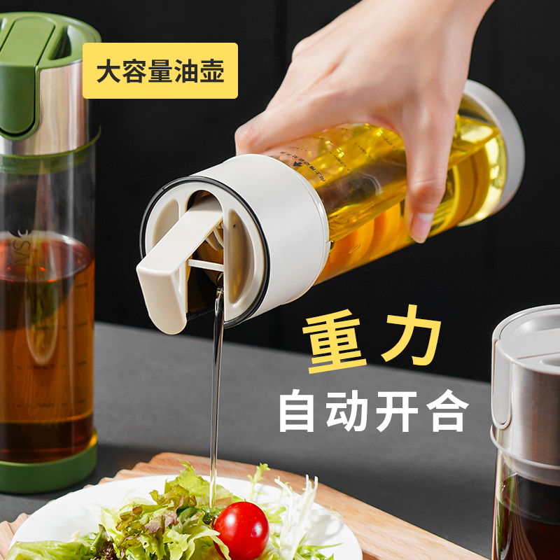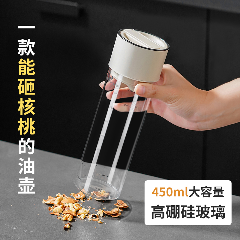 D 高硼硅玻璃油壶 450ml(米色) 高硼硅玻璃自动开盖闭盖油壶耐高温大容量防漏防溢出食用油壶料酒醋酱油