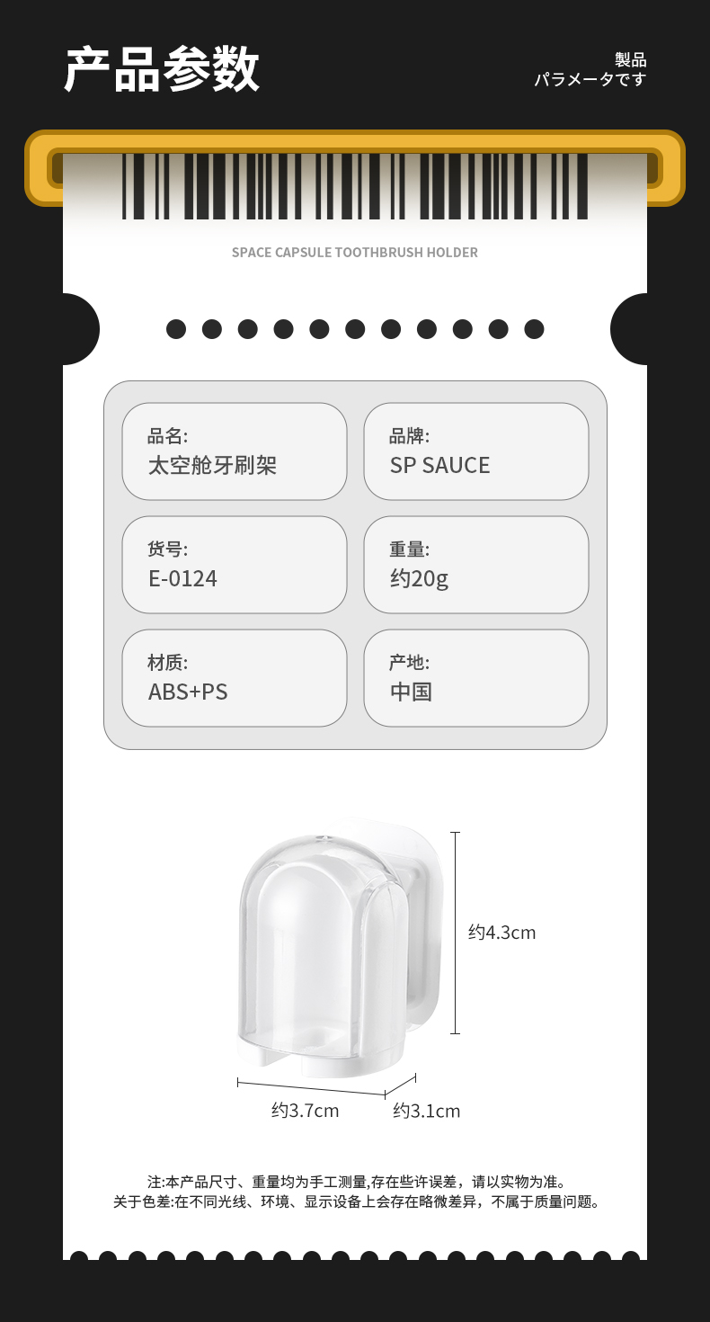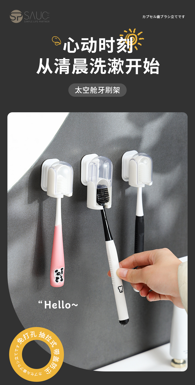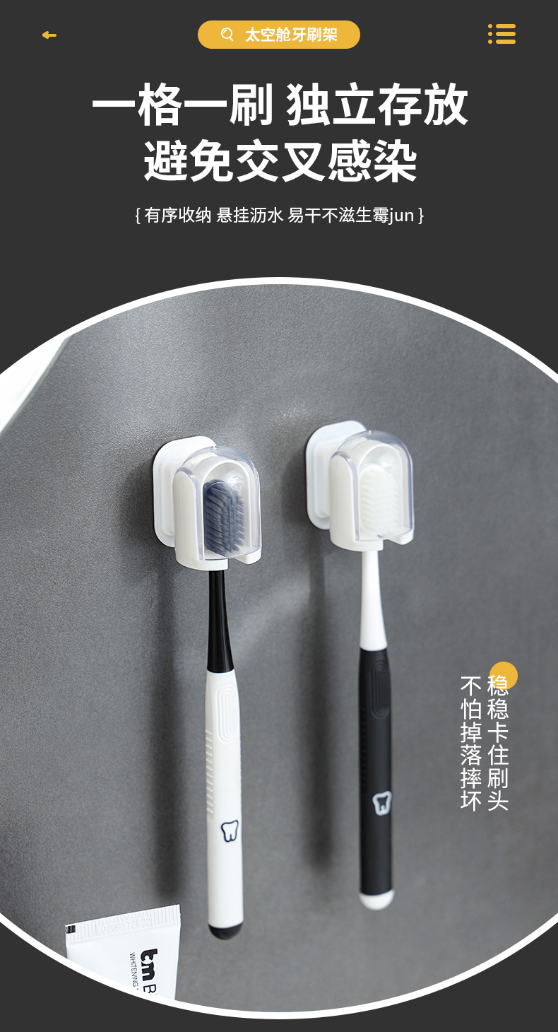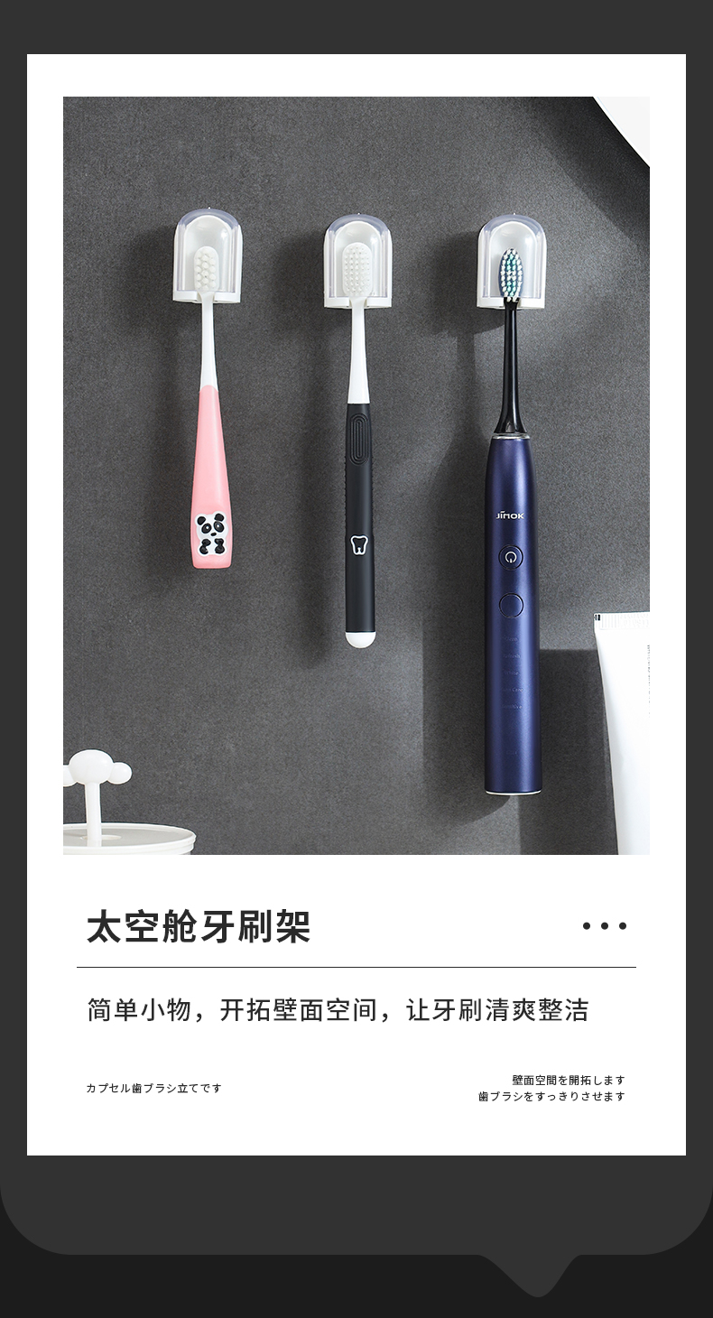 D 太空舱牙刷架 防尘带盖牙刷置物架免打孔收纳架壁挂式简约卫生间牙刷挂架