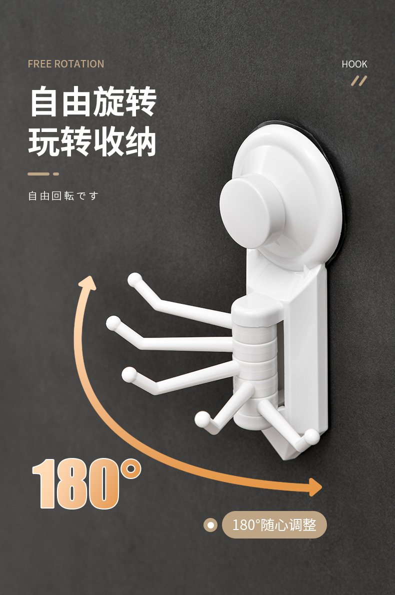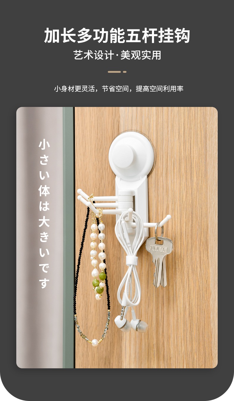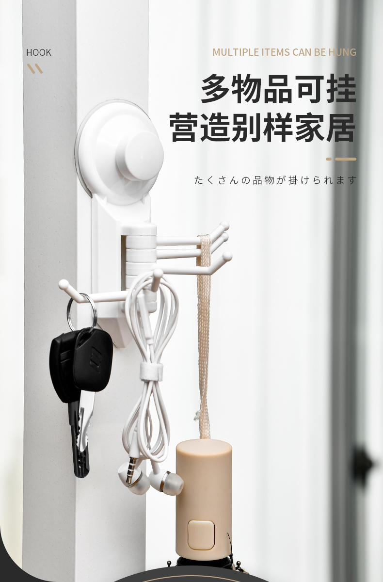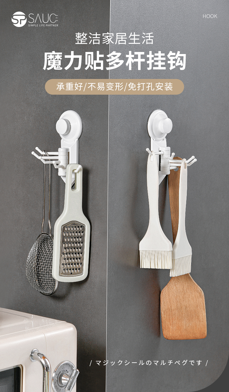 D 魔力贴多杆挂钩 免打孔挂钩无痕粘钩简约可旋转钩子家用多功能贴钩分支挂钩