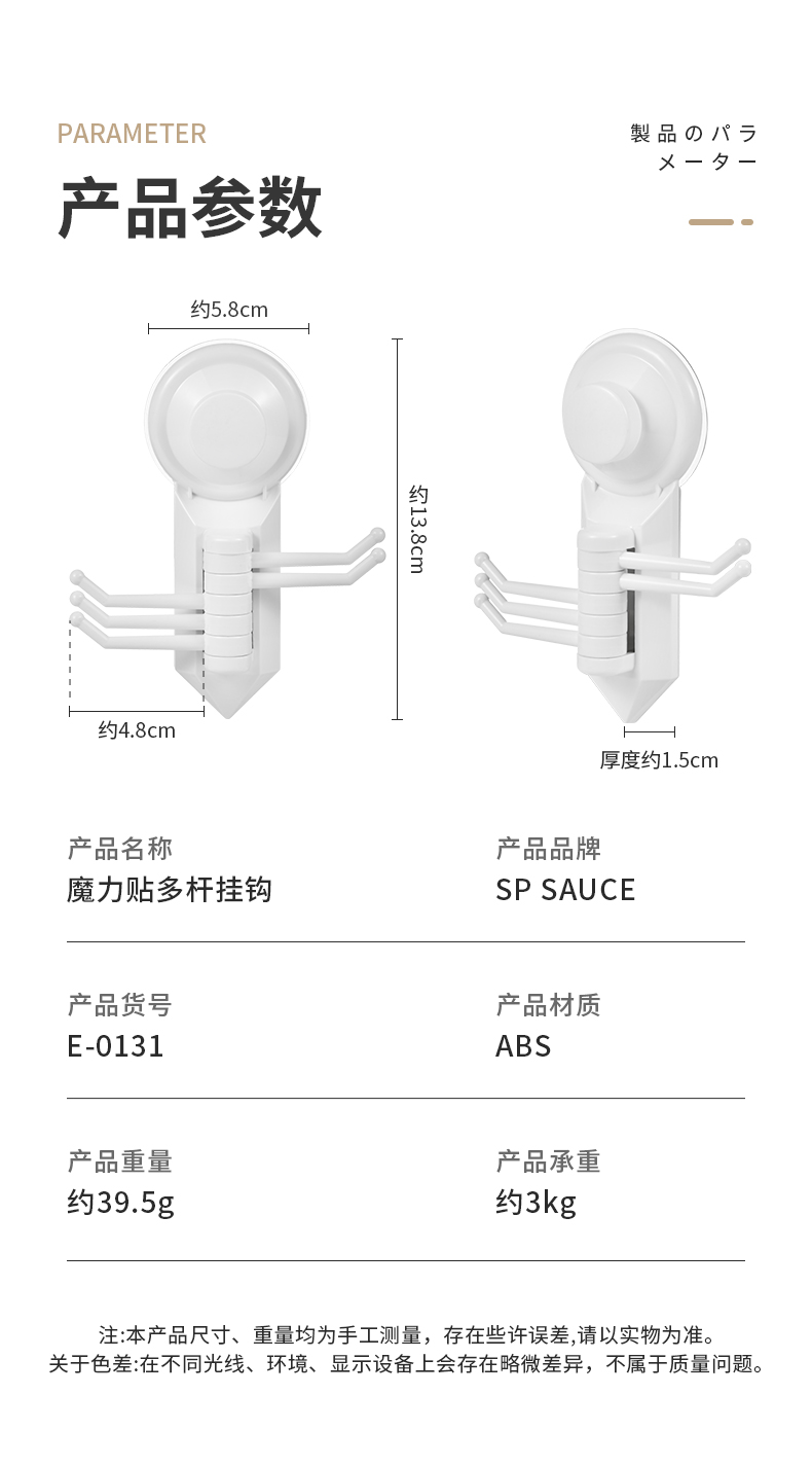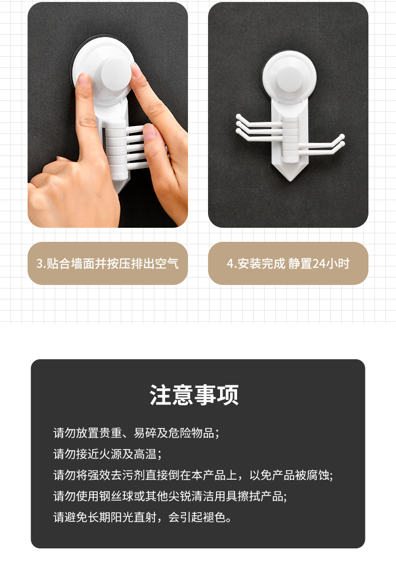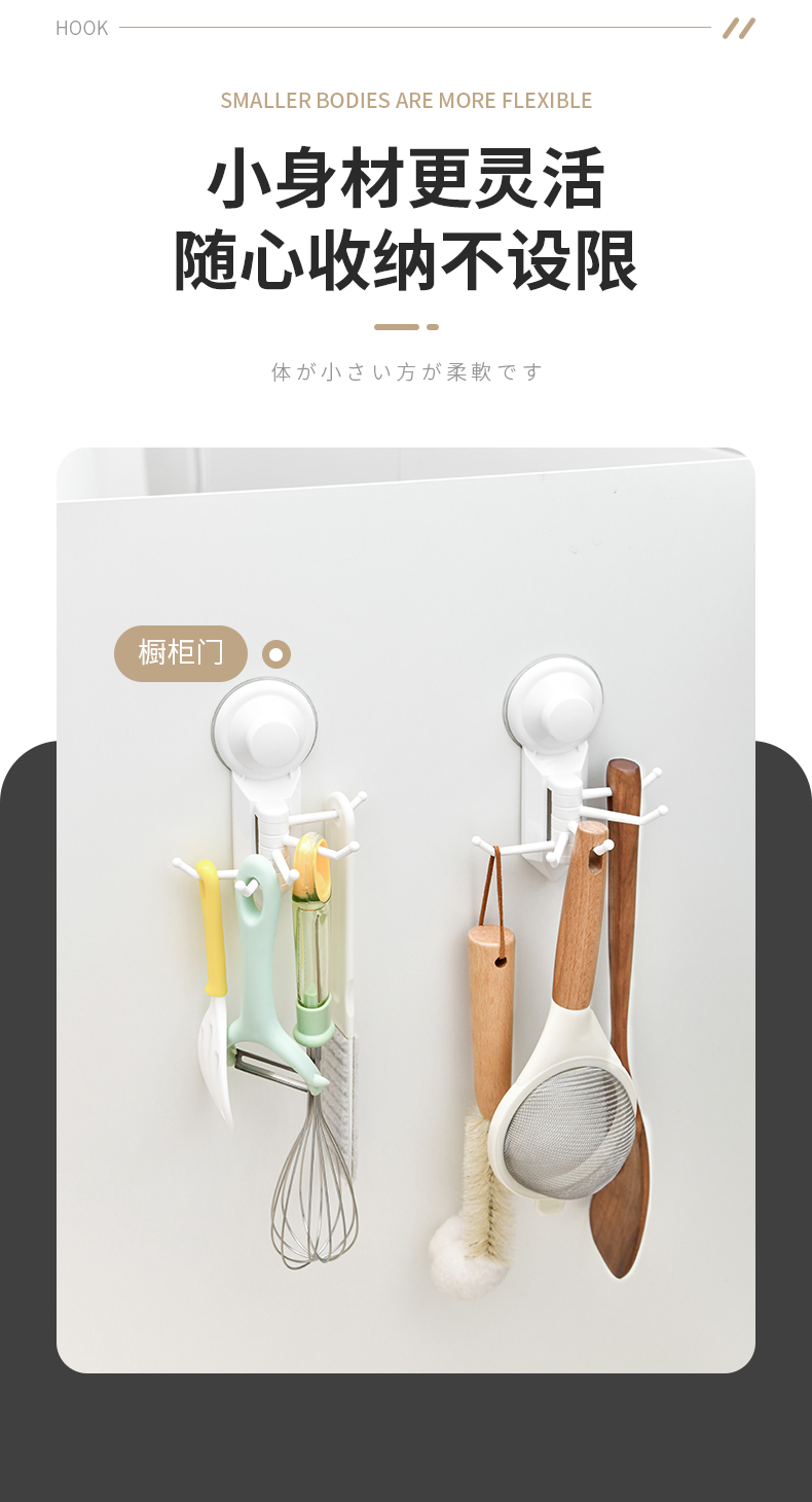 D 魔力贴多杆挂钩 免打孔挂钩无痕粘钩简约可旋转钩子家用多功能贴钩分支挂钩