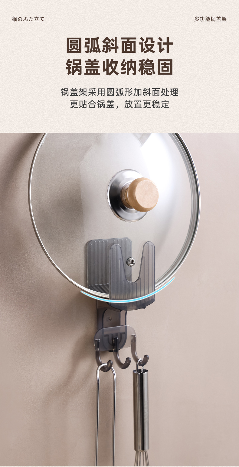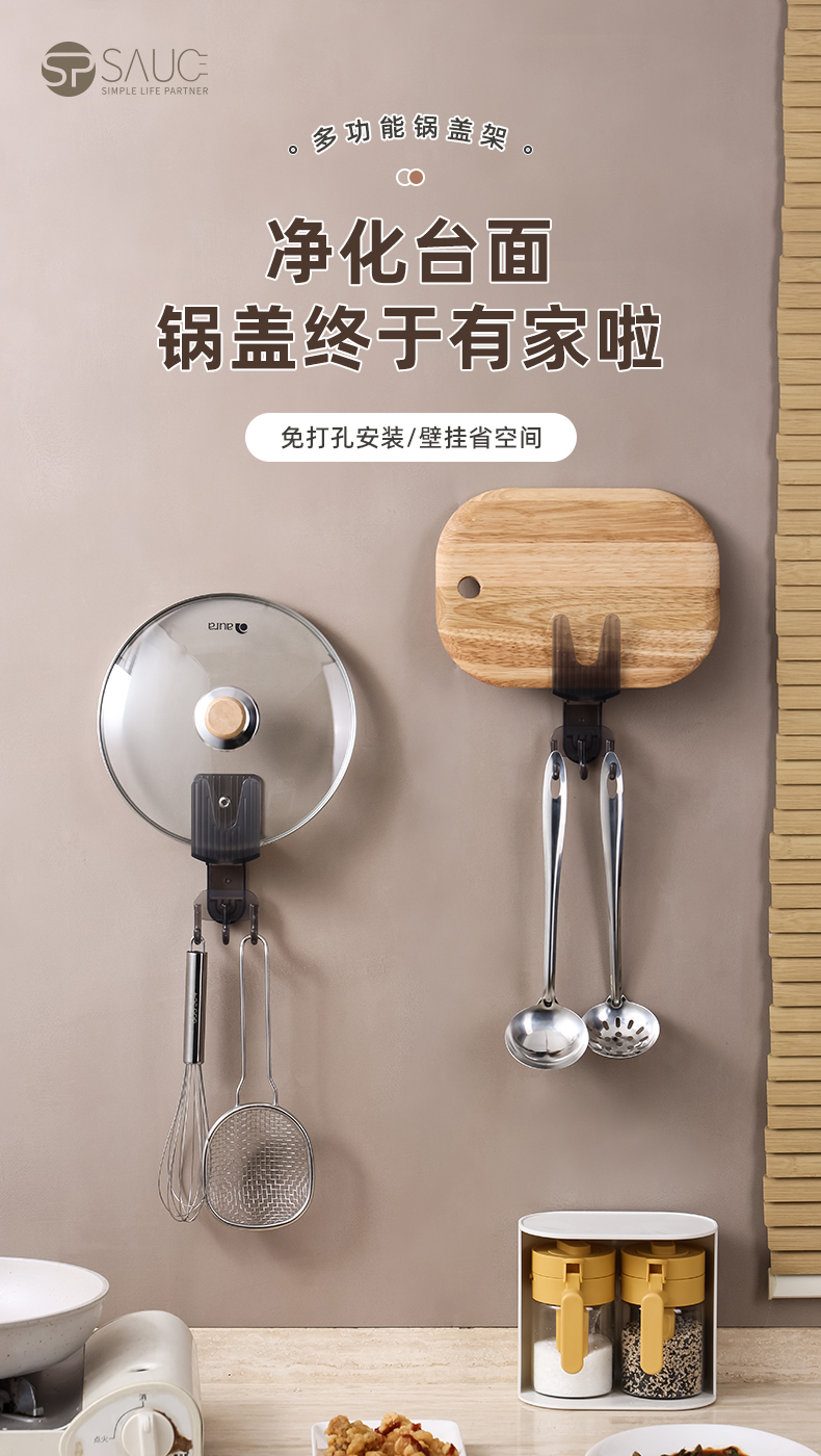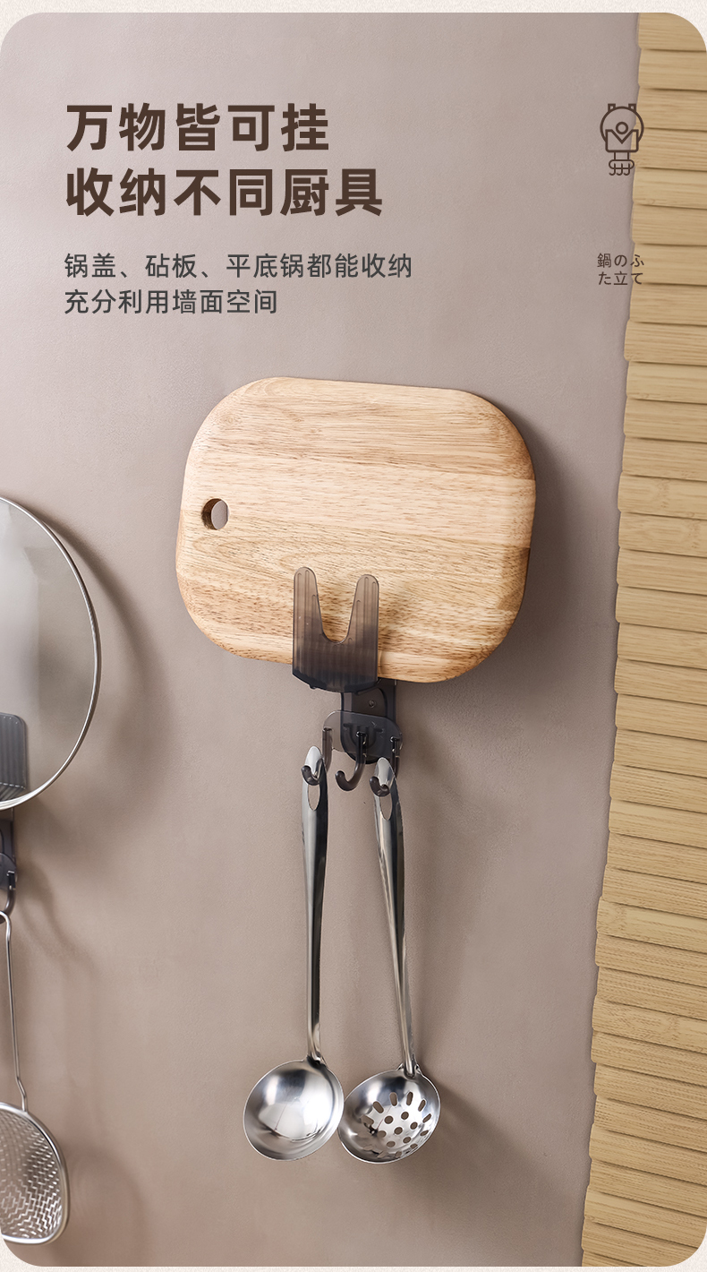 D多功能锅盖架 免打孔锅盖架厨房置物架壁挂式放菜板砧板多功能墙上收纳神器