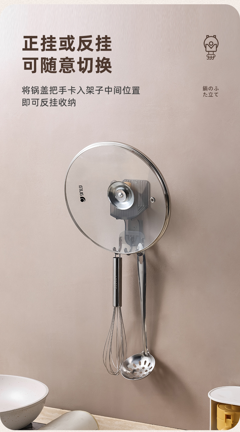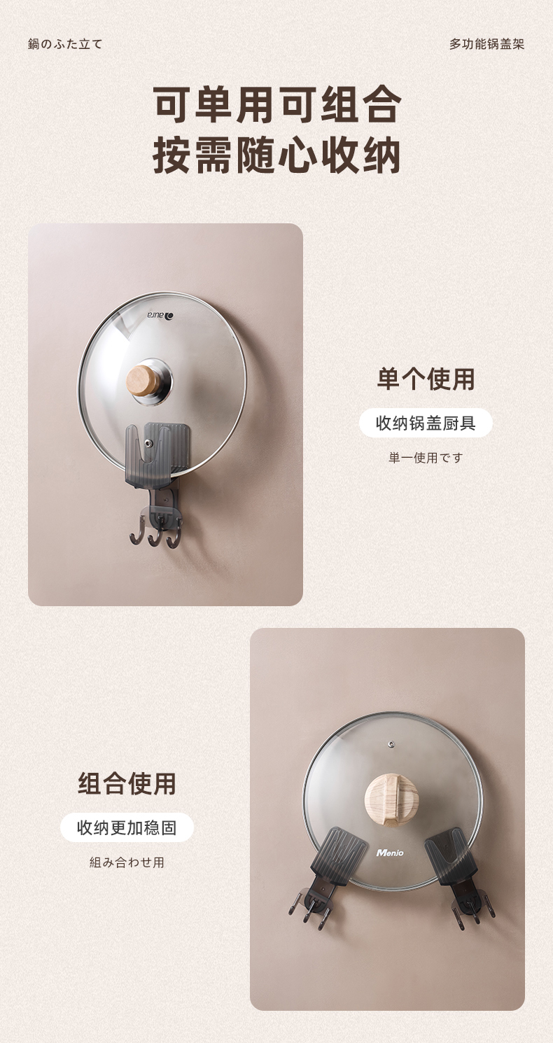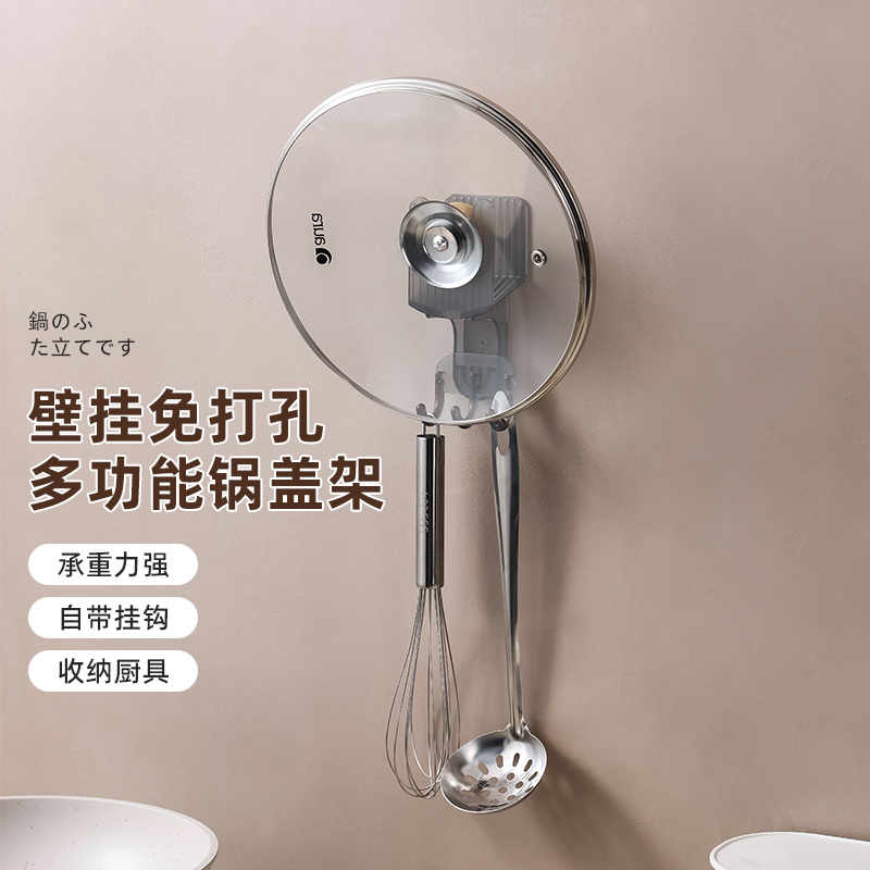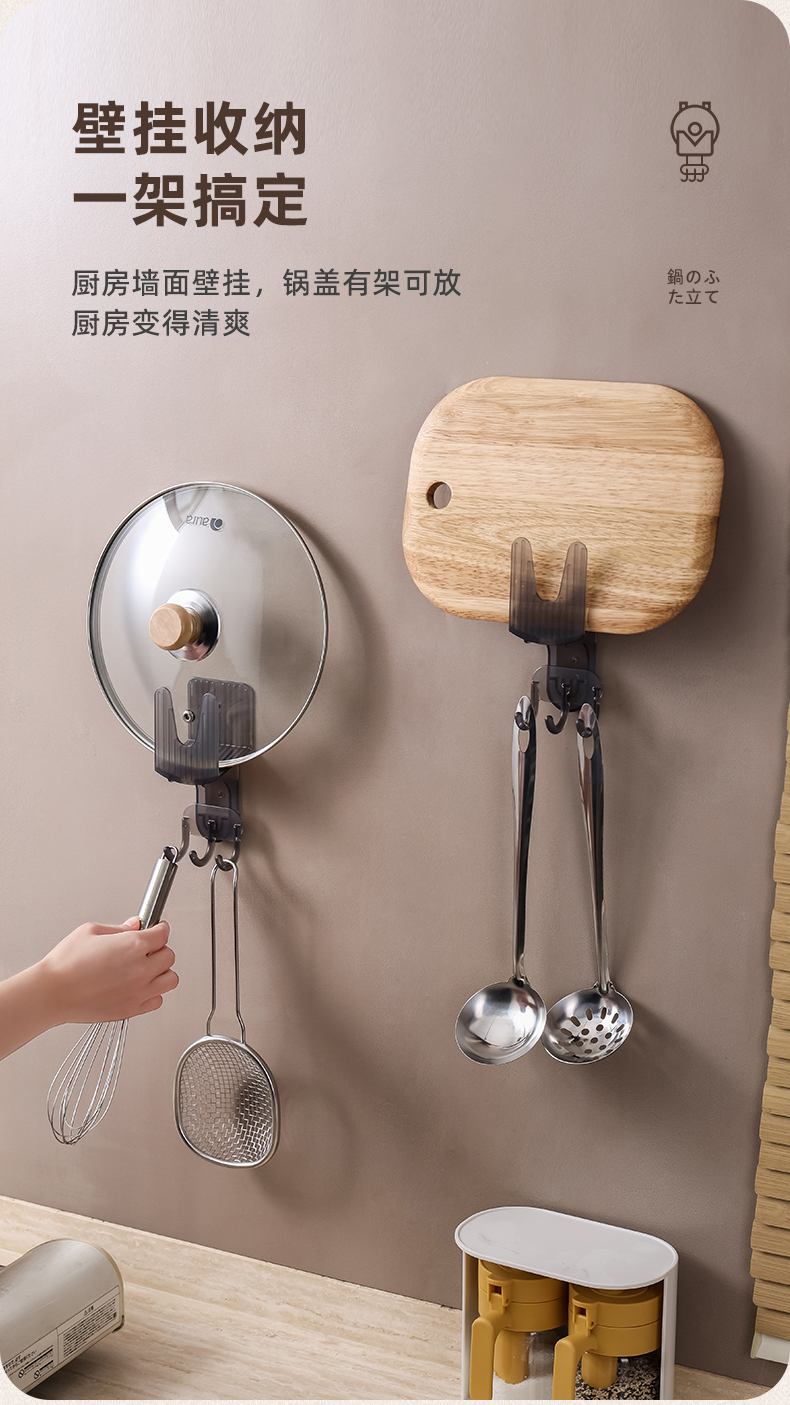 D多功能锅盖架 免打孔锅盖架厨房置物架壁挂式放菜板砧板多功能墙上收纳神器