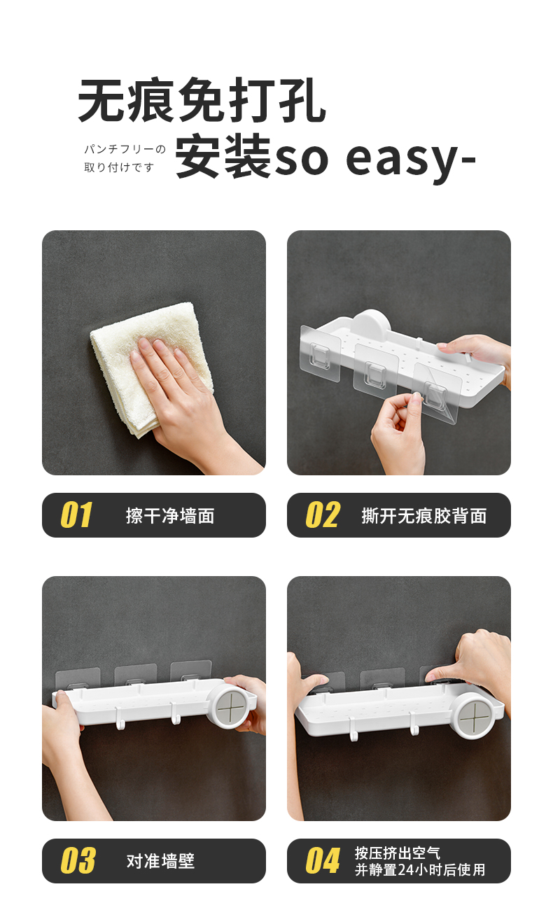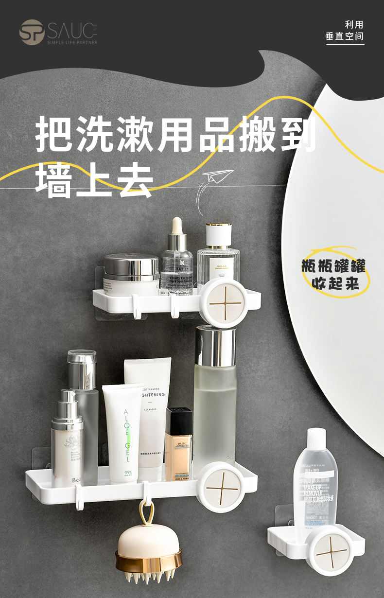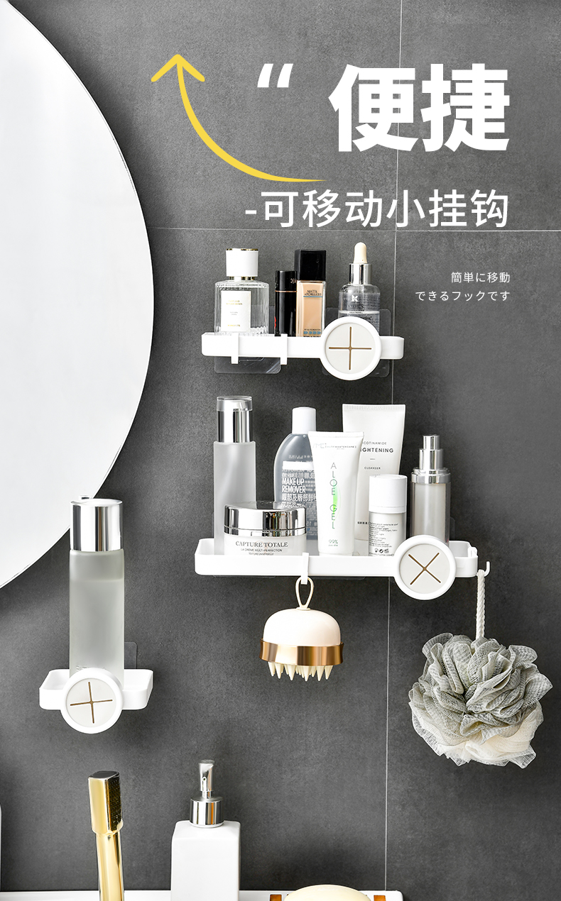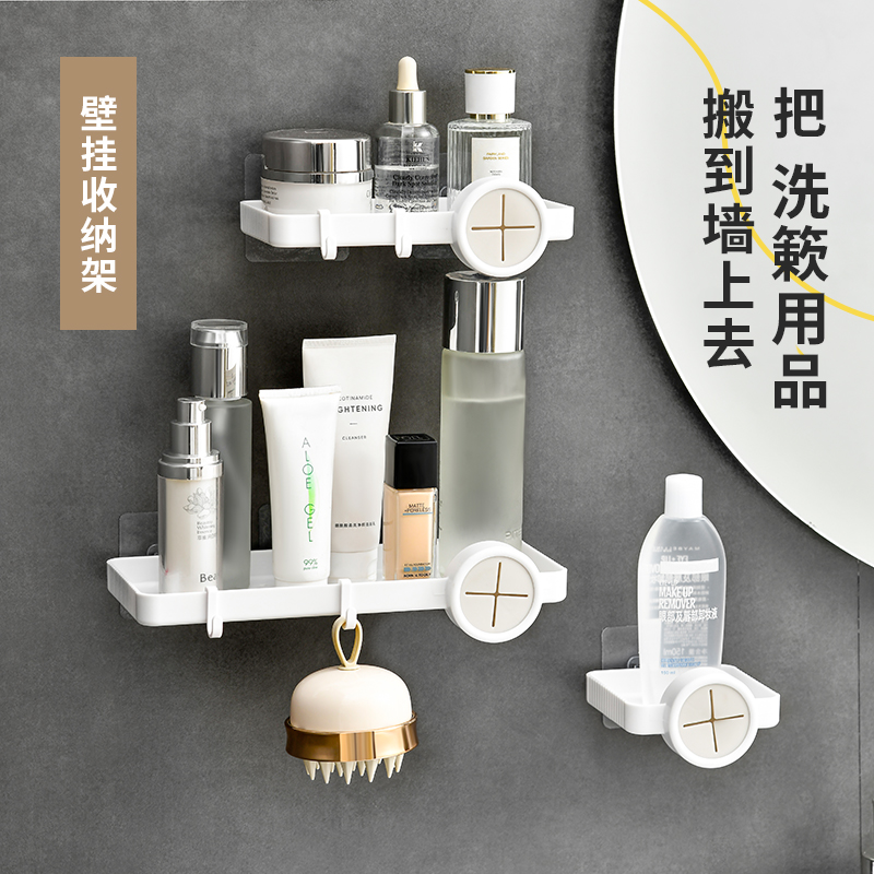 多功能壁挂收纳架(大号) 浴室置物架带毛巾塞免打孔壁挂式洗手液挂壁器沥水卫生间牙杯收纳
