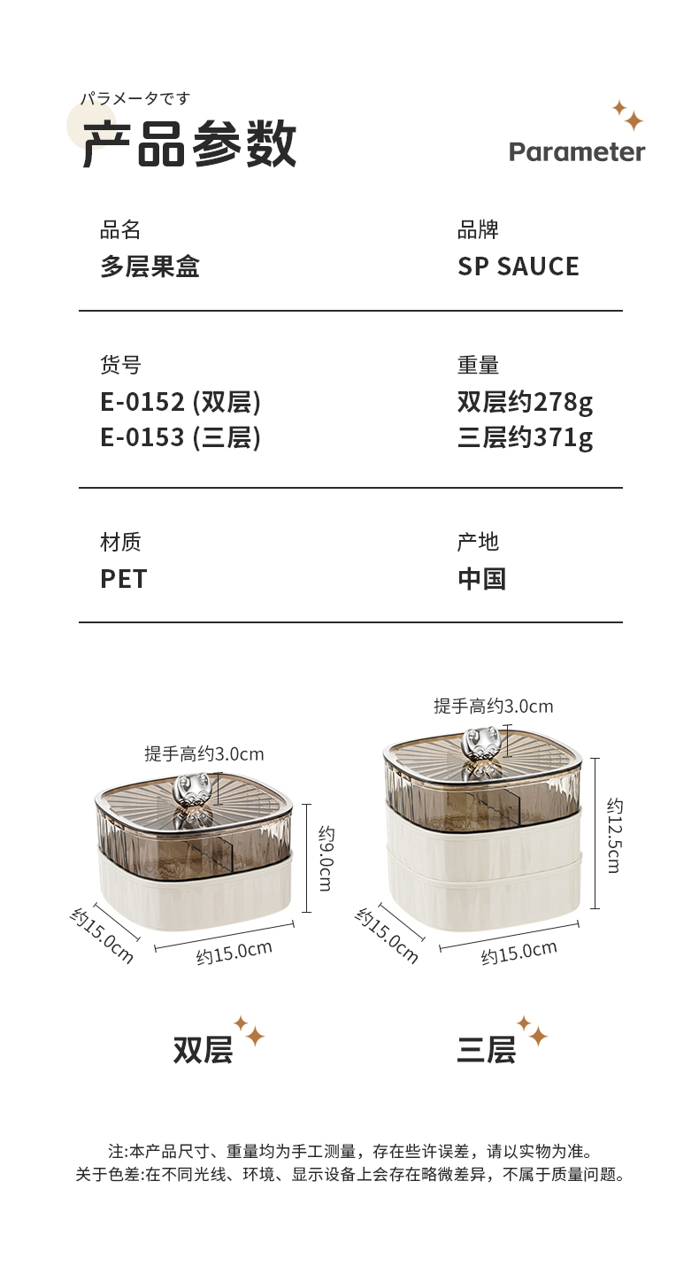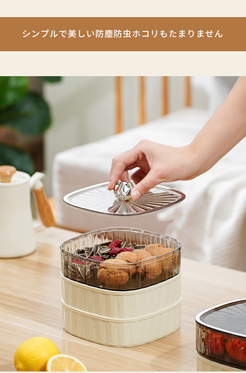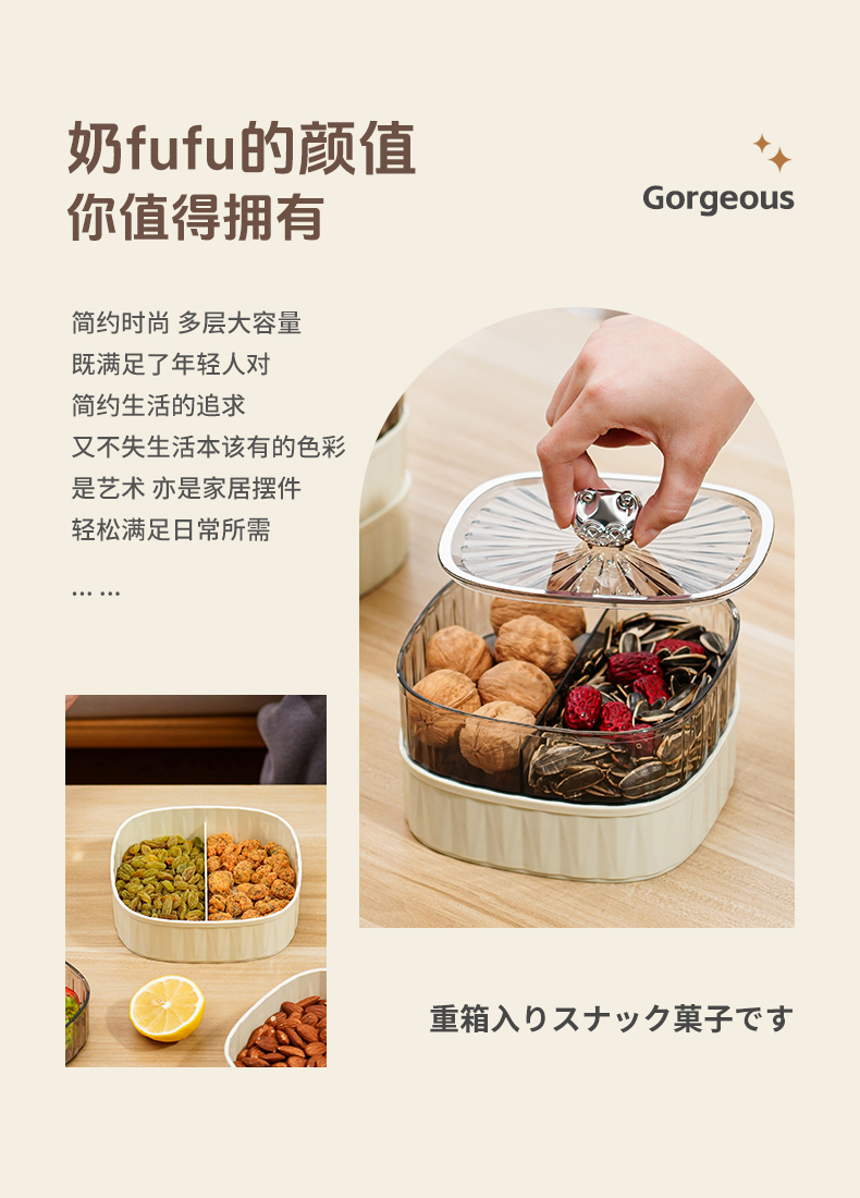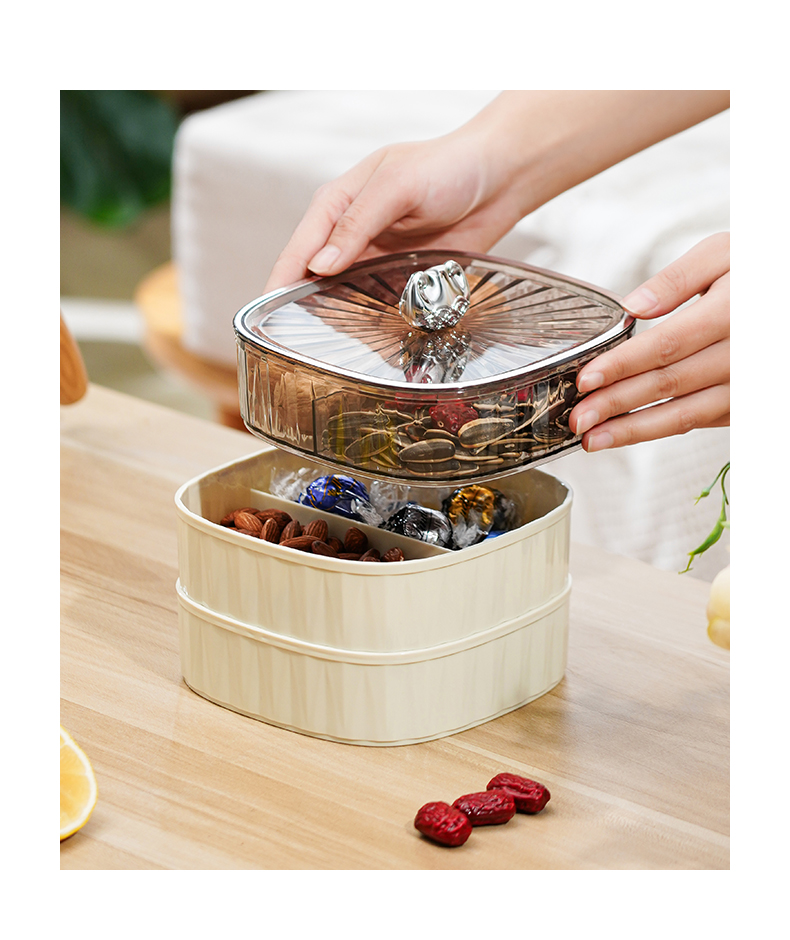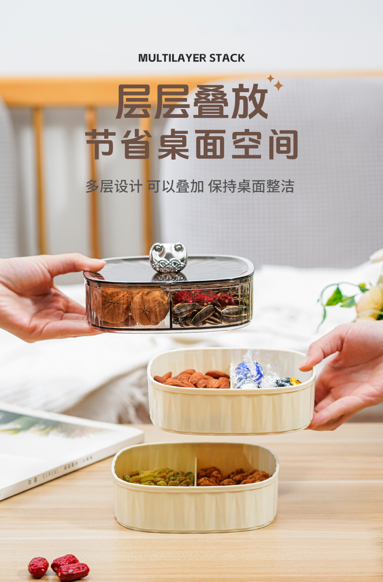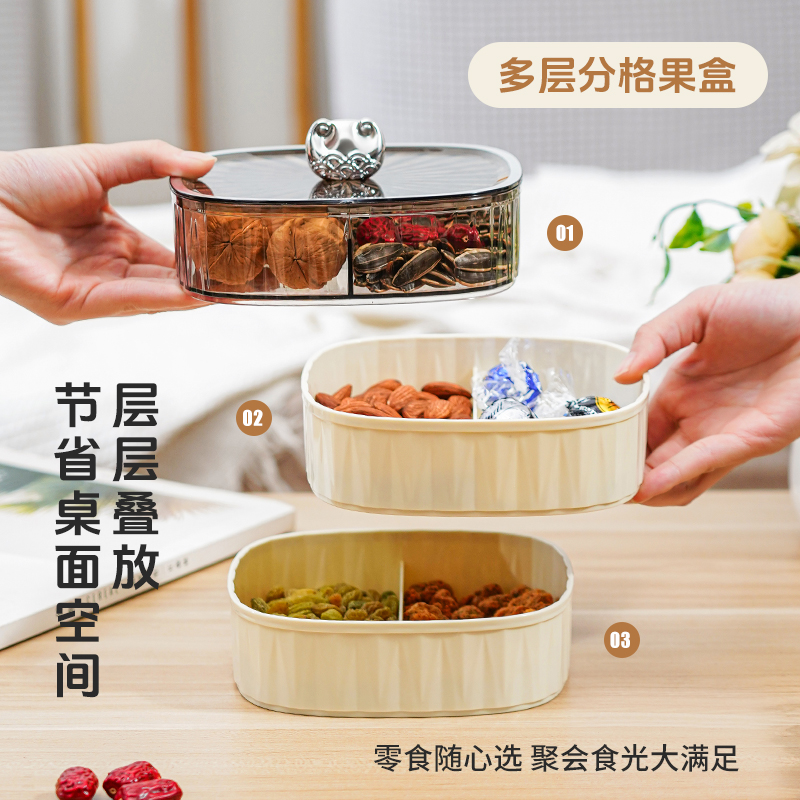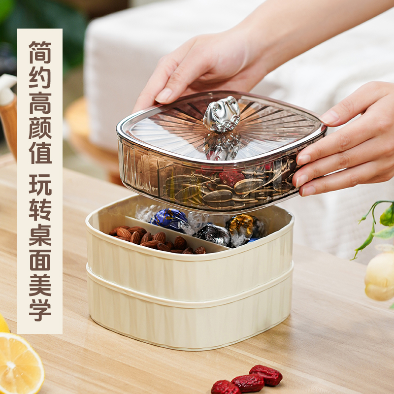可叠加果盒(双层) 干果盘客厅家用茶几轻奢高档糖果点心多层带盖新款零食摆放盘