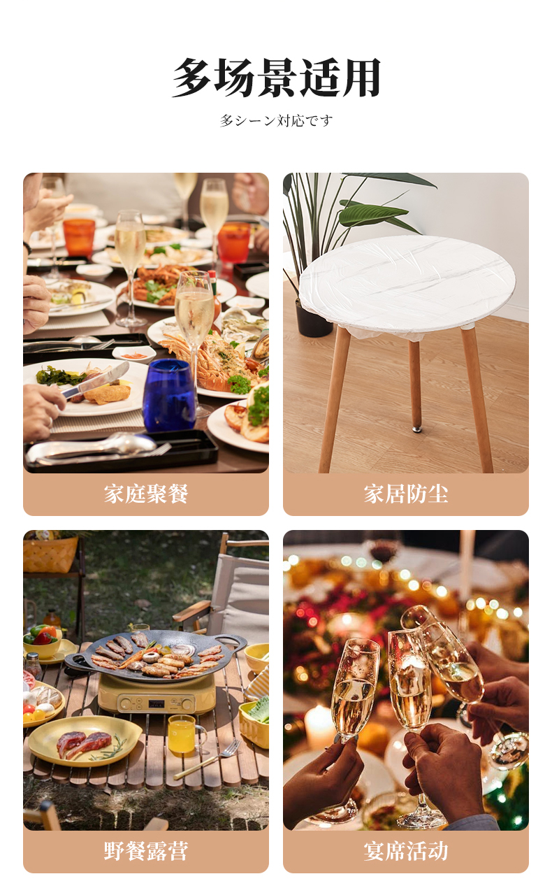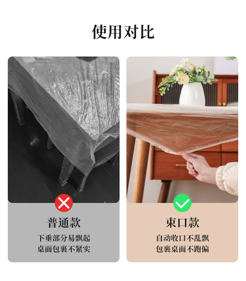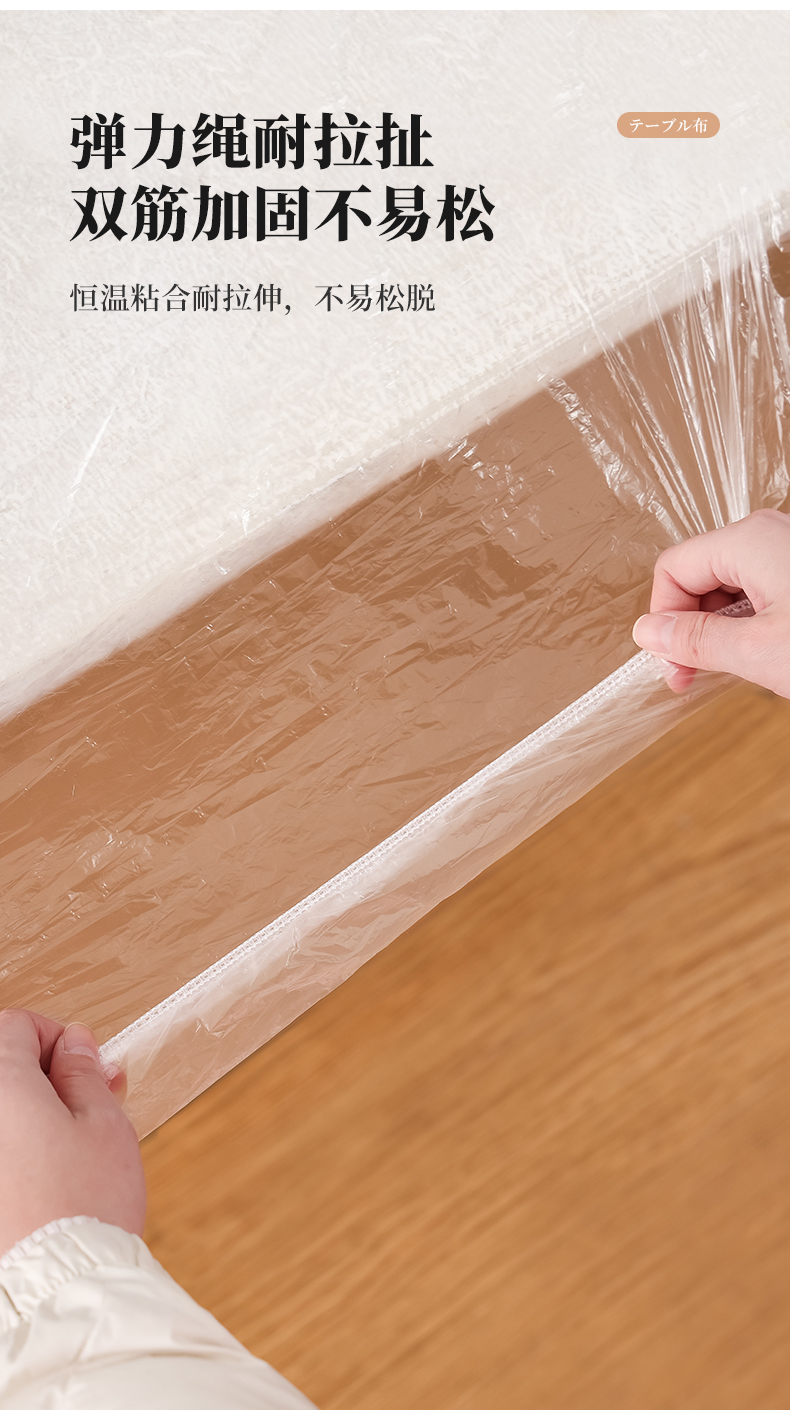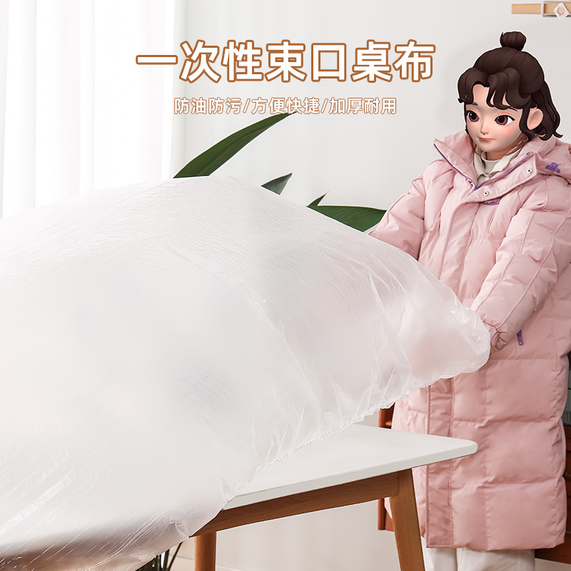 一次性束口桌布120*160cm(10只装) 一次性束口桌布带松紧防水防油免洗加厚食品级聚餐酒席塑料膜桌布