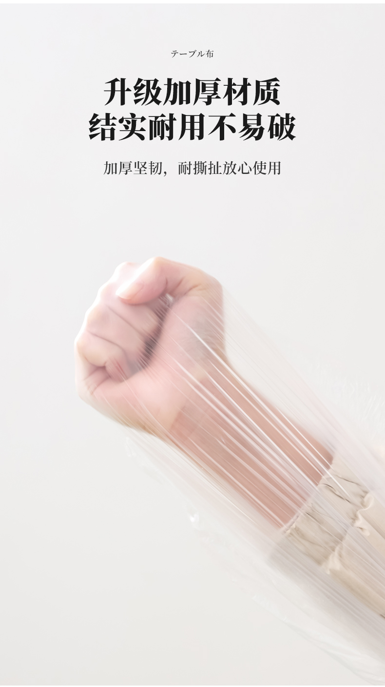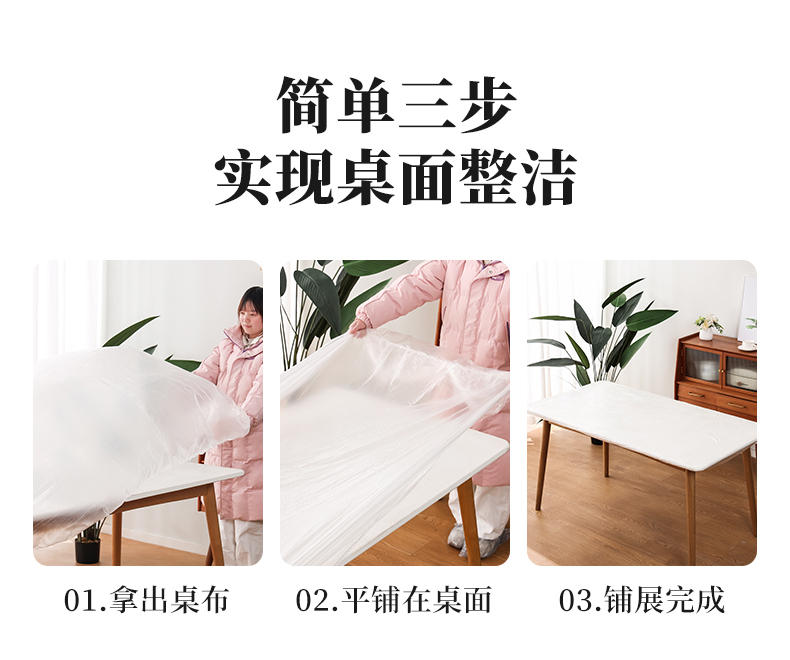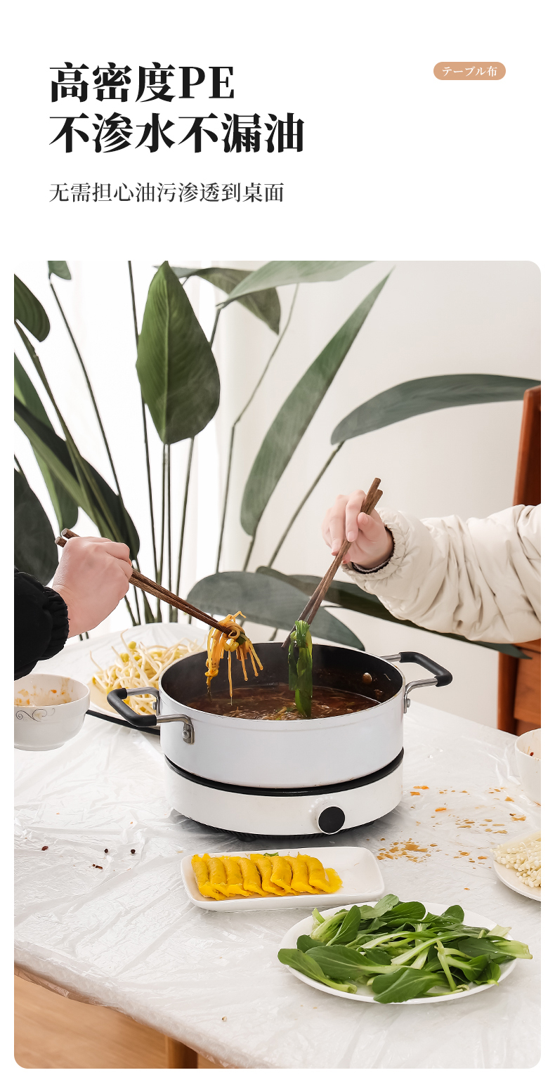 一次性束口桌布120*160cm(10只装) 一次性束口桌布带松紧防水防油免洗加厚食品级聚餐酒席塑料膜桌布