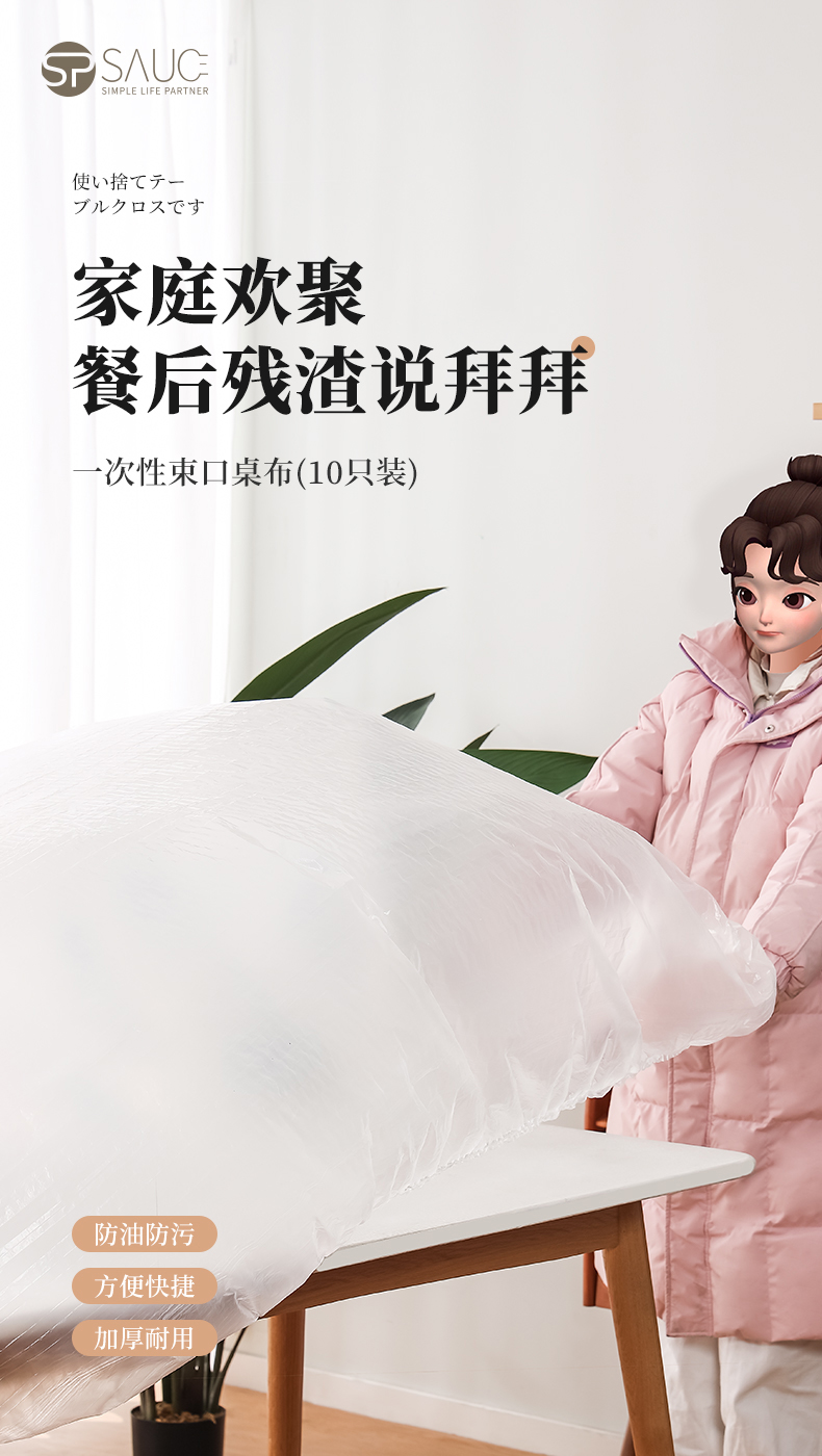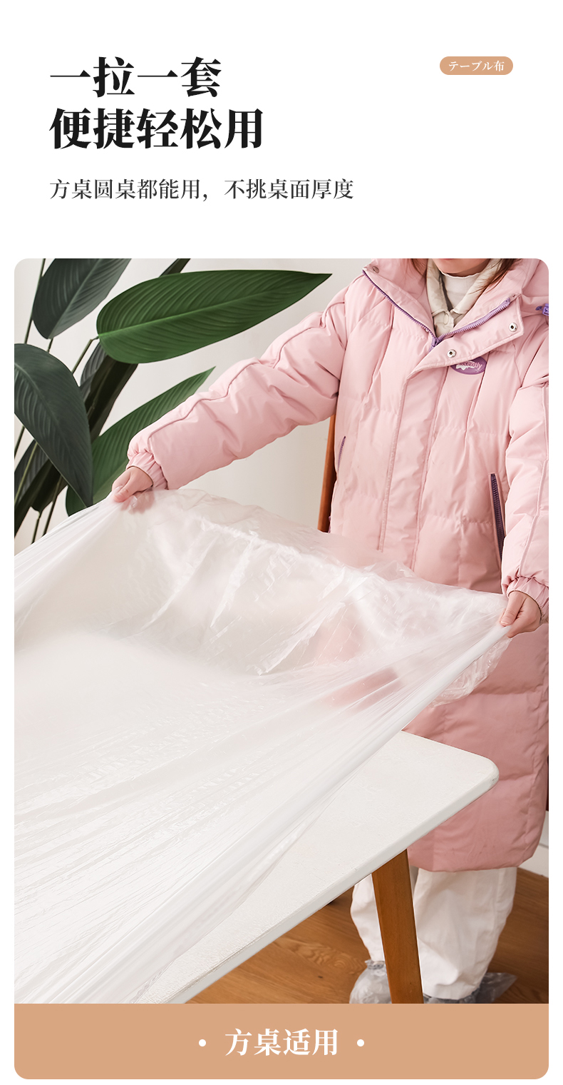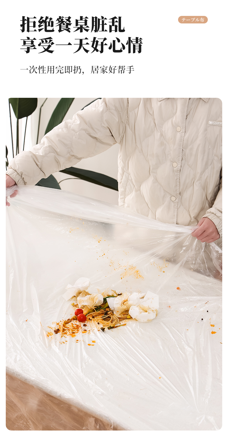 一次性束口桌布180*250cm(10只装) 一次性束口桌布带松紧防水防油免洗加厚食品级聚餐酒席塑料膜桌布