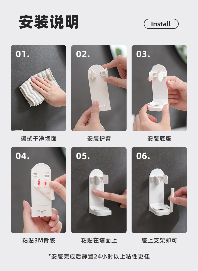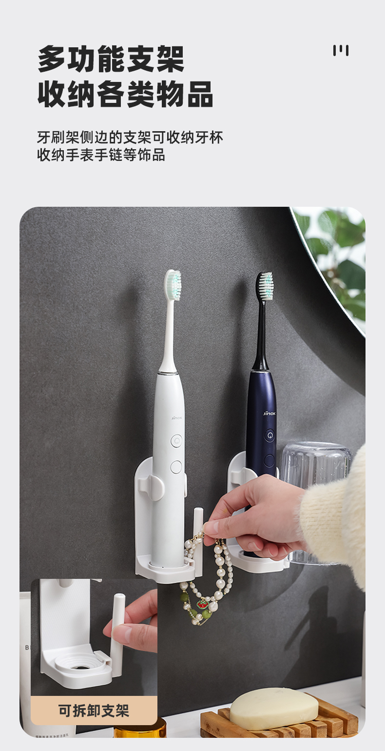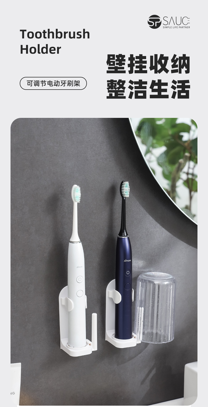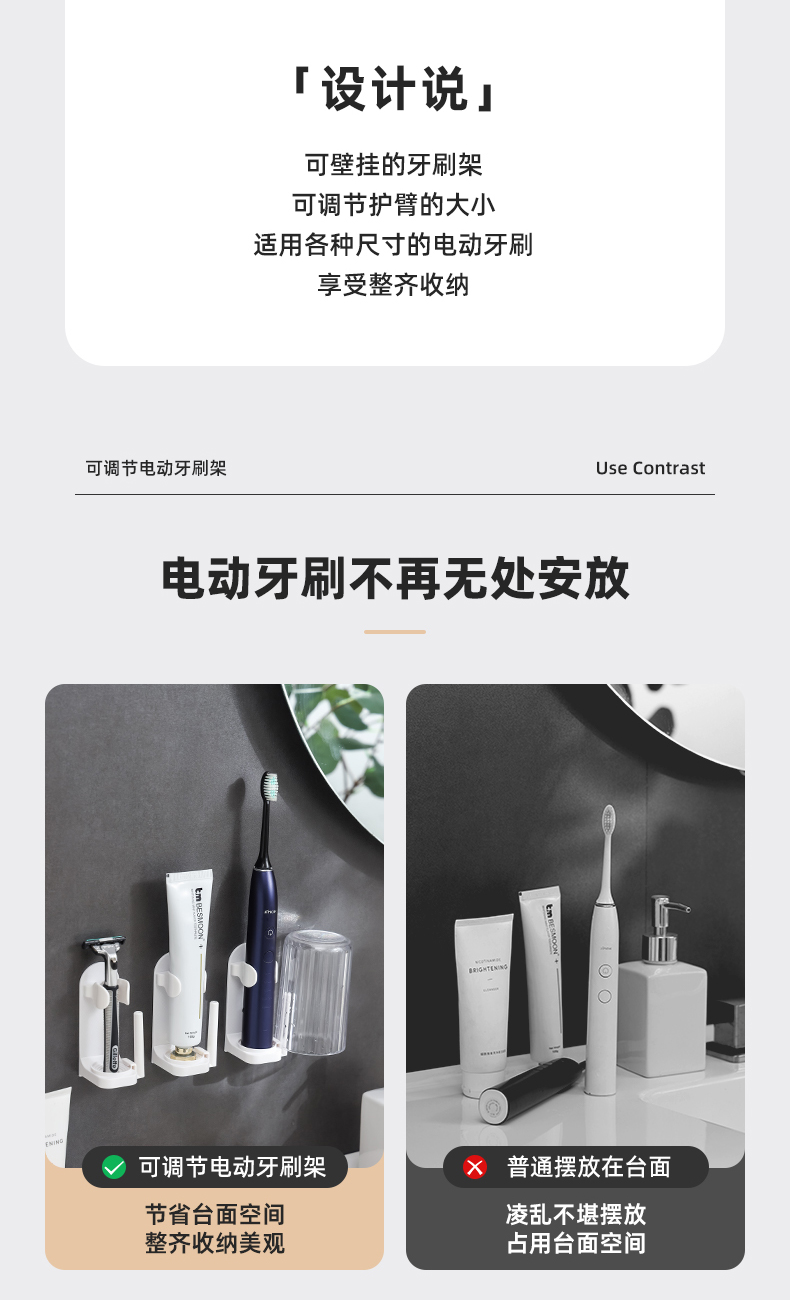 可调节电动牙刷架 电动牙刷架免打孔壁挂式牙刷挂架卫生间牙刷收纳底座牙具置物架