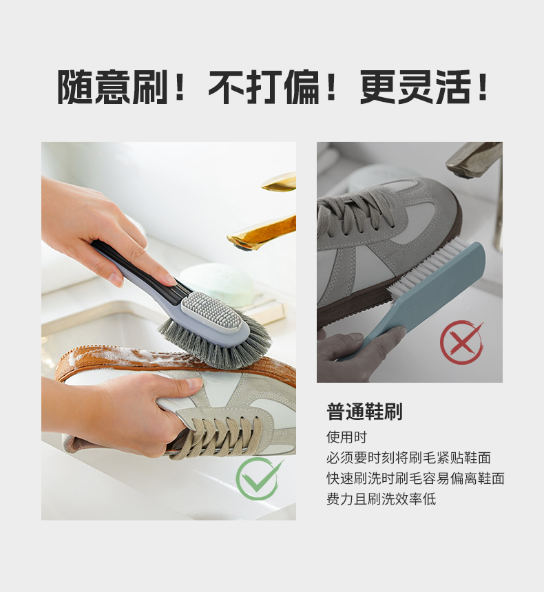 弧面鞋刷 鞋刷软毛不伤鞋家用洗衣刷多功能刷鞋子专用神器洗鞋刷长柄鞋刷子